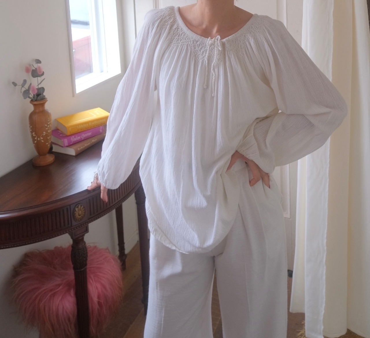 ナチュラルで大人な雰囲気のindia cottonのブラウス。