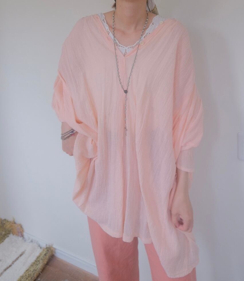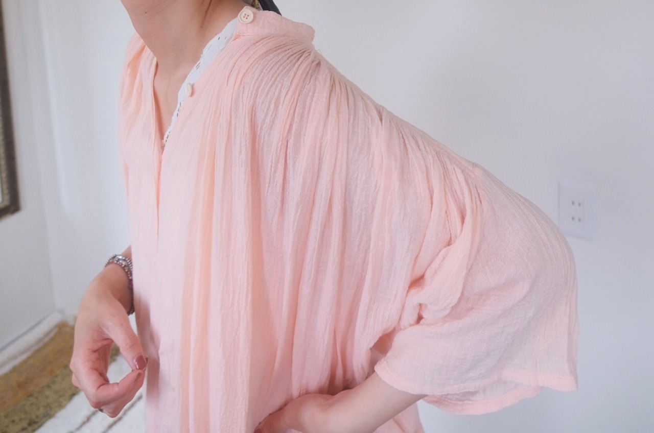 ギャザーがたっぷりと入ったサーモンピンクのvintage blouse。