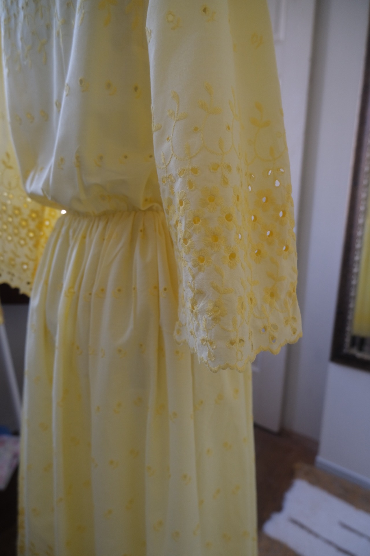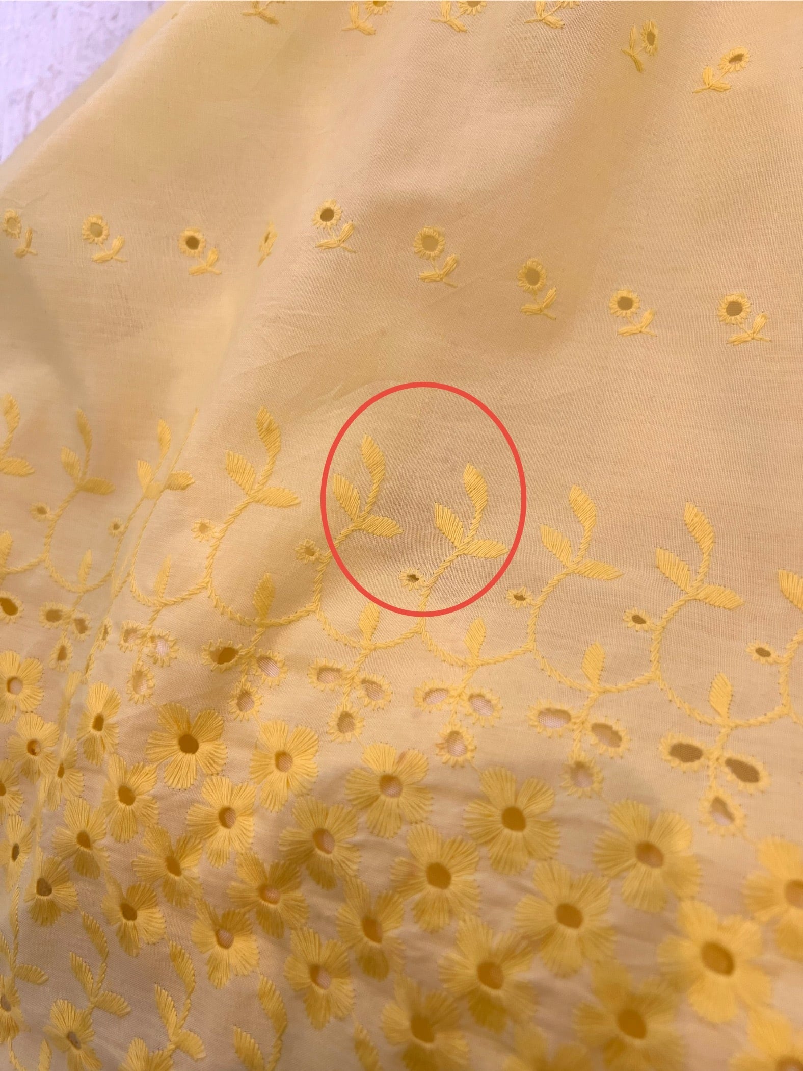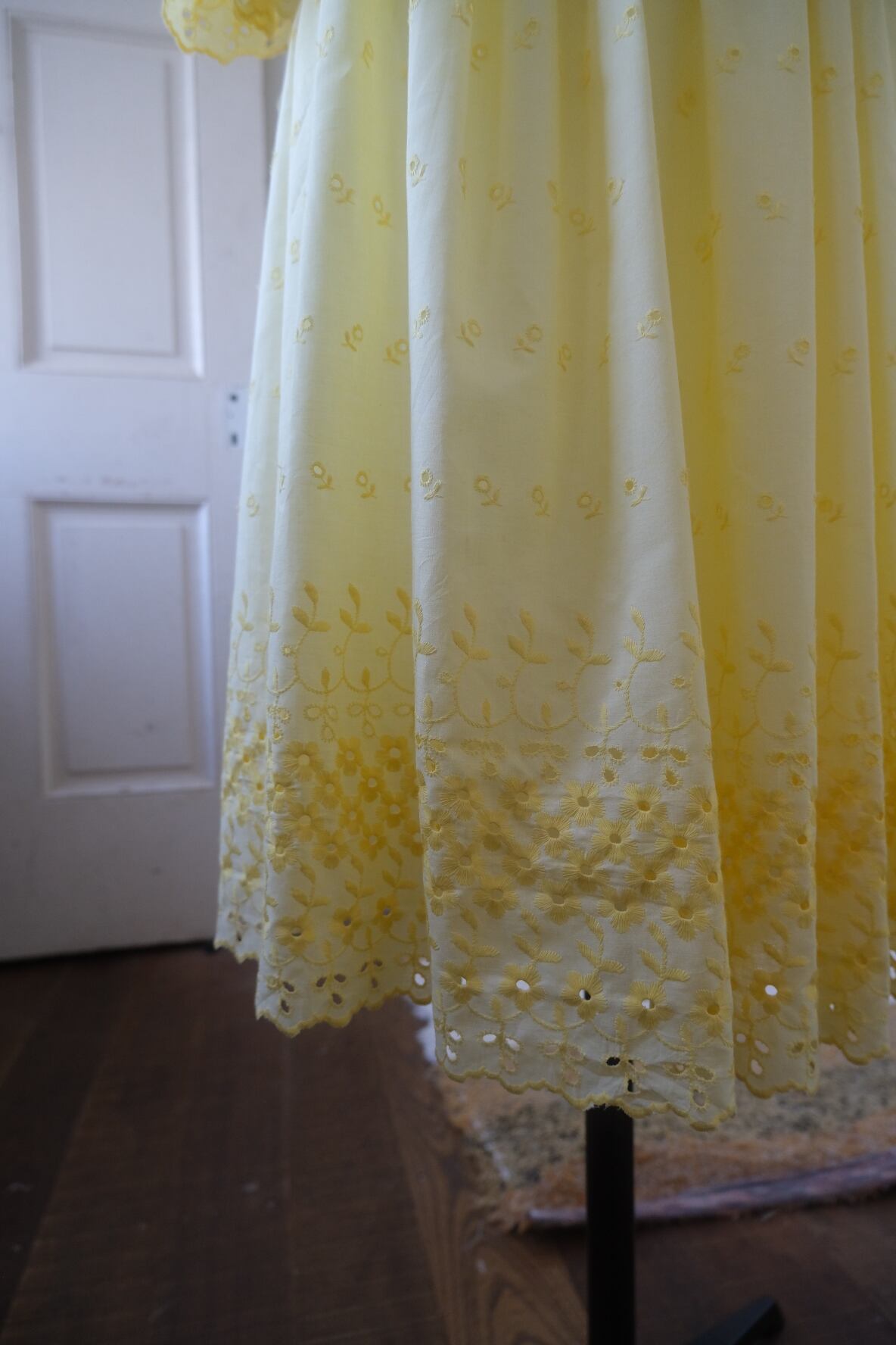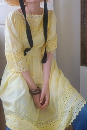 カットワークのレースや花刺繍がふんだんに施されておりおそらく70〜80'sのvintageらしい一枚。