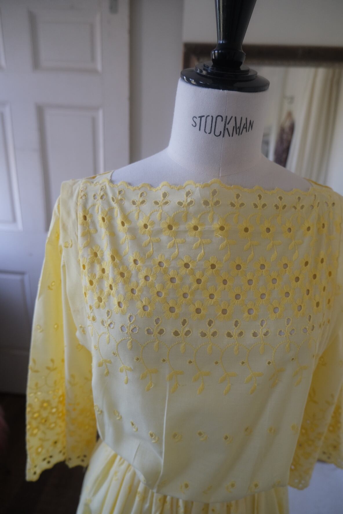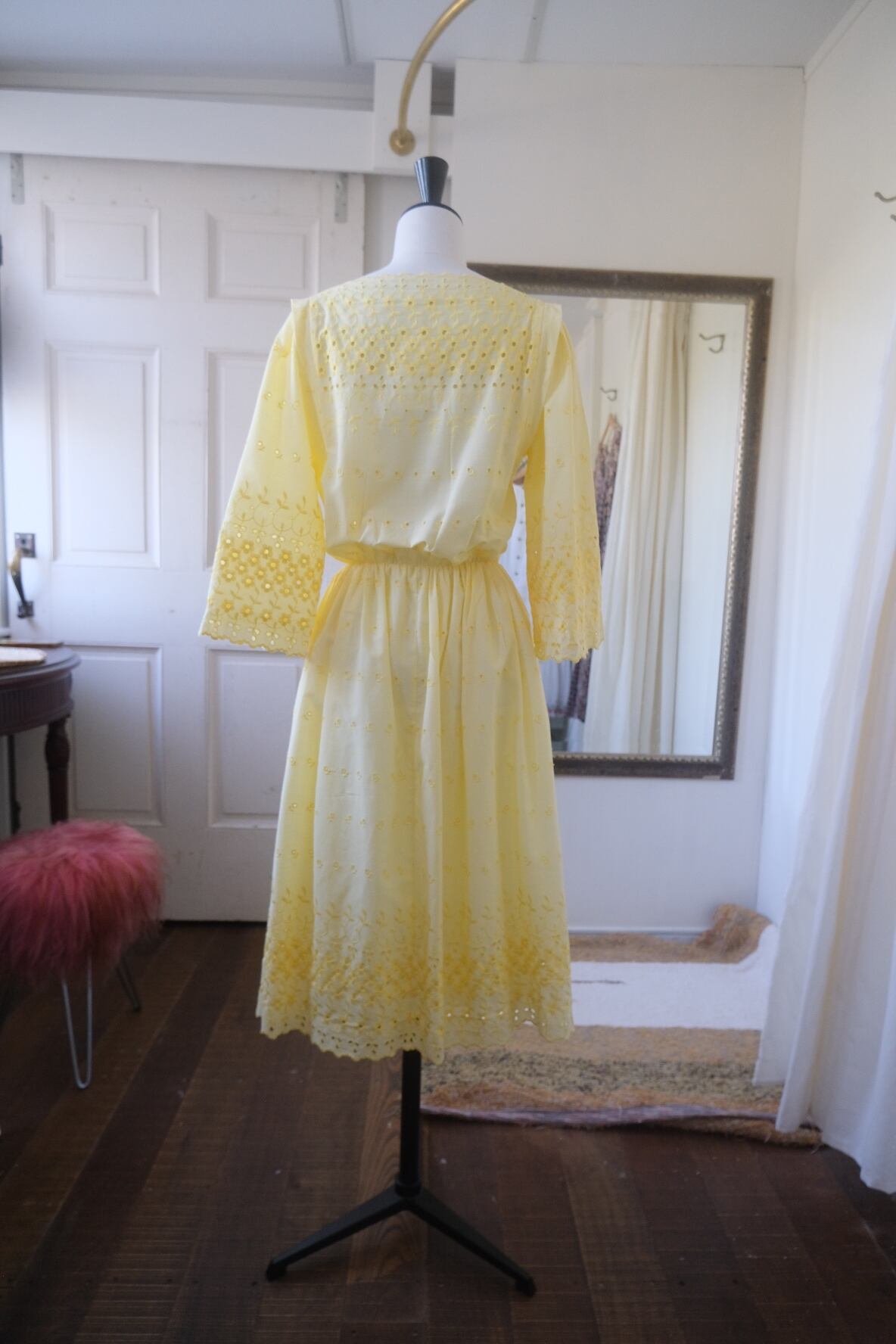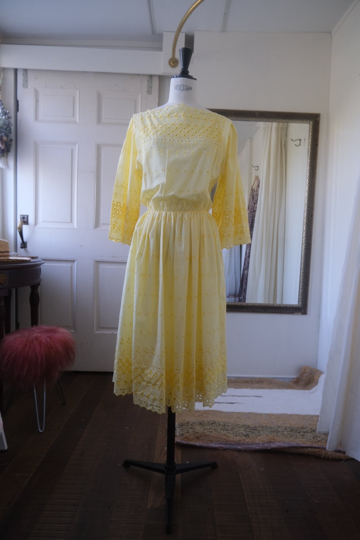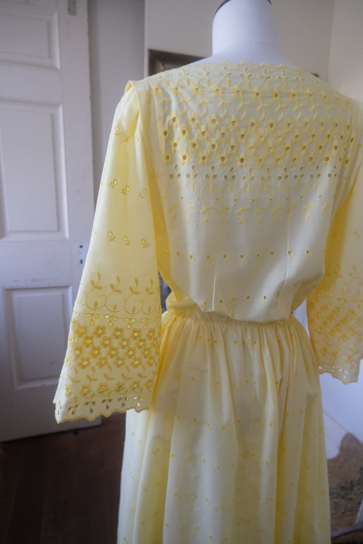 カットワークのレースや花刺繍がふんだんに施されておりおそらく70〜80'sのvintageらしい一枚。