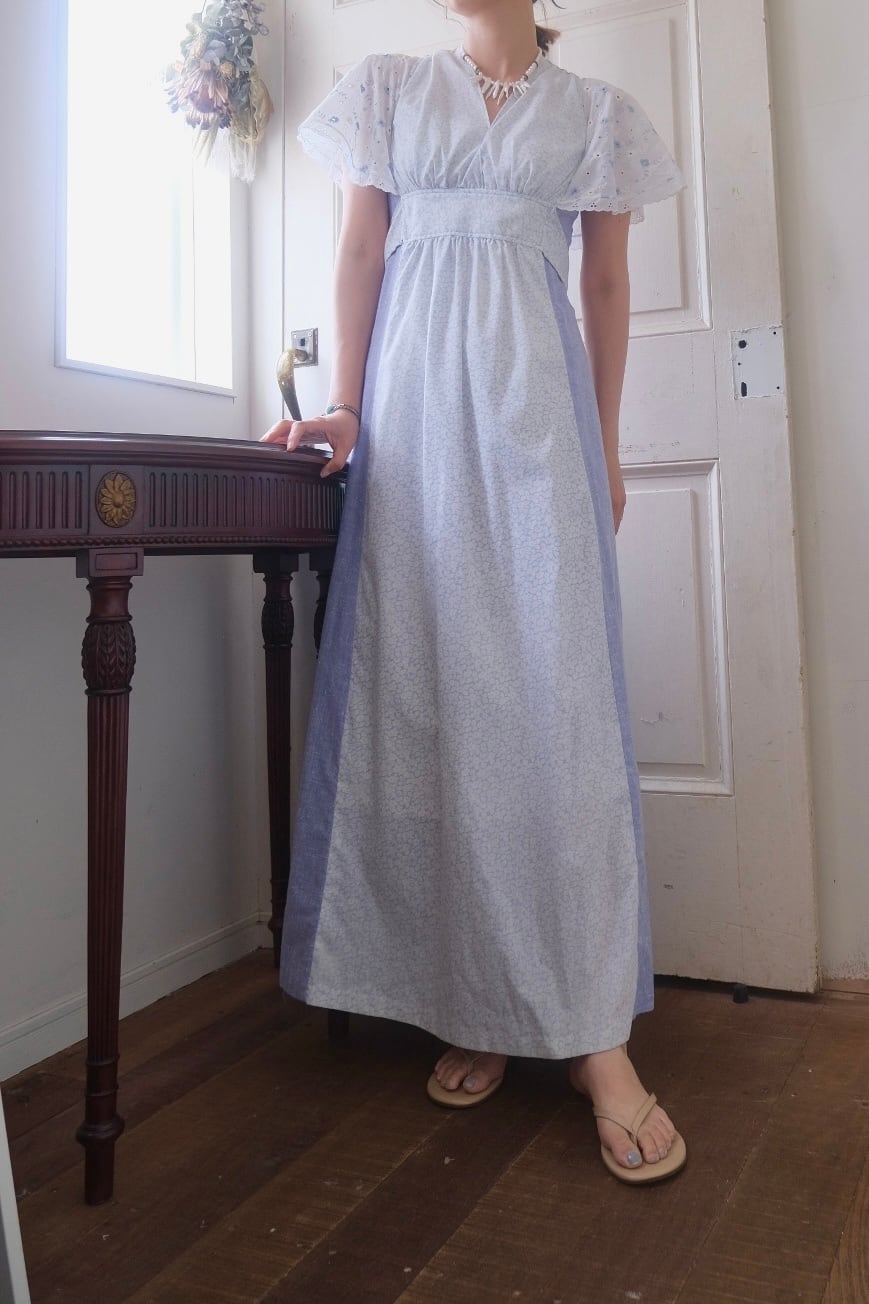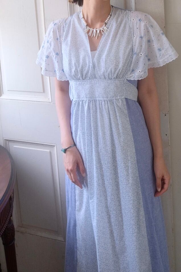 カットワークレースと刺繍のお袖が本当に素敵な70sのマキシドレス♡