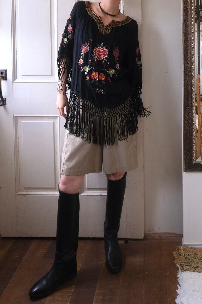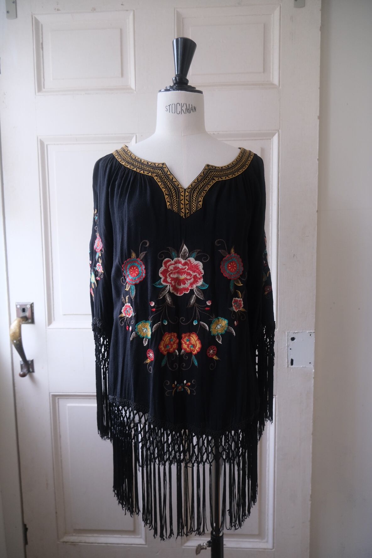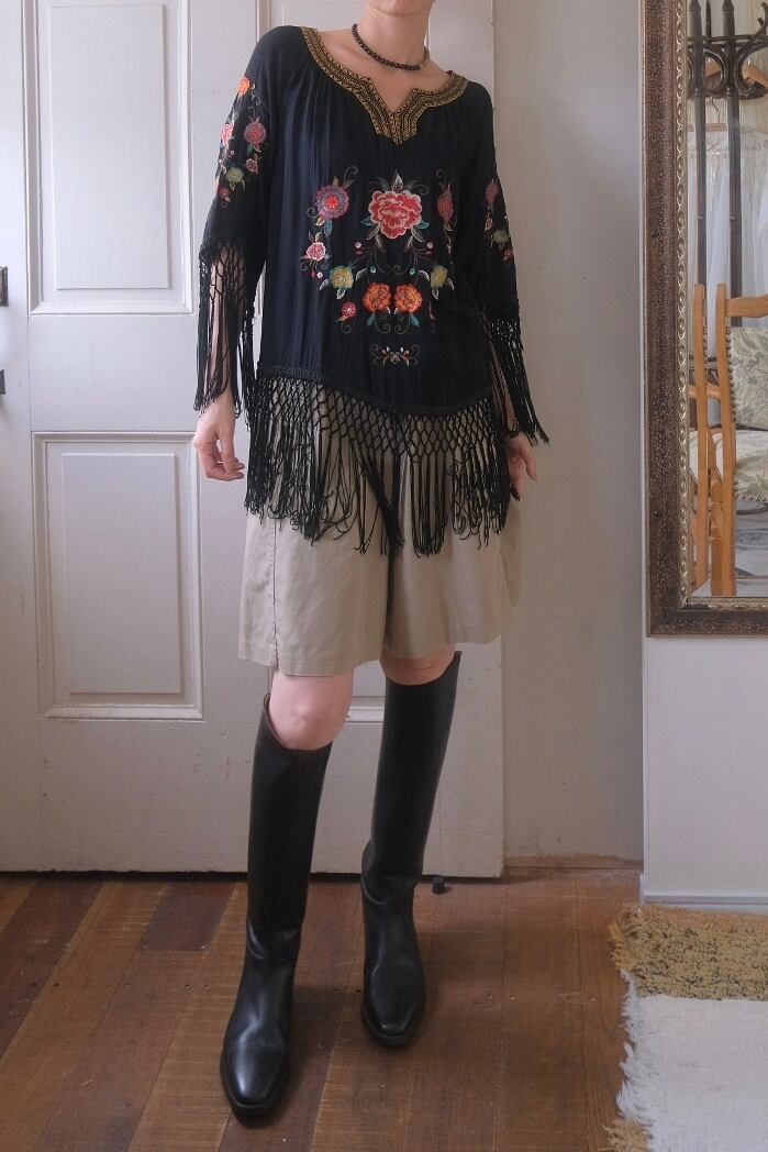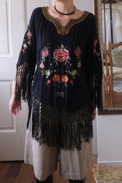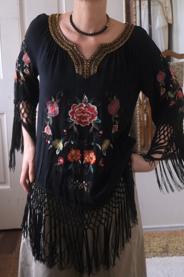 美しい花刺繍にフリンジがたっぷりなブラウス。