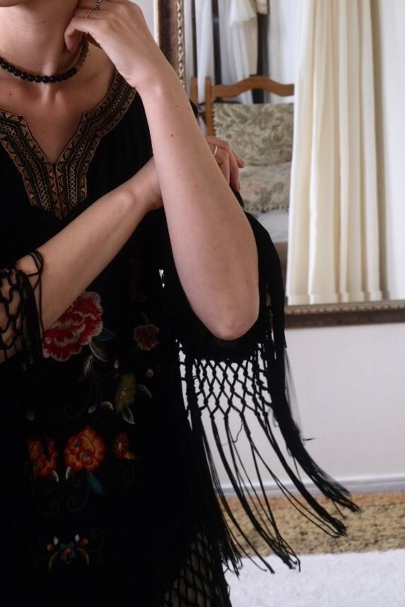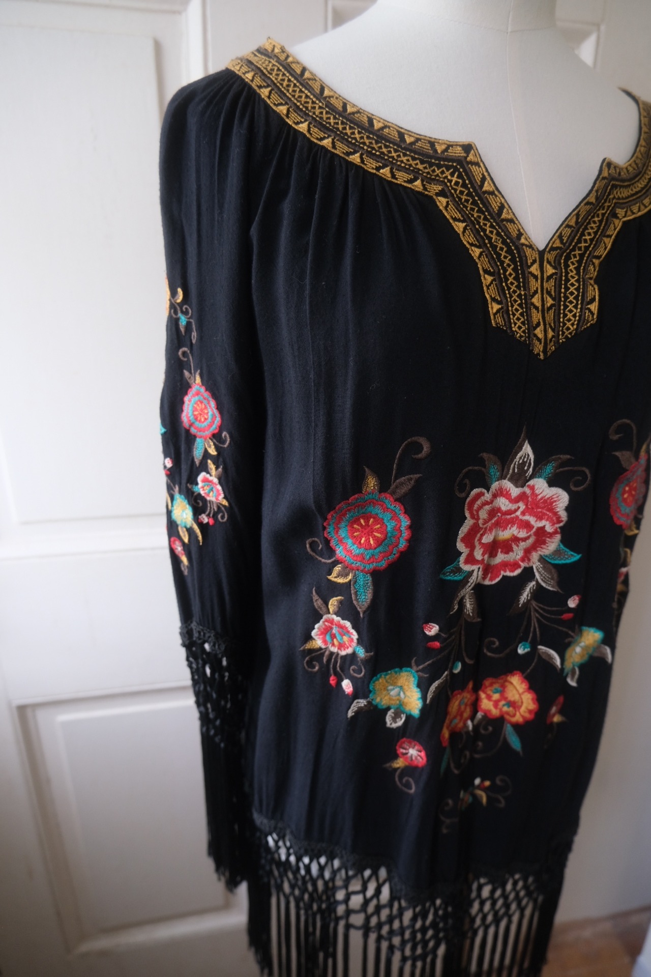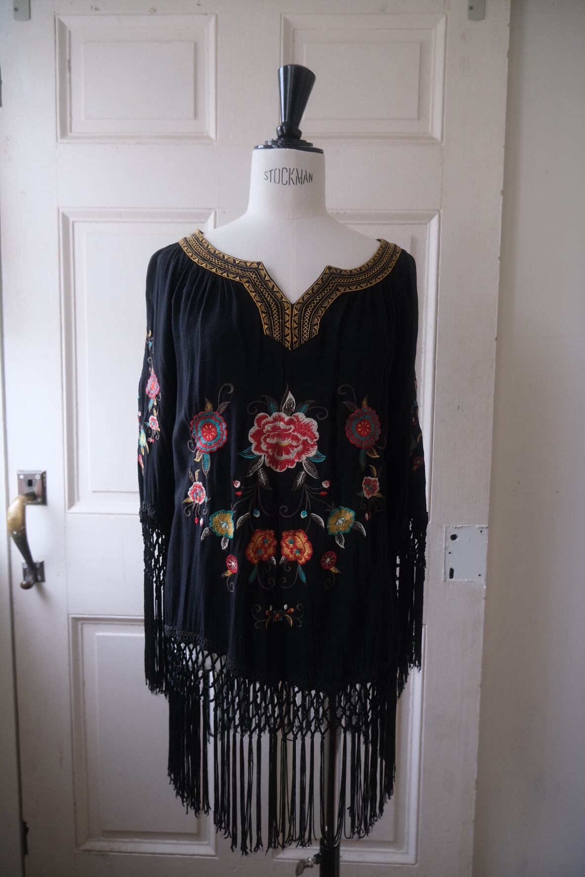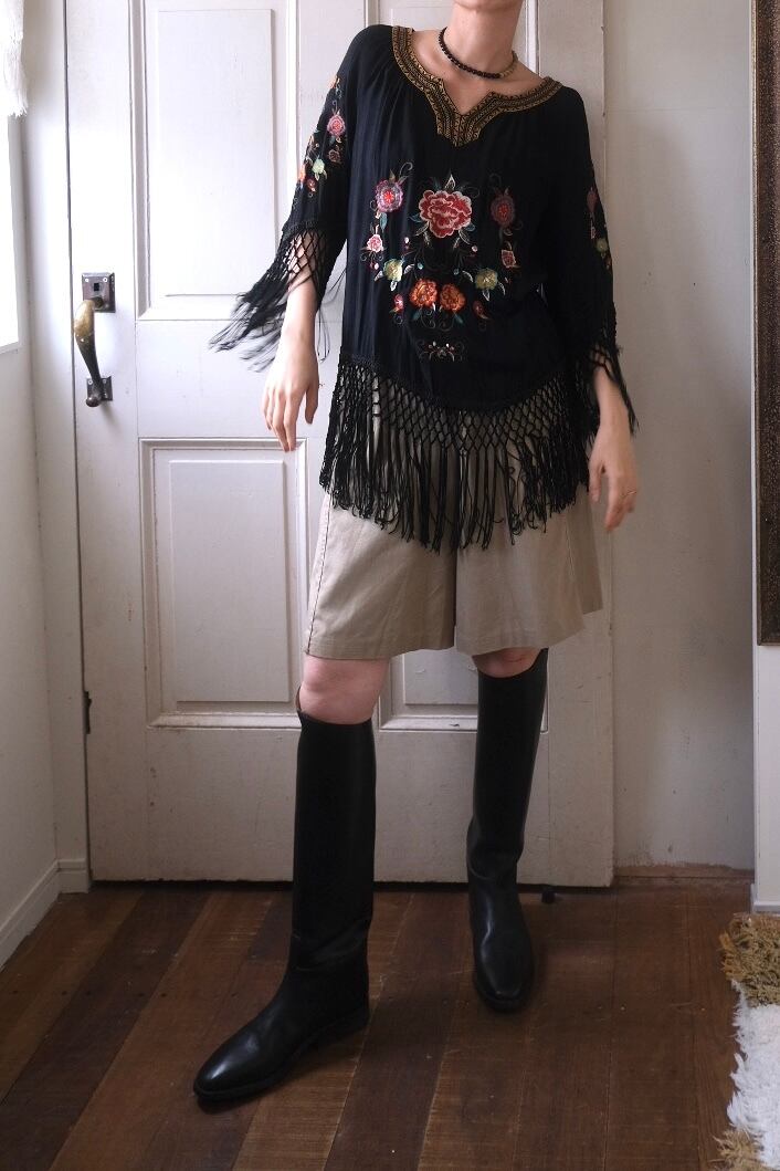 美しい花刺繍にフリンジがたっぷりなブラウス。