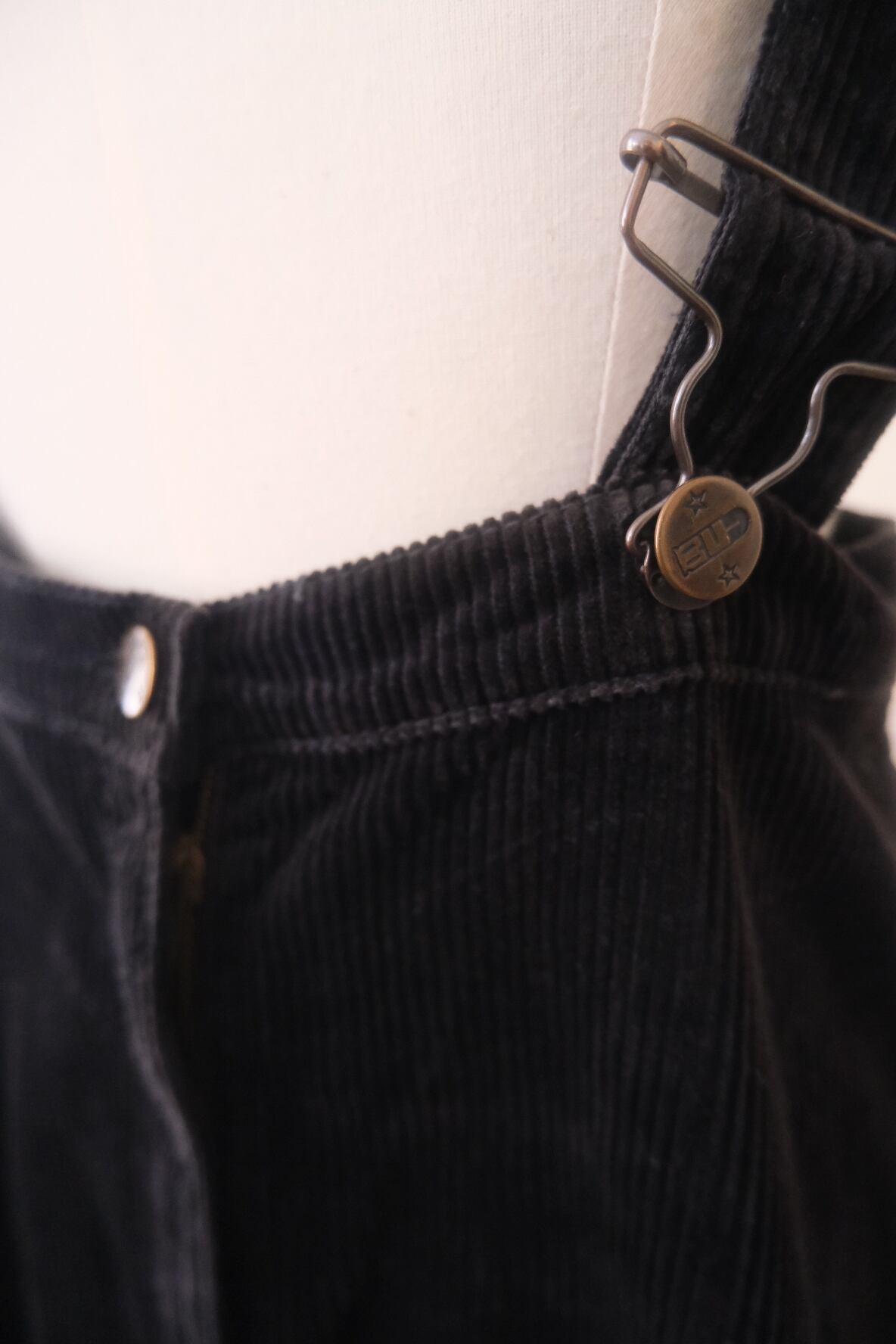 どこか懐かしさもある様なコーデュロイのサスペンダースカート。