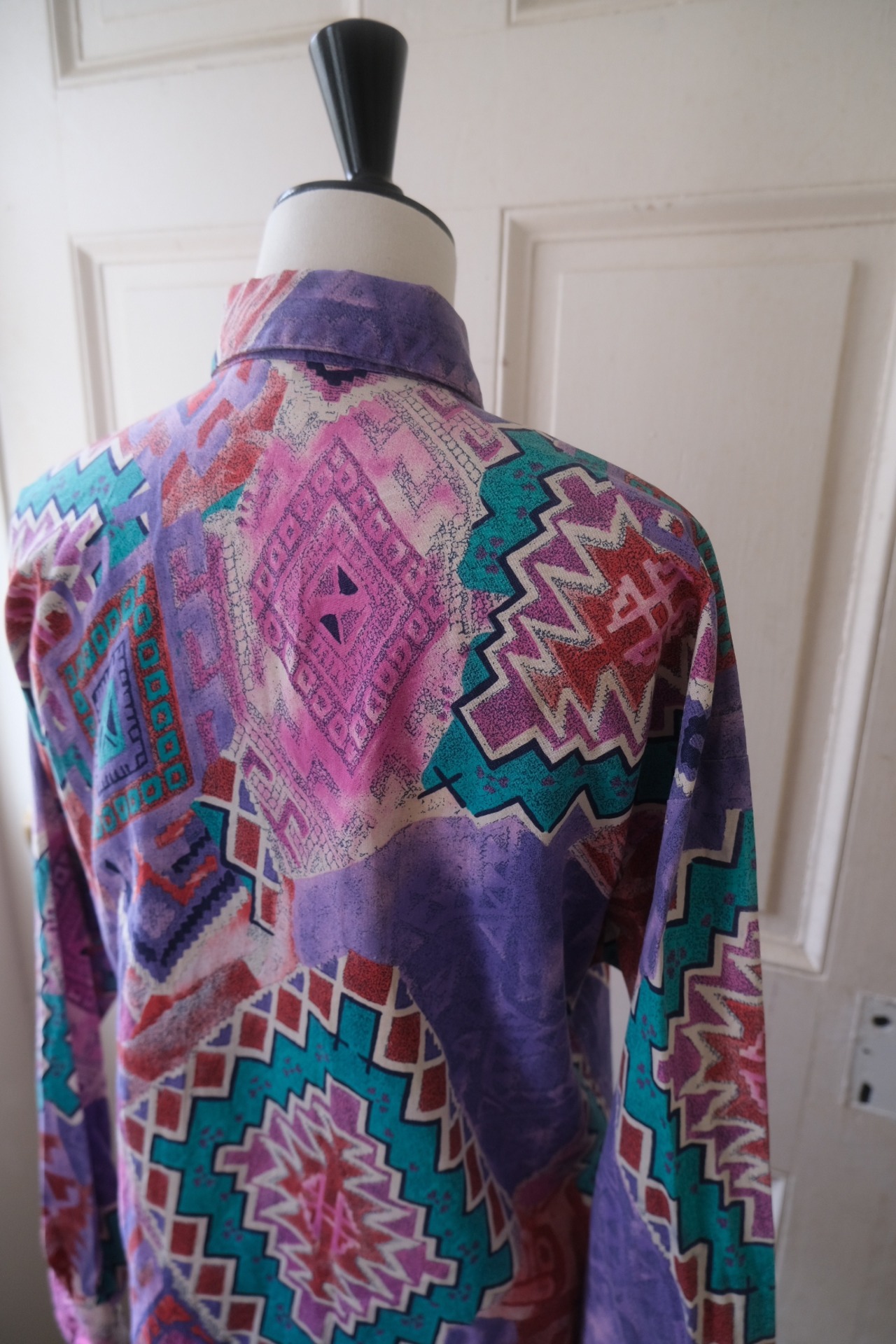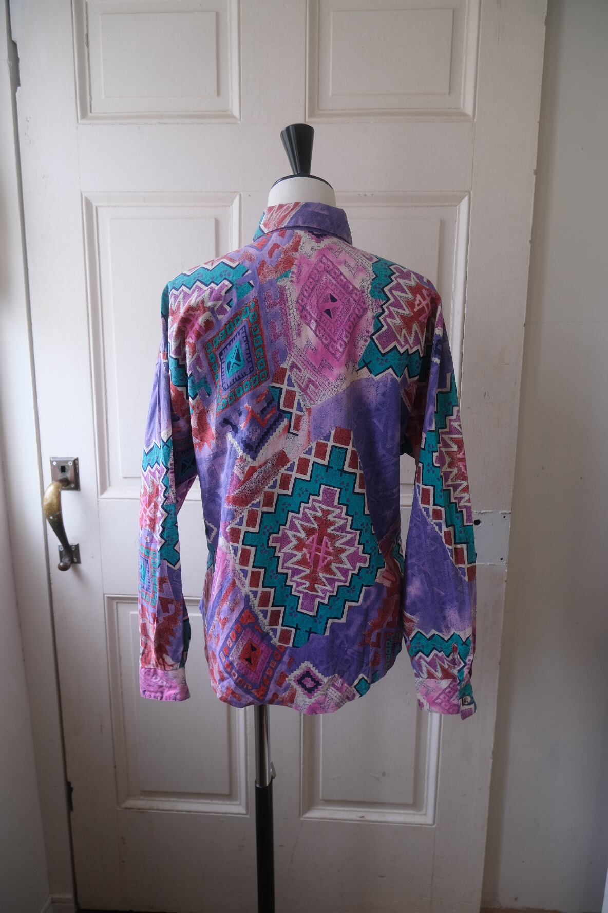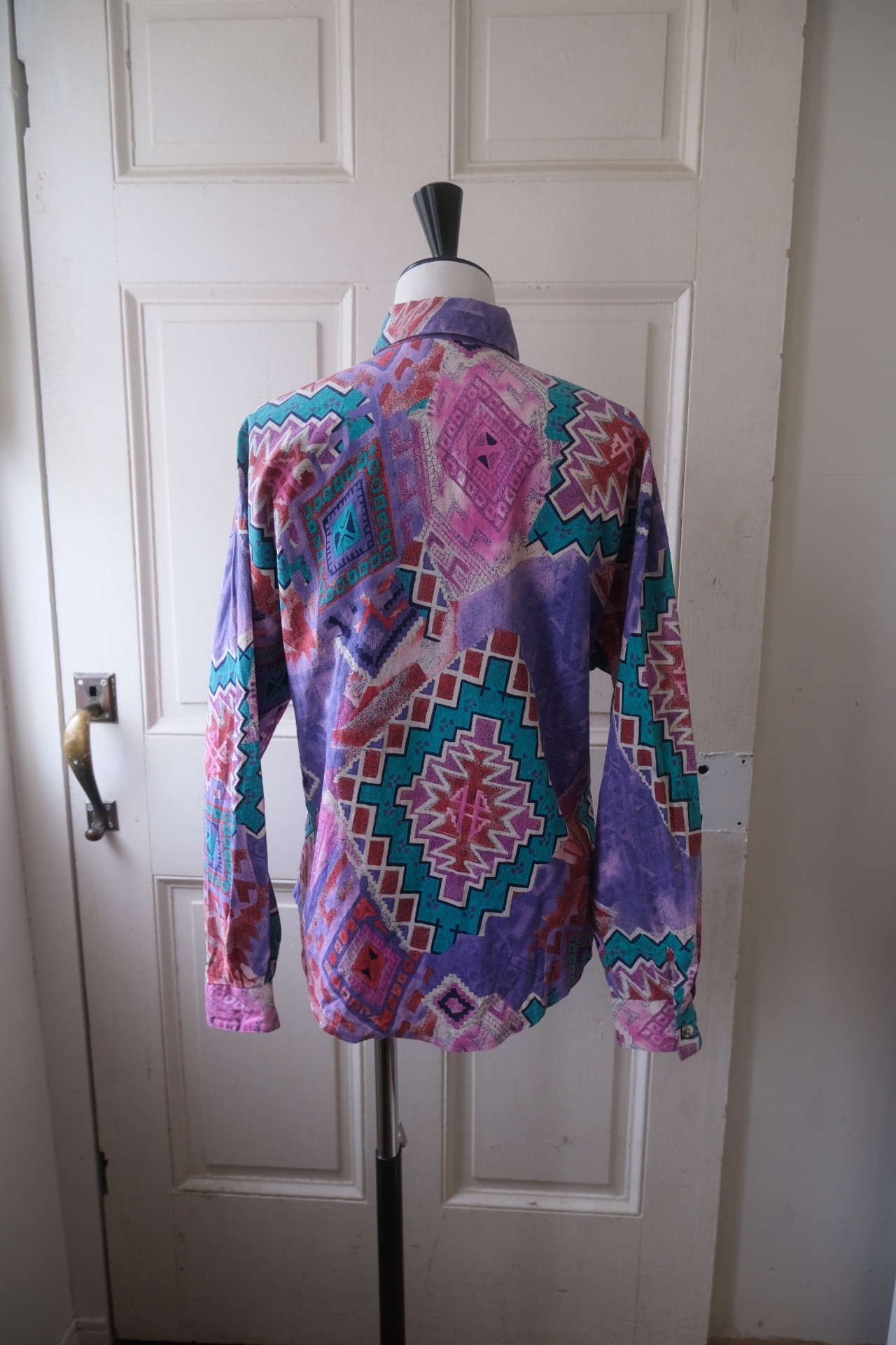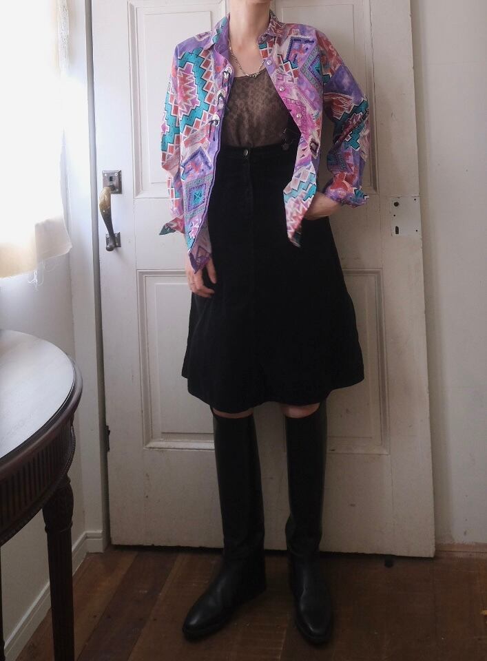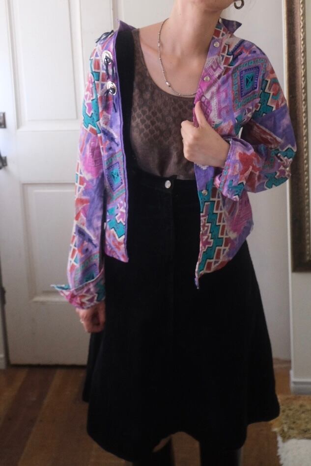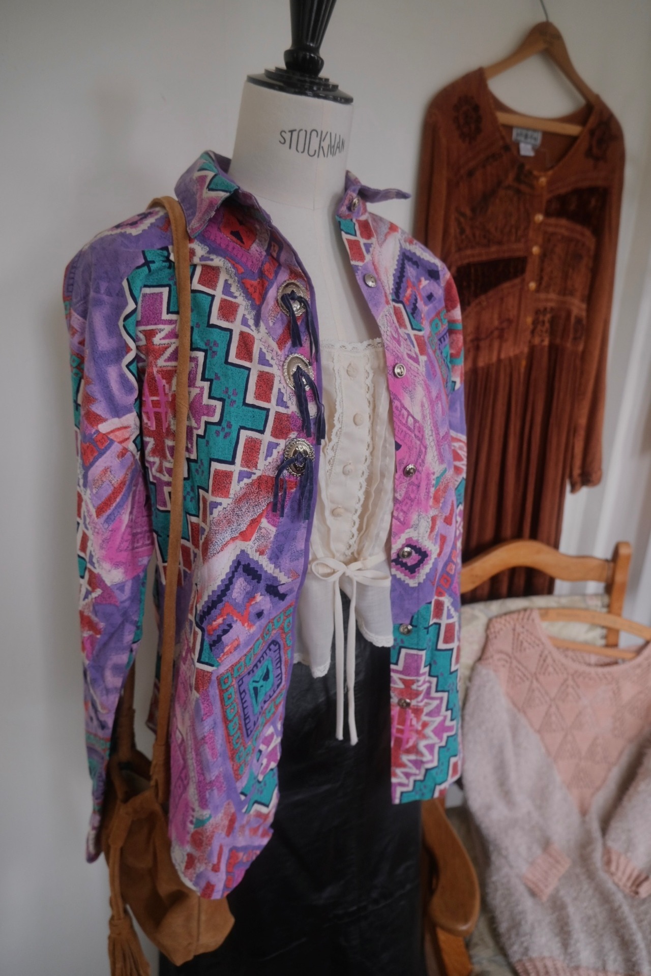 80'sらしいテキスタイルにコンチョボタンとスゥエードの飾りが付いたシャツ。