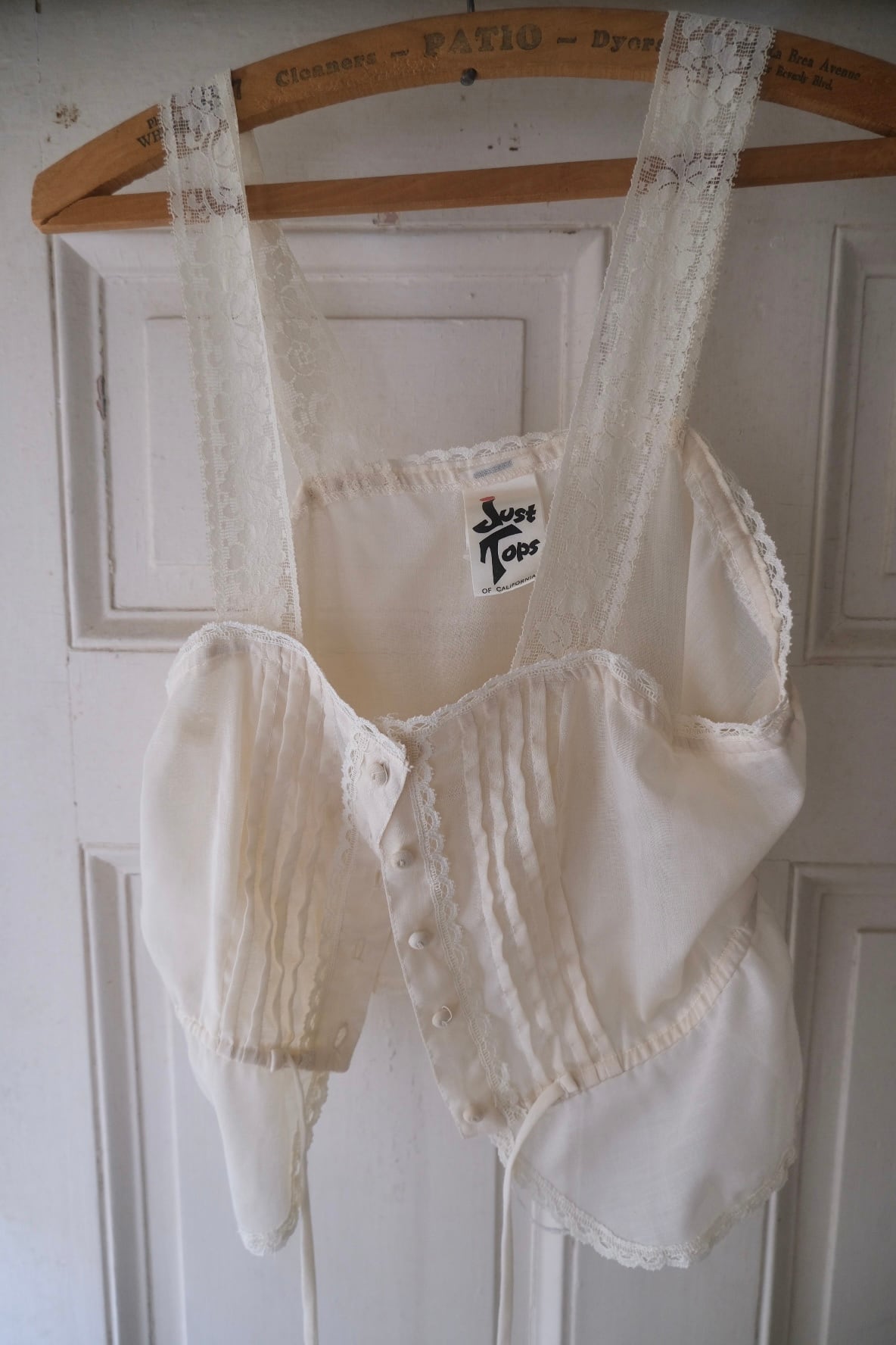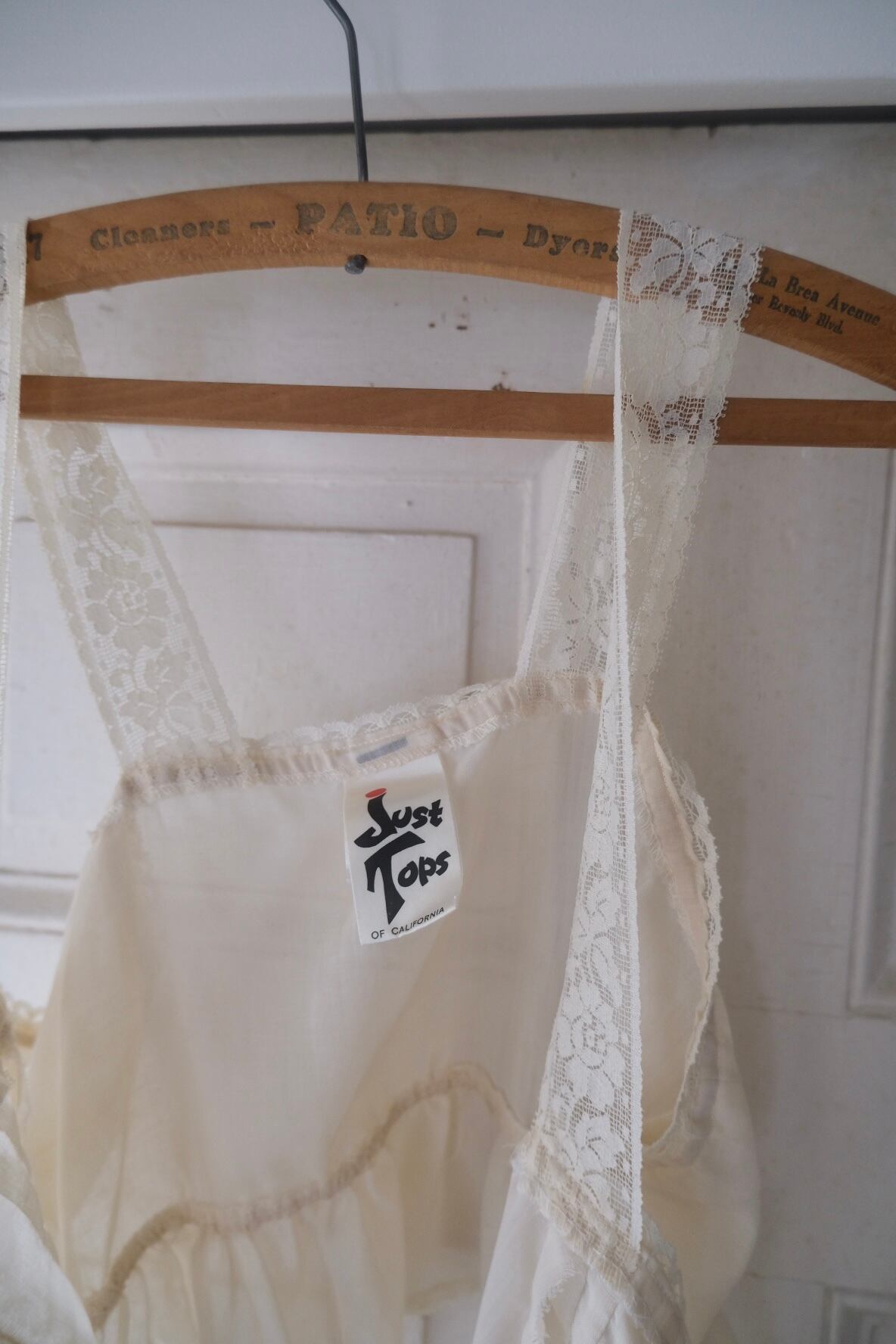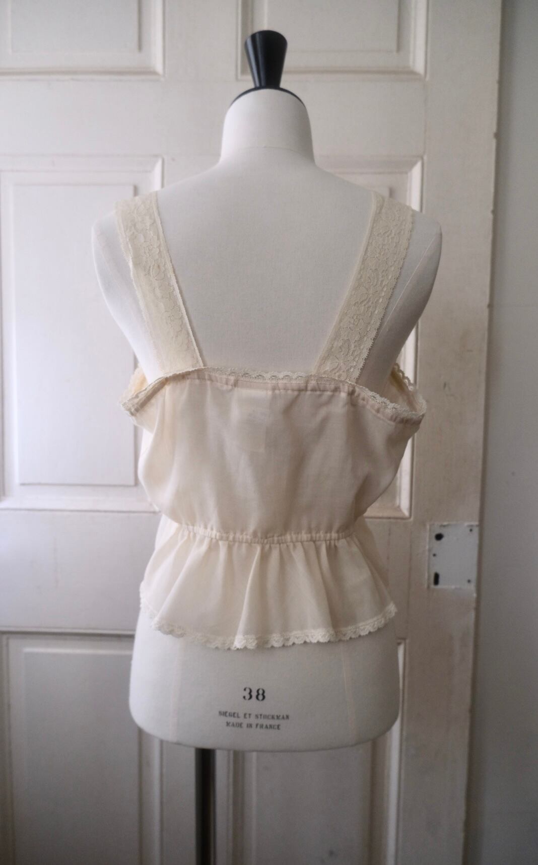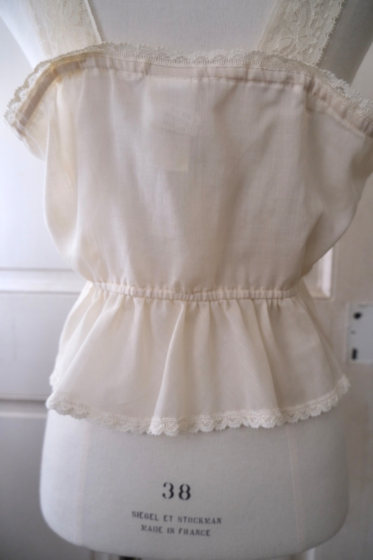 オフホワイトの柔らかな生地で優しいレースvintage moodに溢れたキャミソール。
