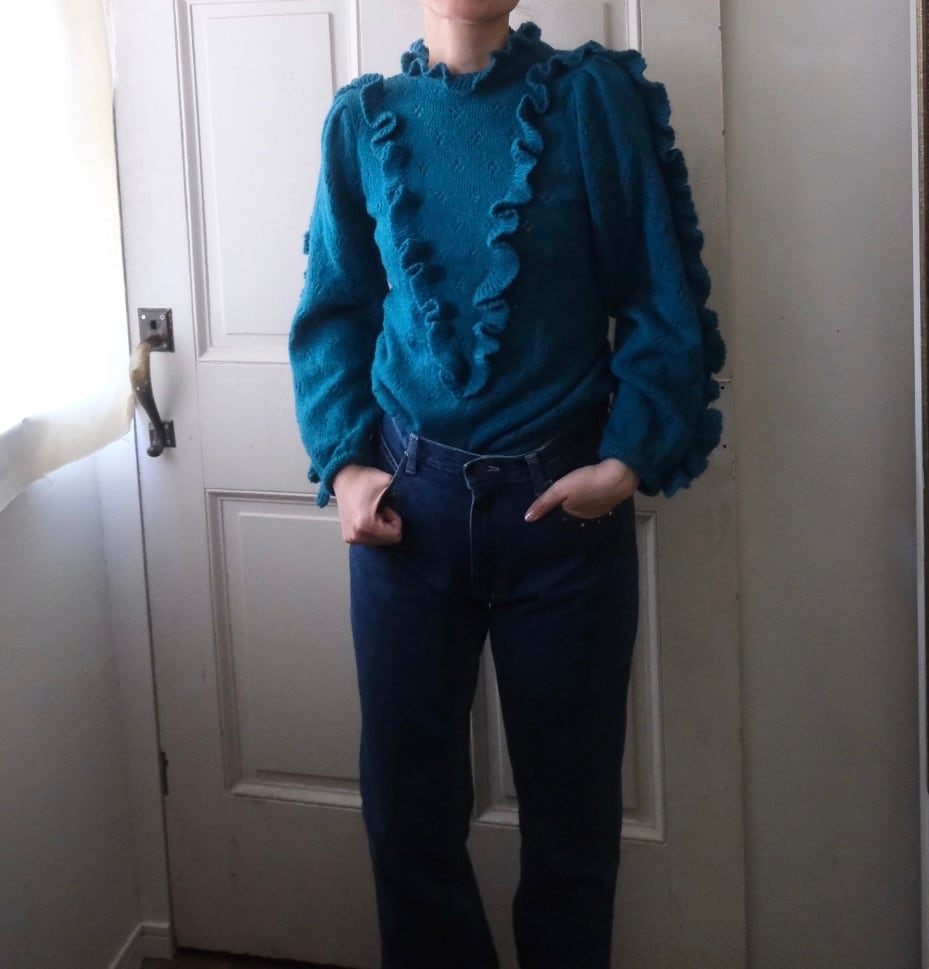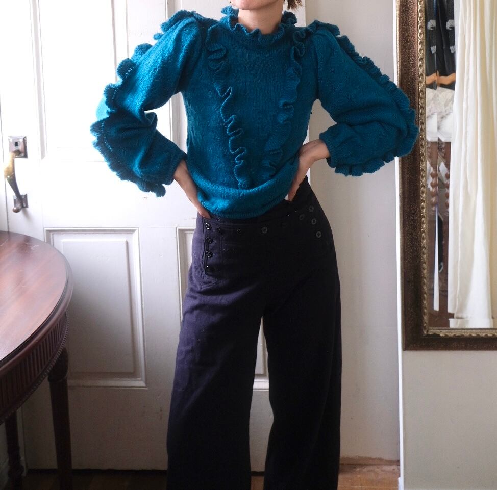 ここまで大胆に惜しみなくフリルを作るニットはなかなか無いと思います。
