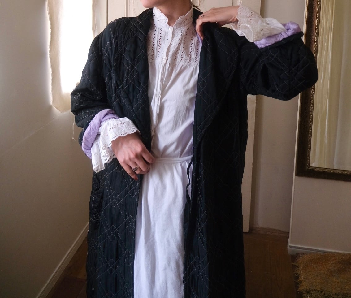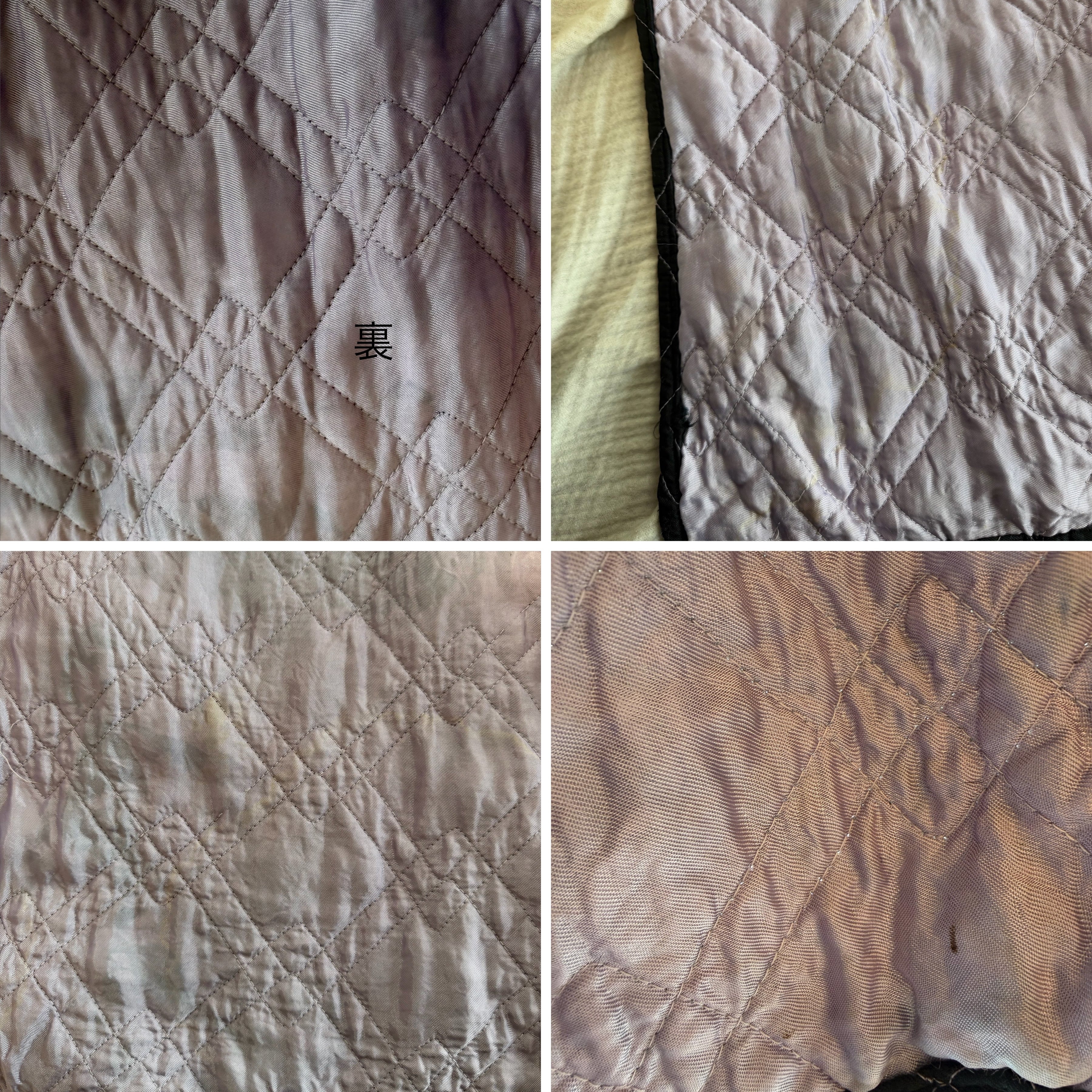 古い物になりますので幾つかダメージがございます。キルトの糸のほつれ、フロントにキズ、裏地に色移りやシミがございます。またvintage特有の使用感がございます。