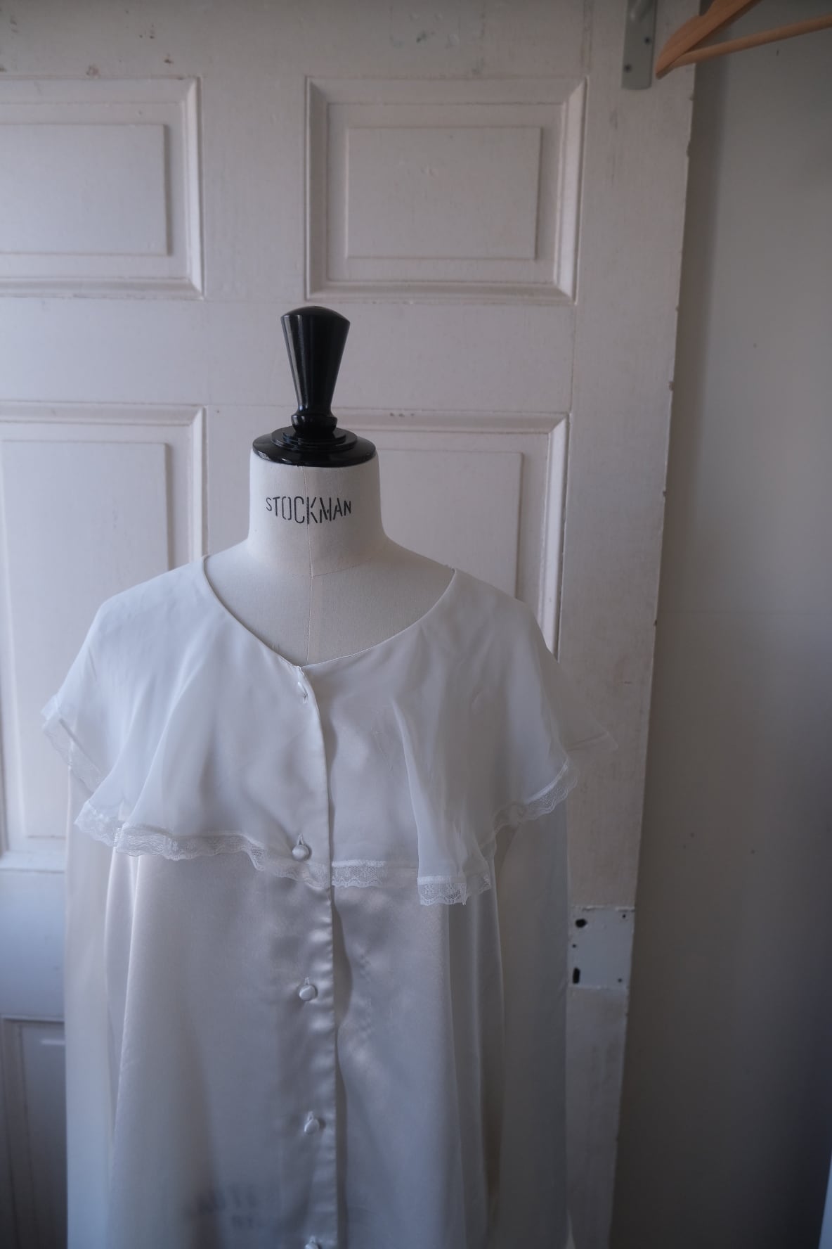 空気でですら揺れてしまいそうな軽いchiffon frillが可愛いlong shirt。