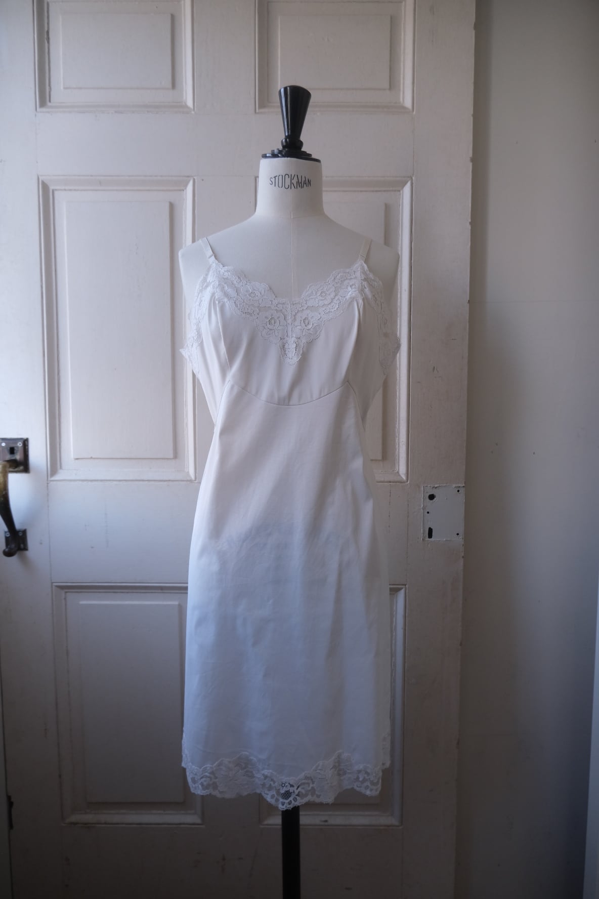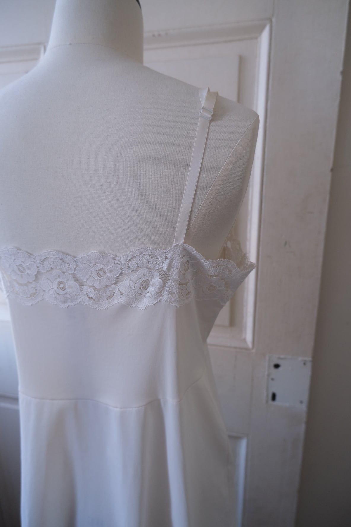 デコルテも裾も程良いレース具合でレイヤードにとっても使いやすいデザイン。