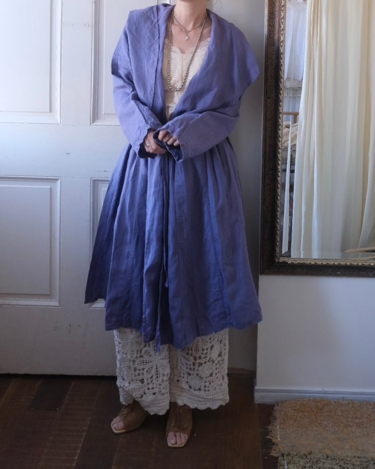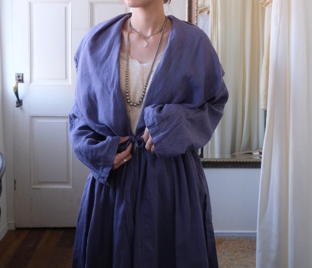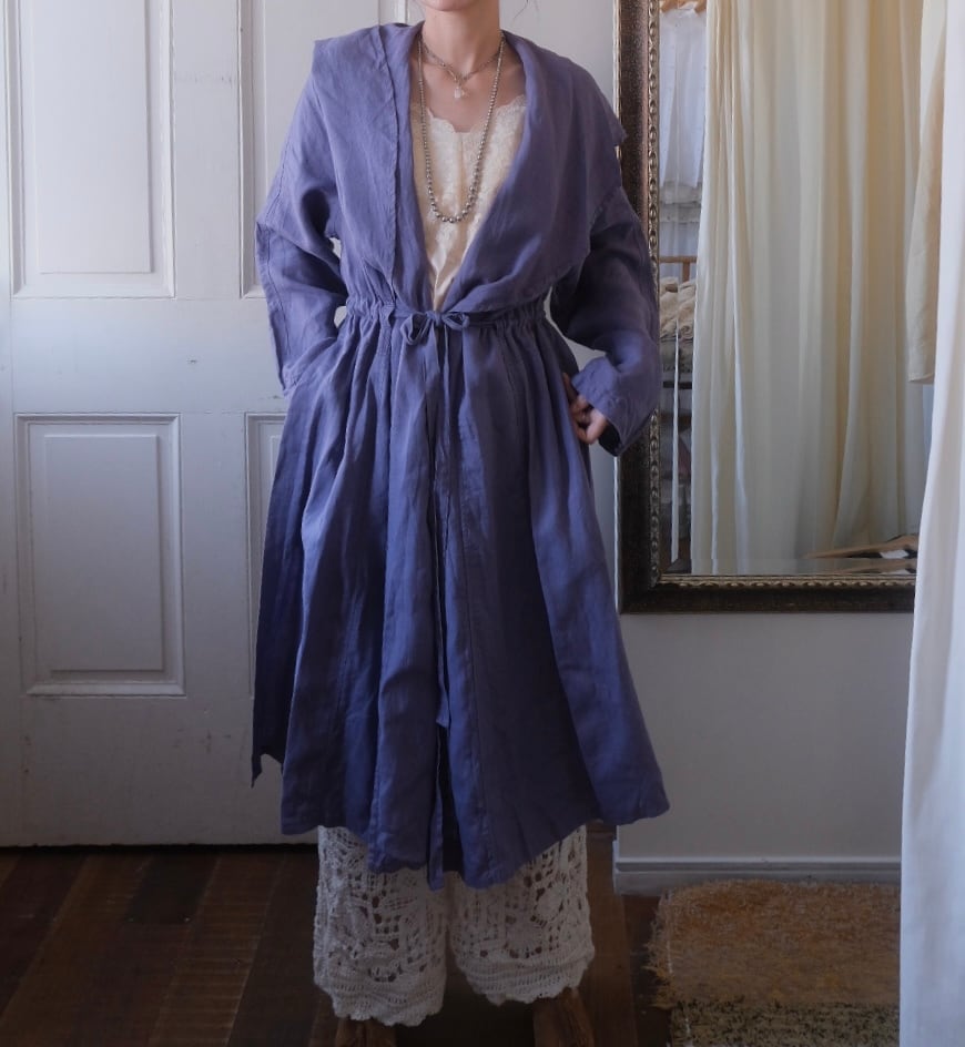 まるでドレスの様な美しいドレープのリネンコート。