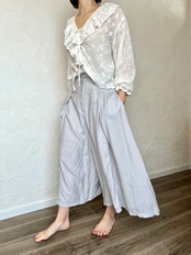 たくさんのポイントがあるのに、甘すぎない大人な一枚。くたっとしたレーヨンの落ち感が華奢に見せてくれます。