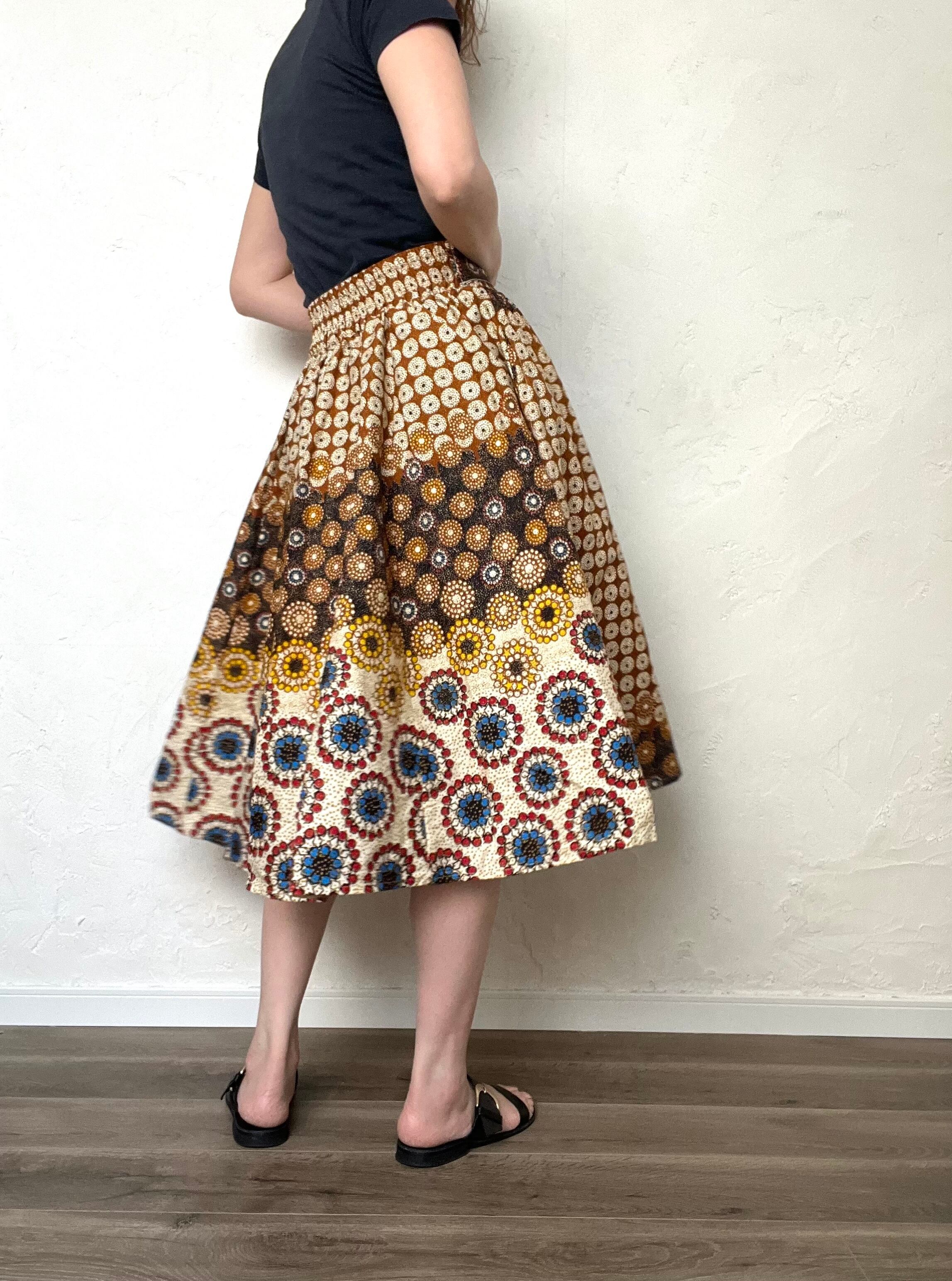 たっぷりと生地を使っていて、動くたびに表情が変わるとっても素敵なbatikスカートです。