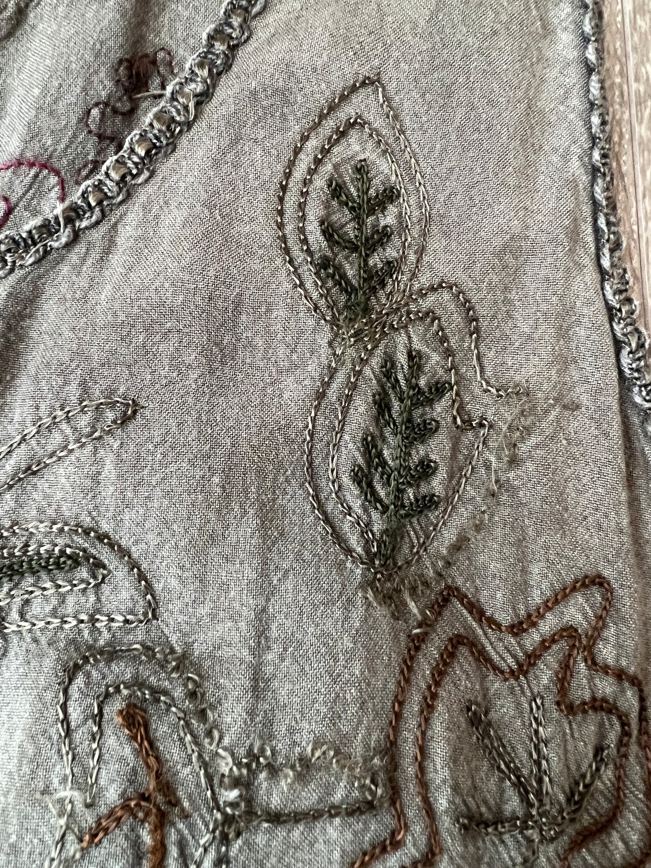 特筆するダメージとしては、ところどころに刺繍がほつれているところがございます。