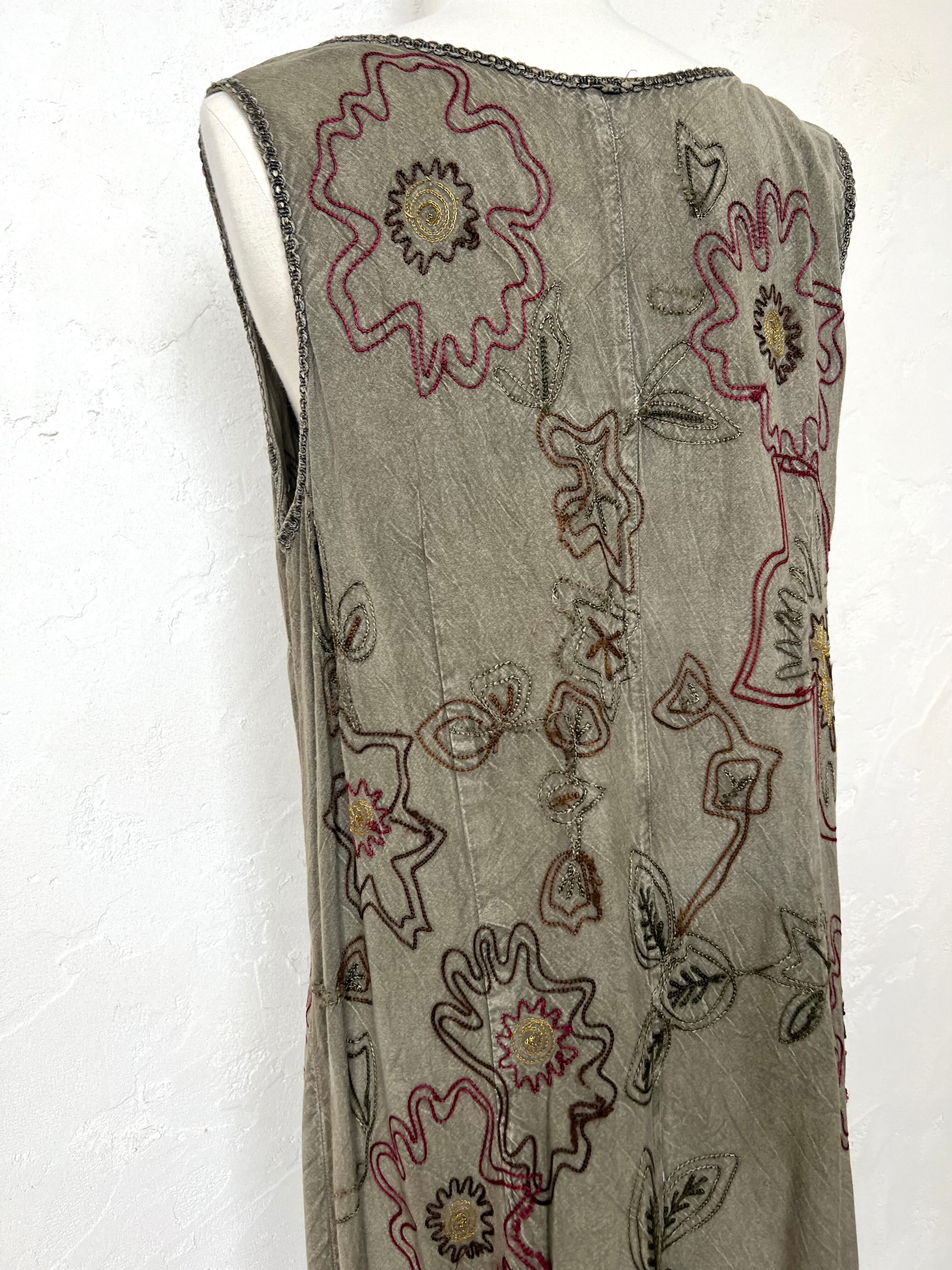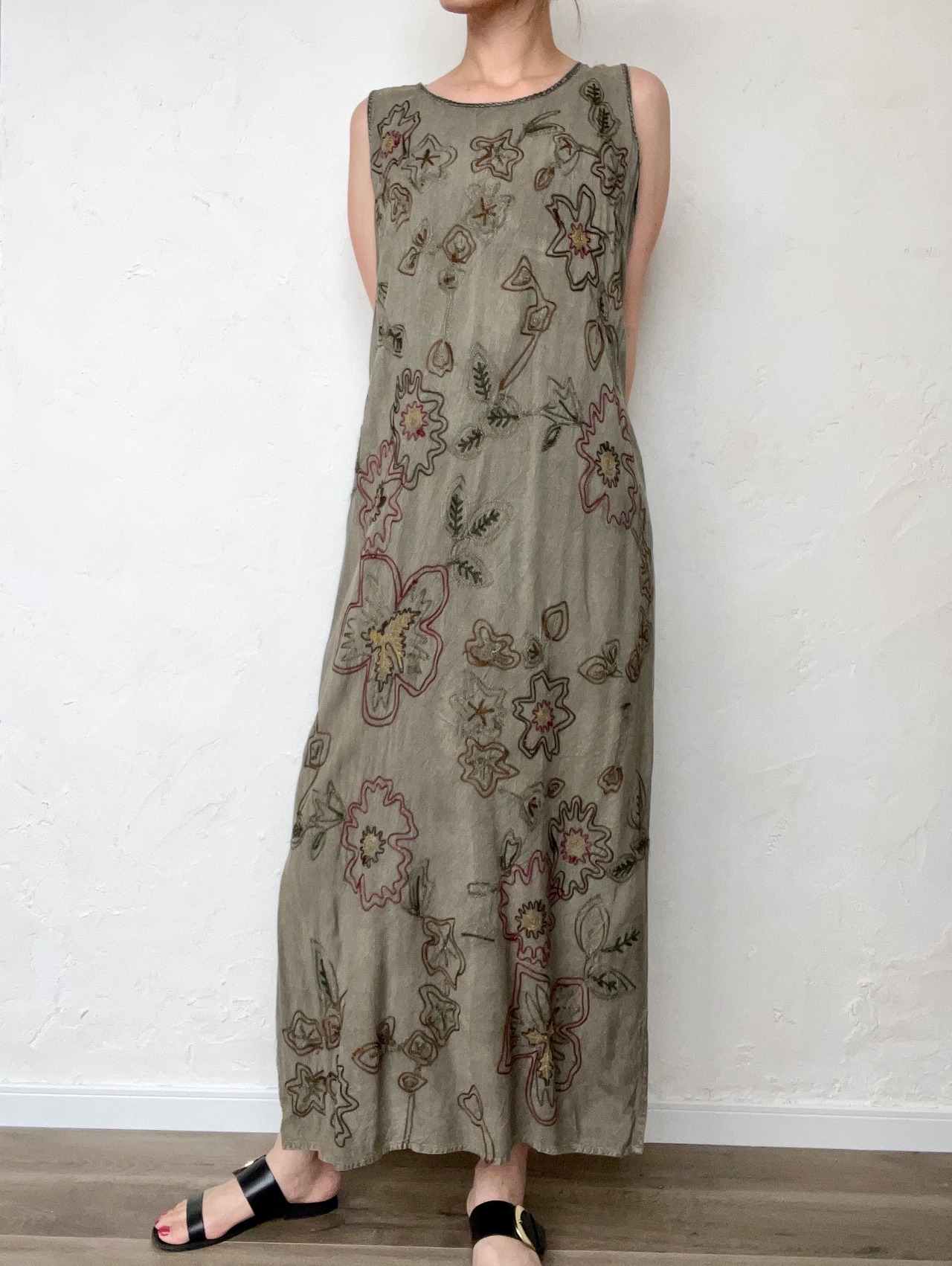 フロントにもバックにも全体に刺繍が入った贅沢なエスニックワンピース。