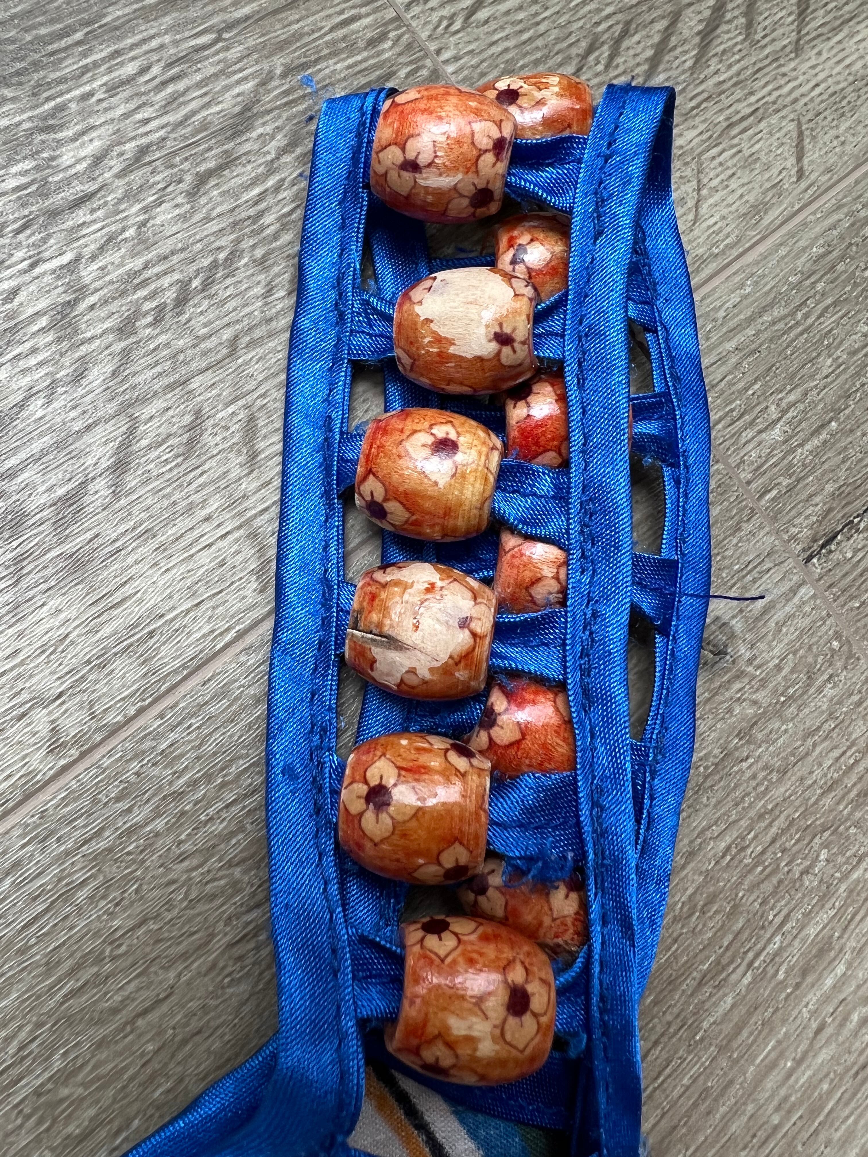 特筆するダメージとしてはウッドビーズの模様が薄くなっているところ、ヒビが入っているところがあります。こちらはくるっと回して頂けるので、ダメージが少ない面を表に出すのがお勧めです。