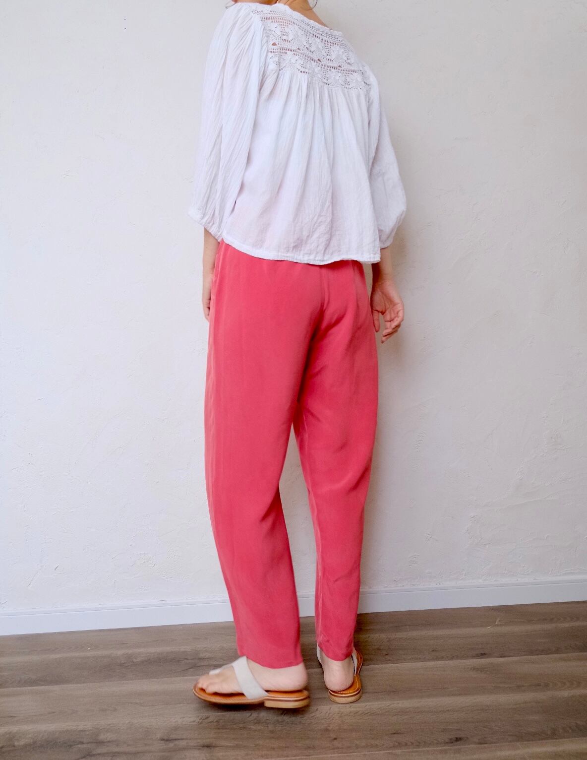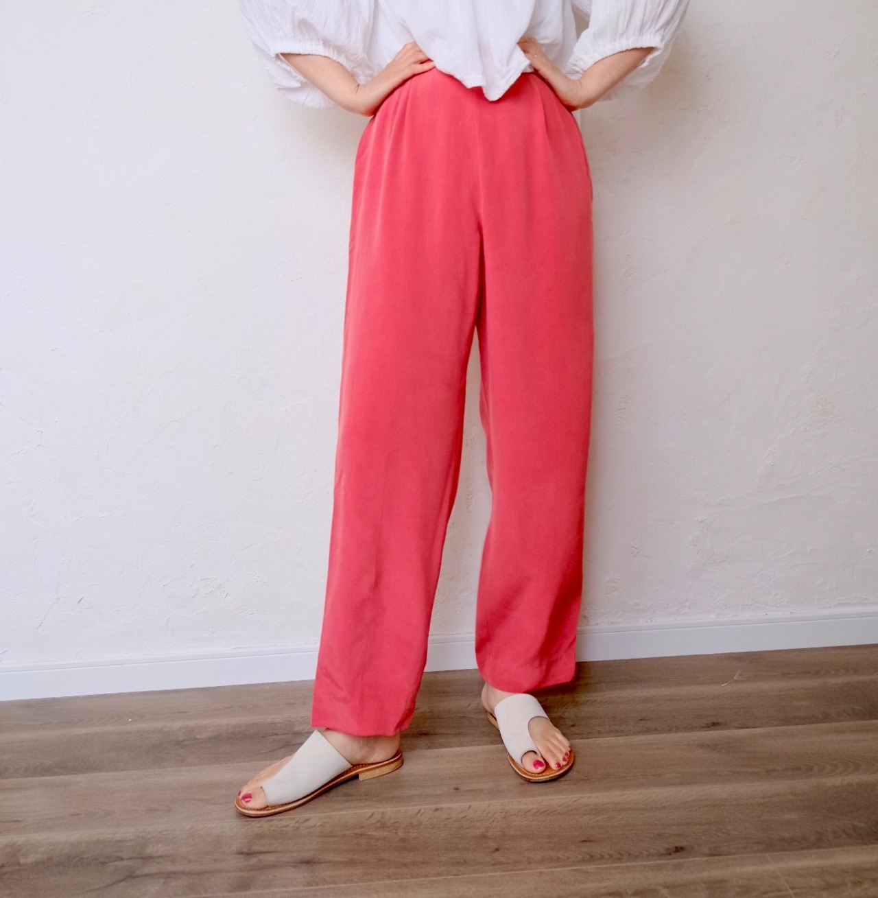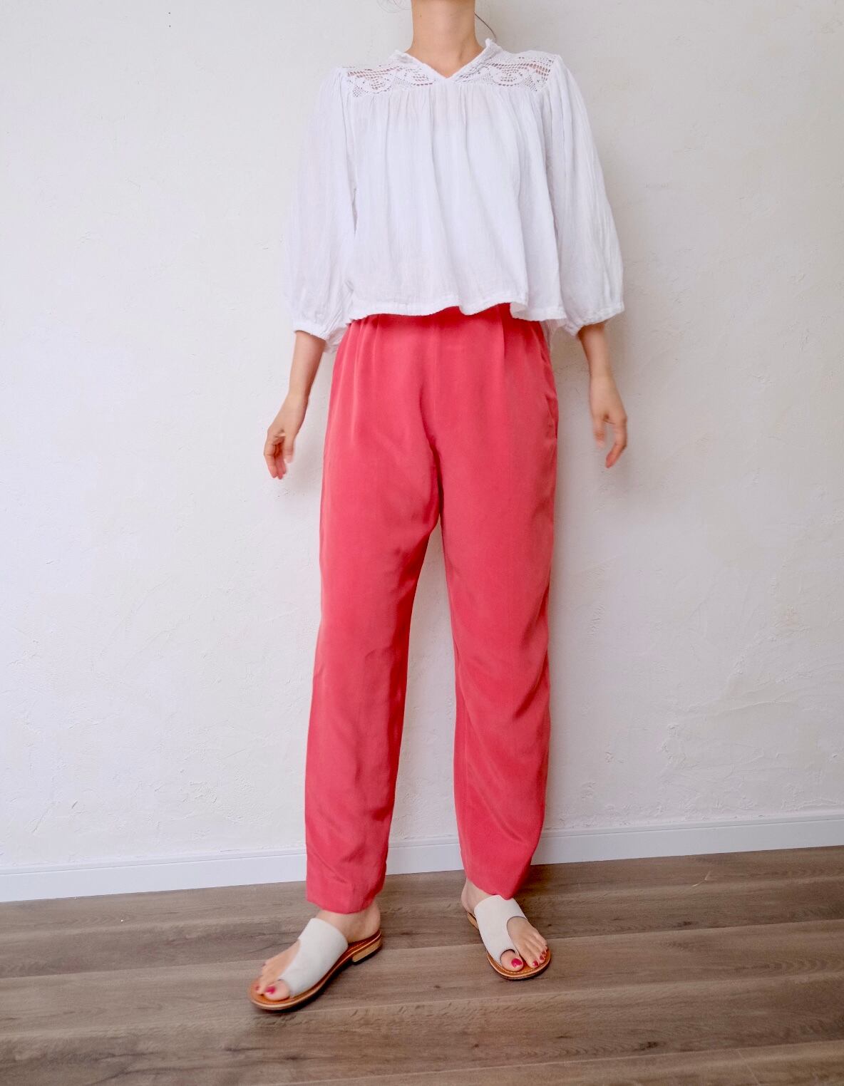 silk pink tuck pants