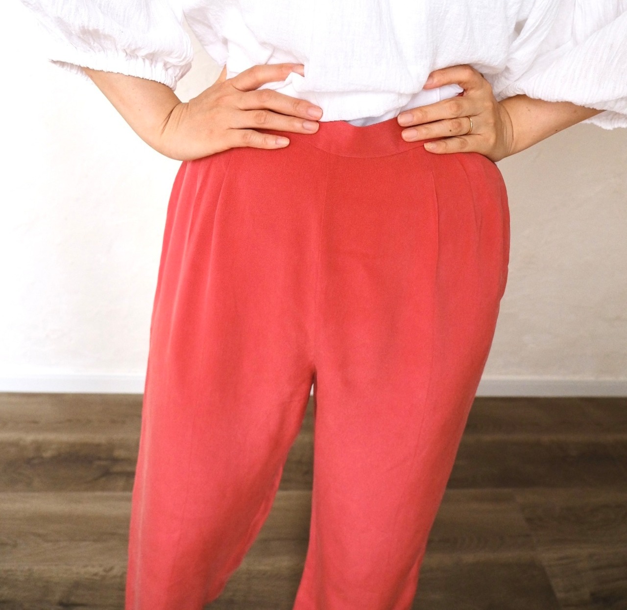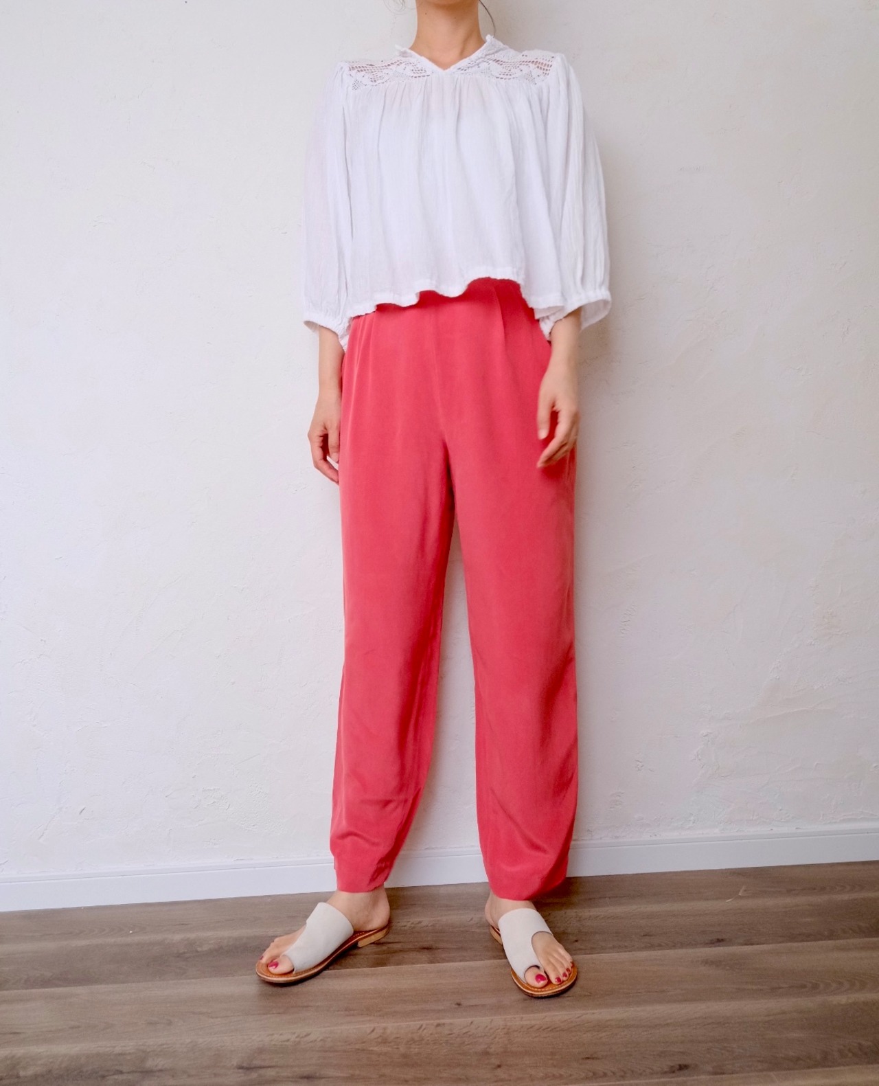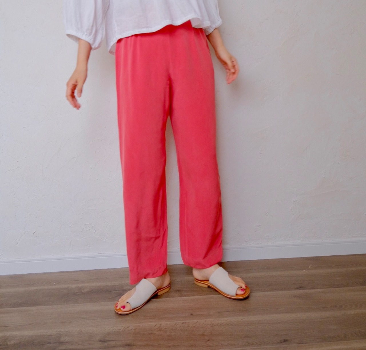 silk pink tuck pants