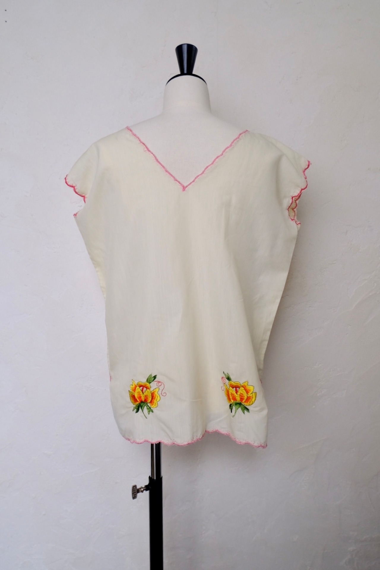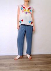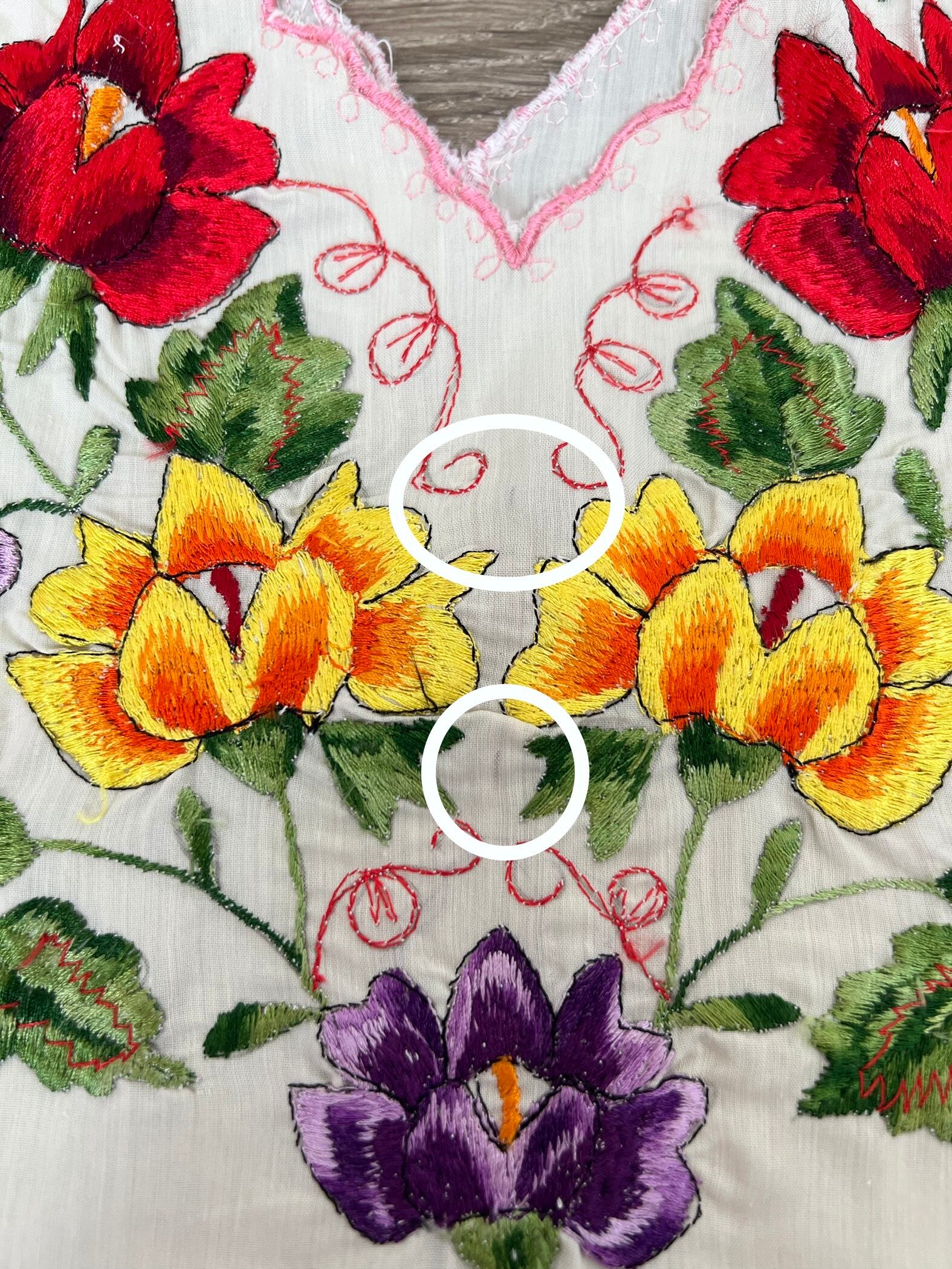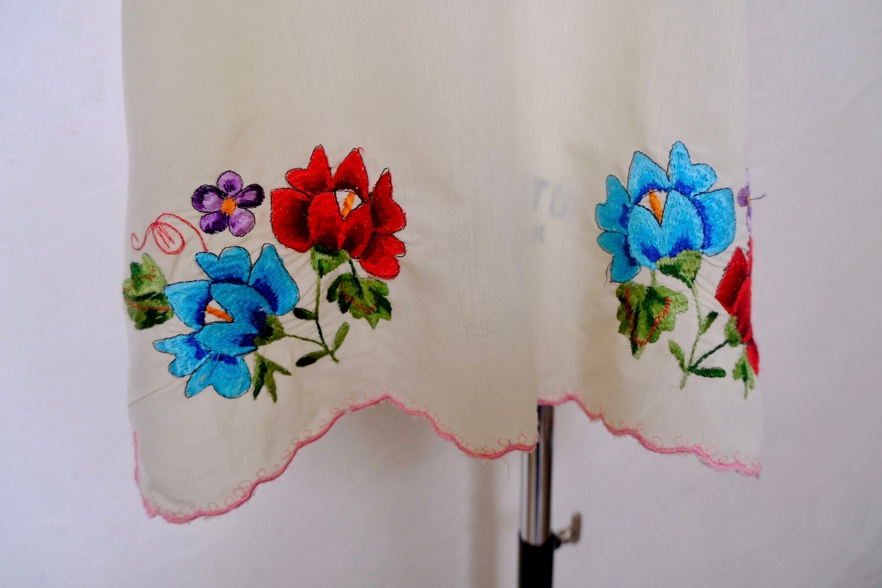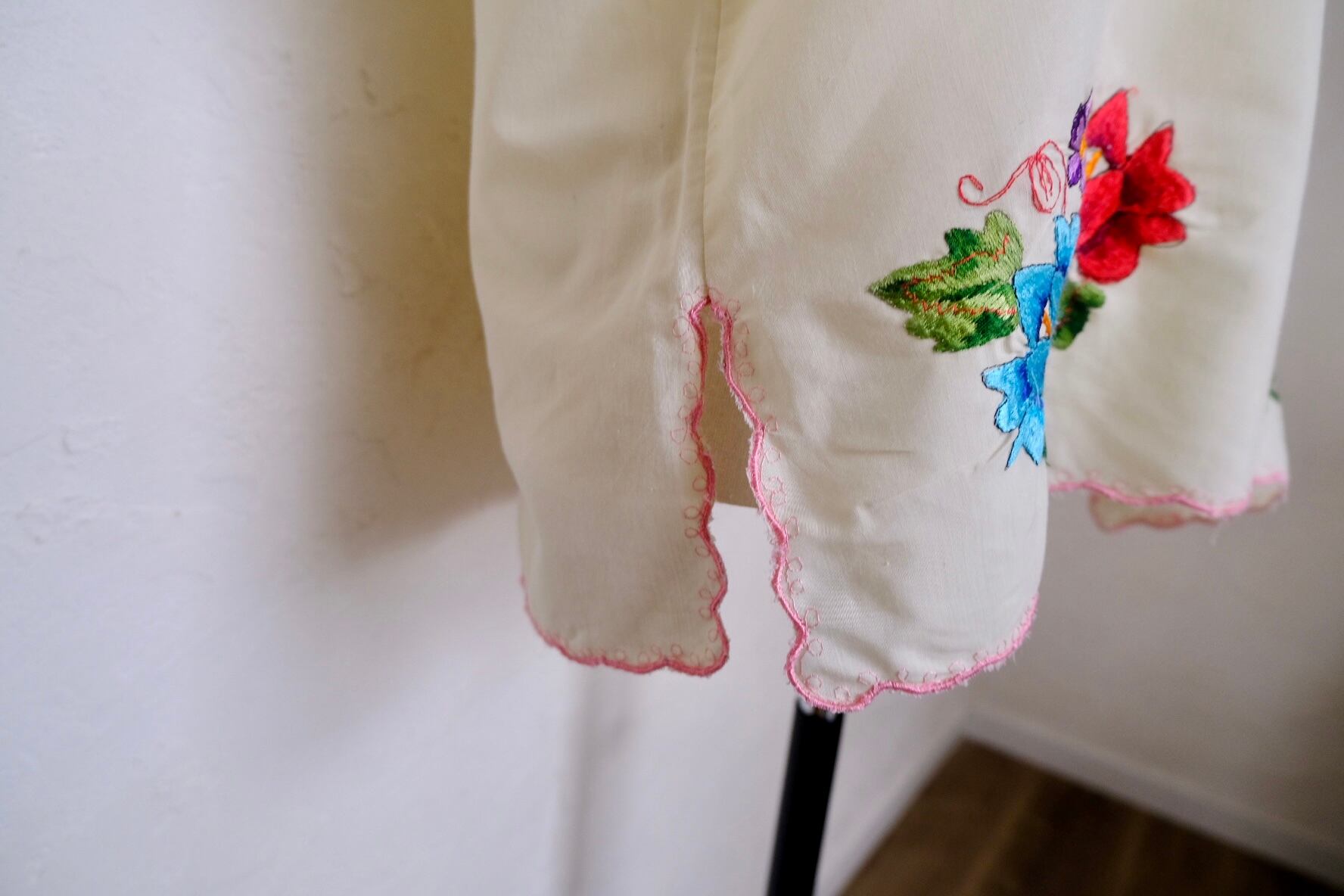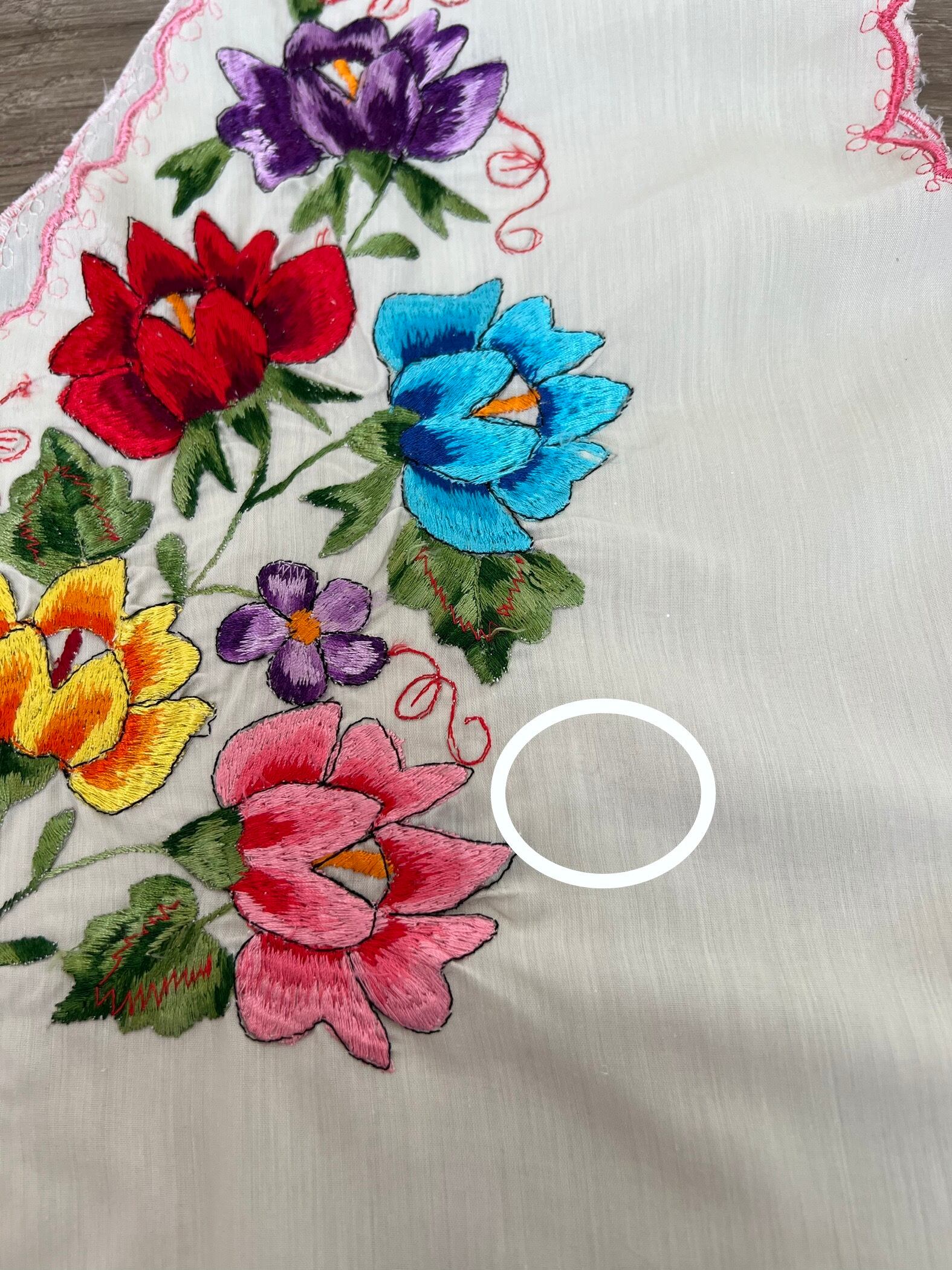 とても華やかで、目を惹きつけるメキシコの花刺繍のブラウス。