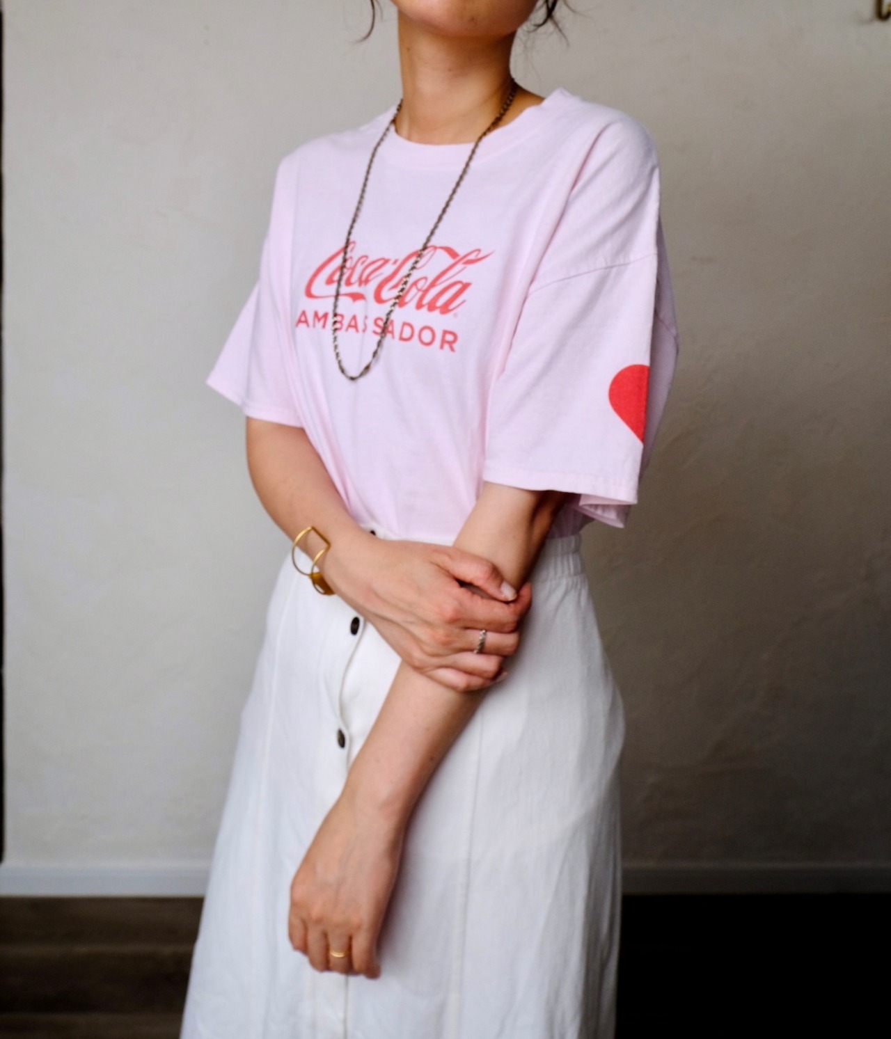 ベビーピンクのボディに赤のcoca colaのロゴがとても可愛い一枚。