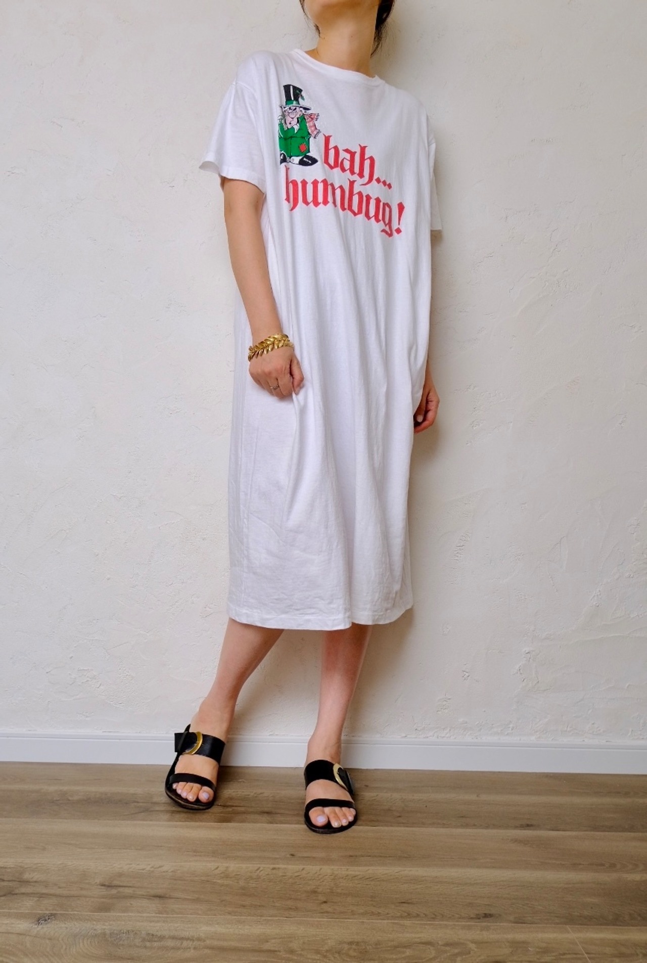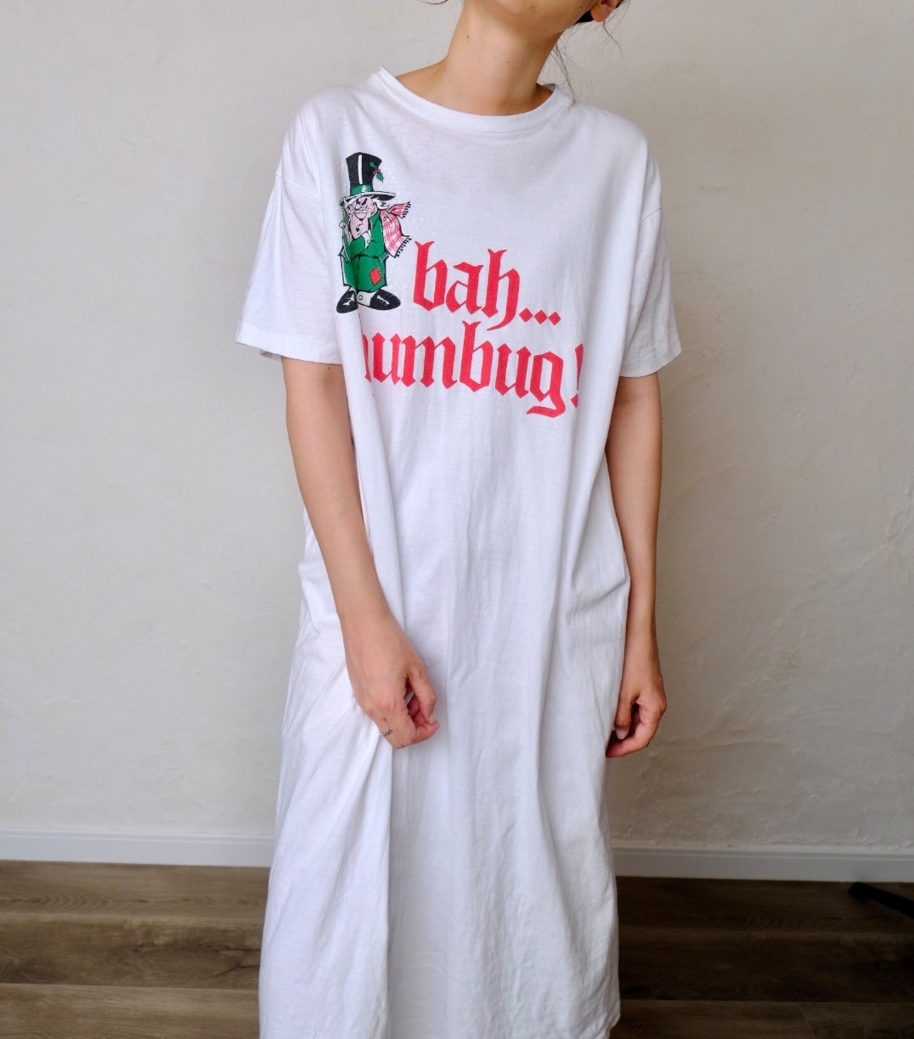 『あぁ、だまされた!!』と怒っているおじさんのプリントが可愛いteeワンピース。