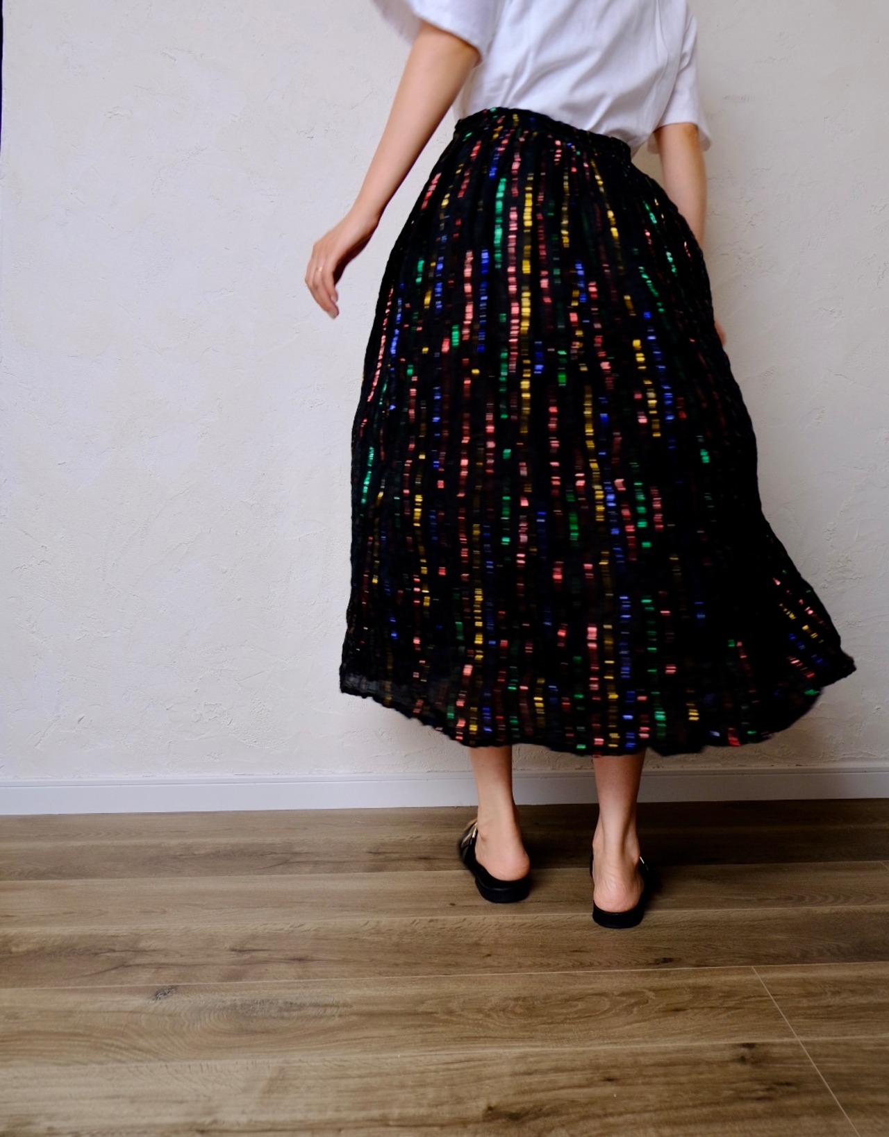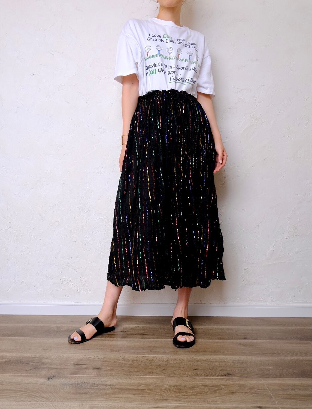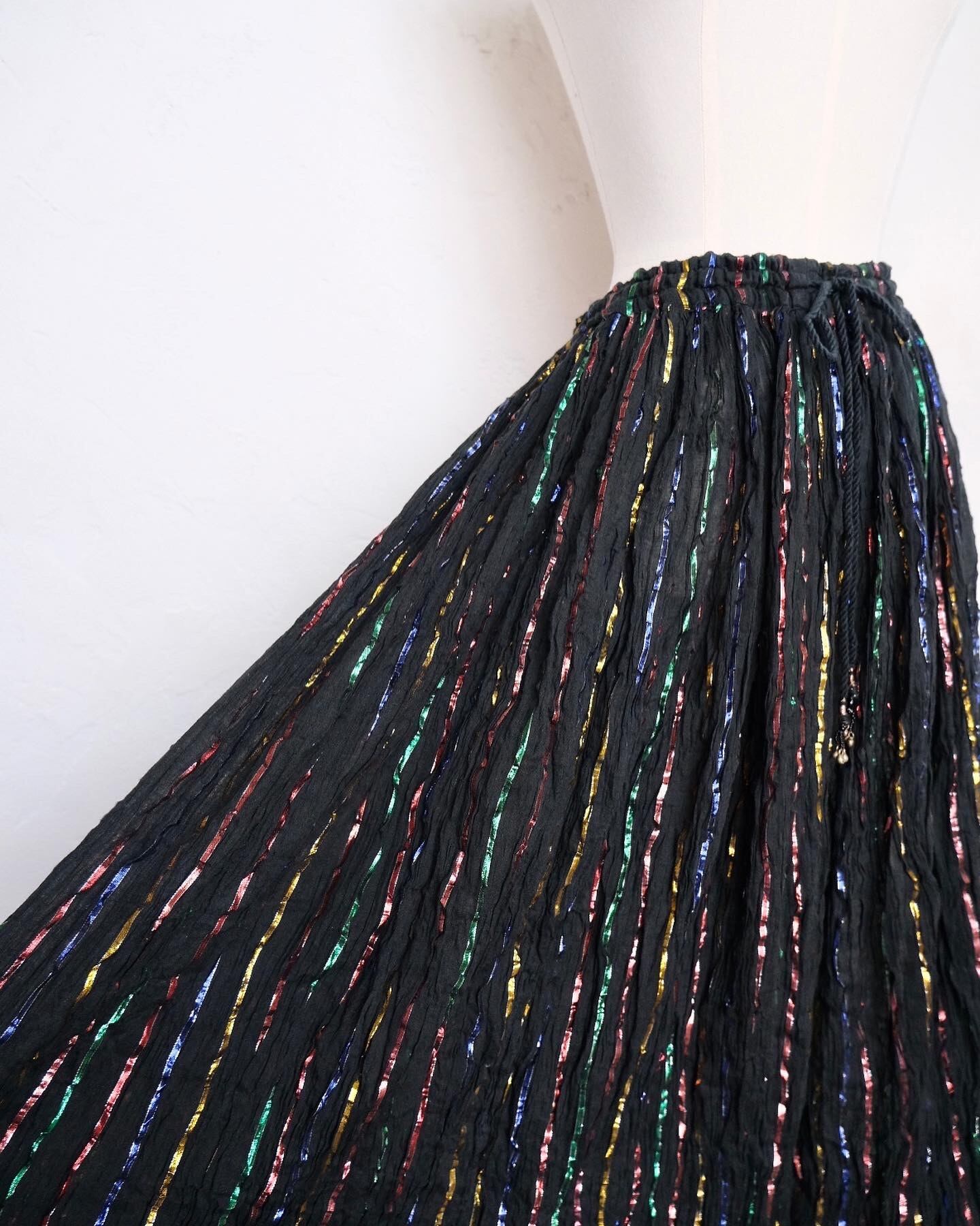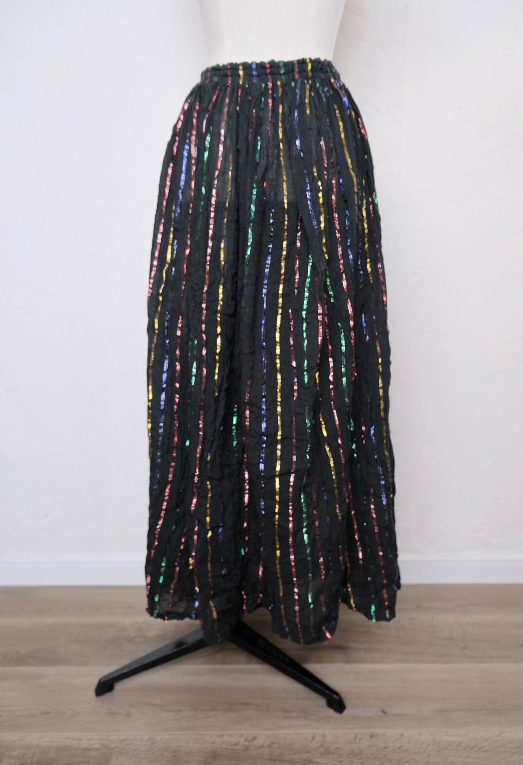 ブラックにマルチカラーのラメストライプがキラキラと、とっても可愛いインド綿スカート。