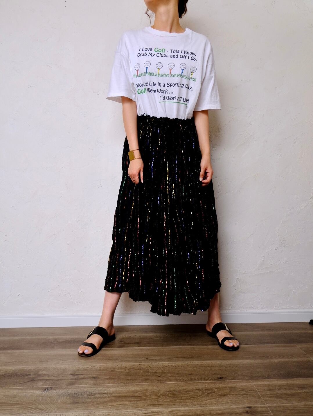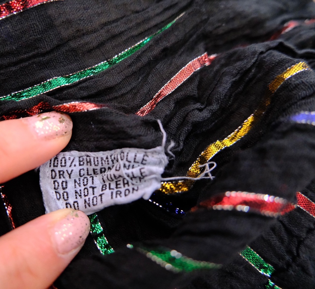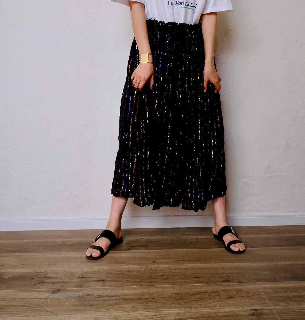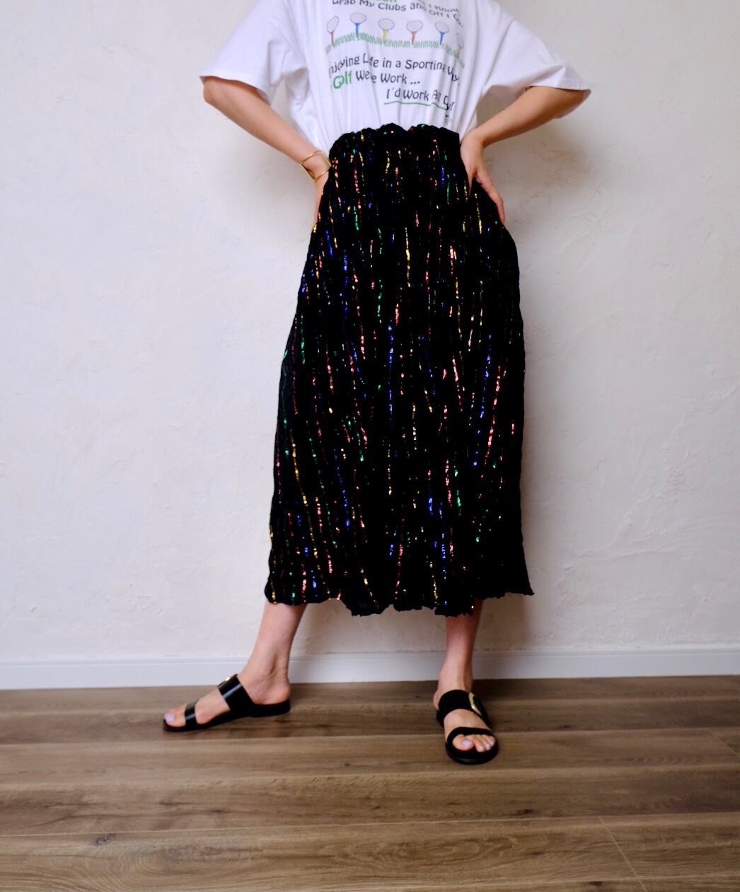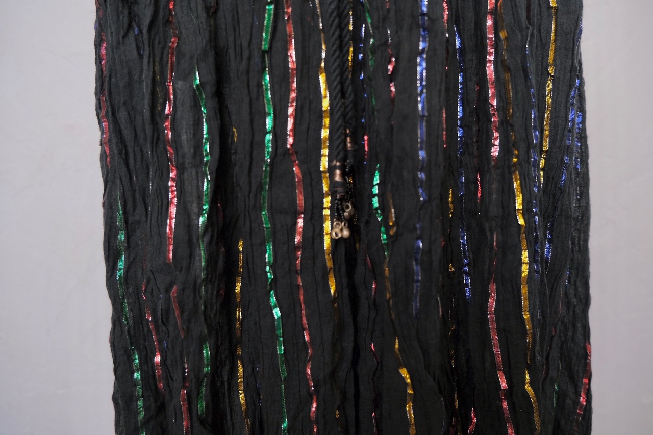 ブラックにマルチカラーのラメストライプがキラキラと、とっても可愛いインド綿スカート。
