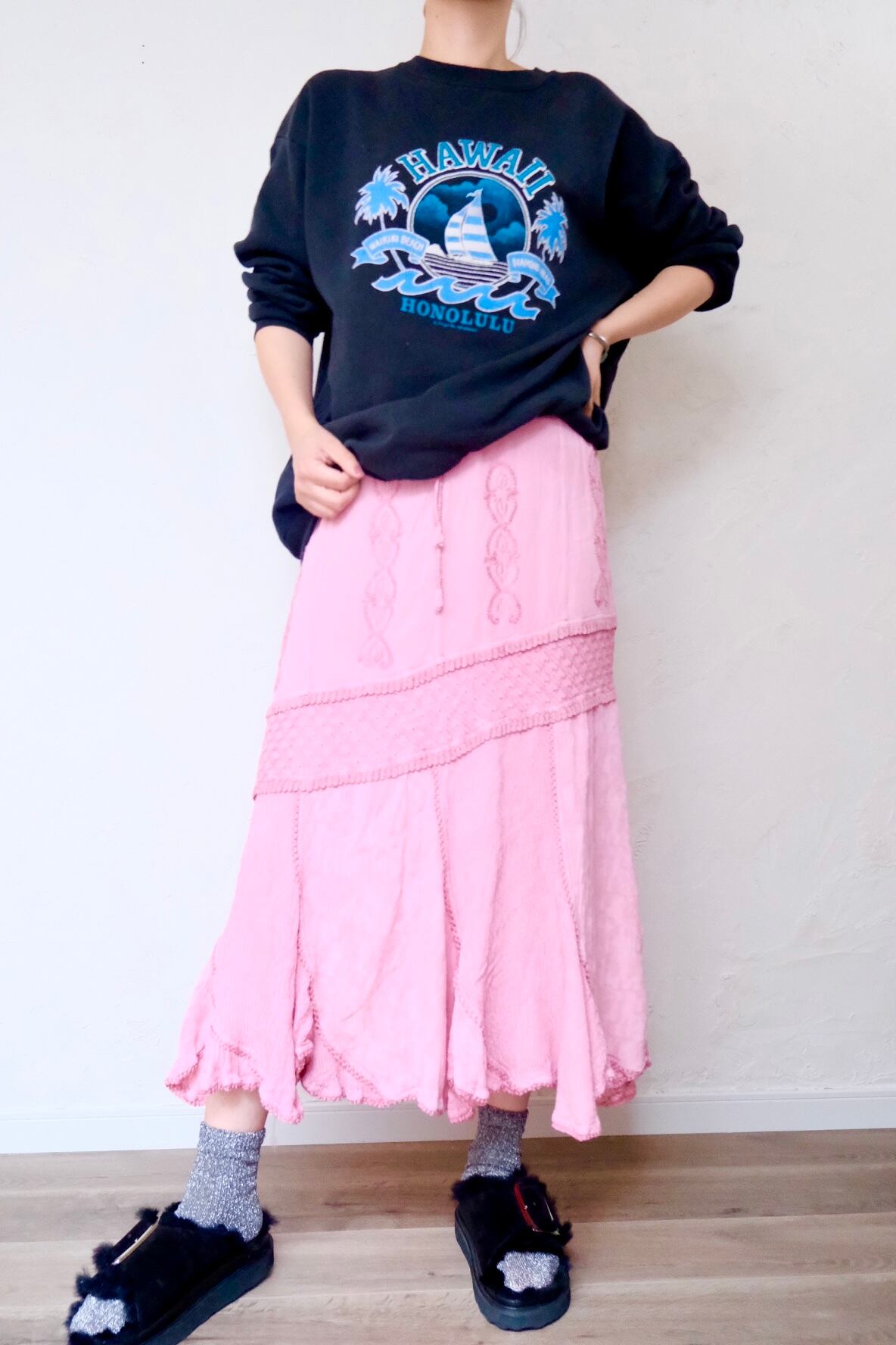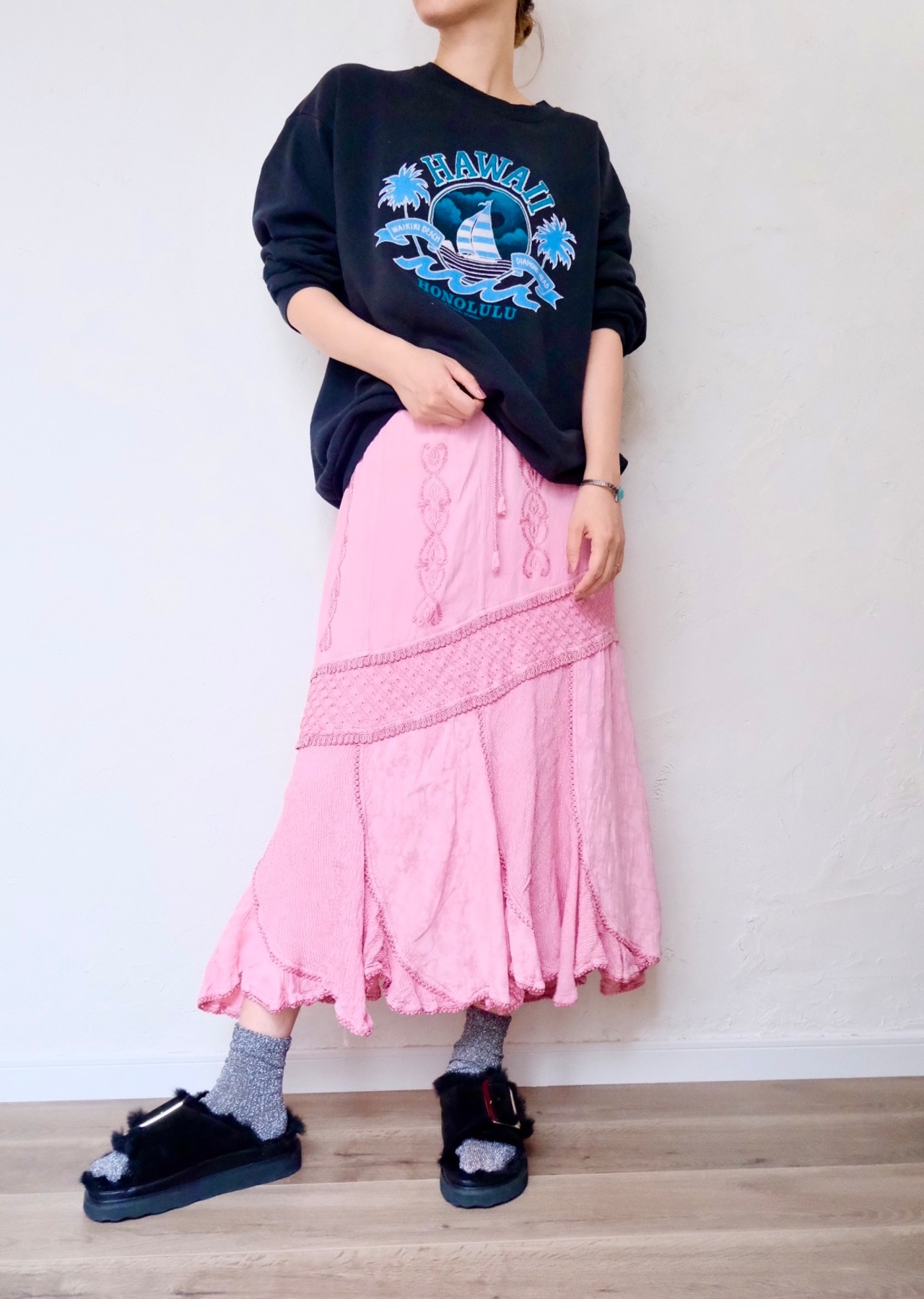 様々な刺繍や、チェックの様な加工が施されています。とてもデザイン性のある一枚。