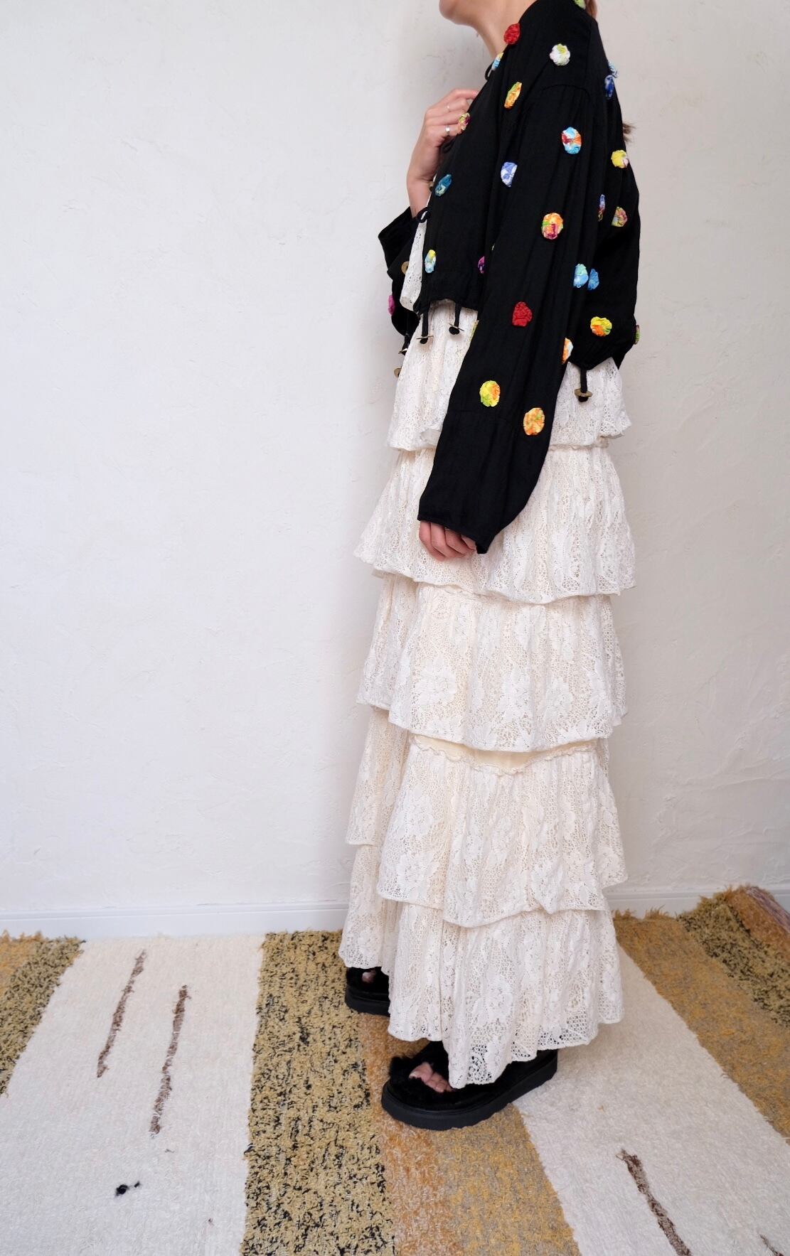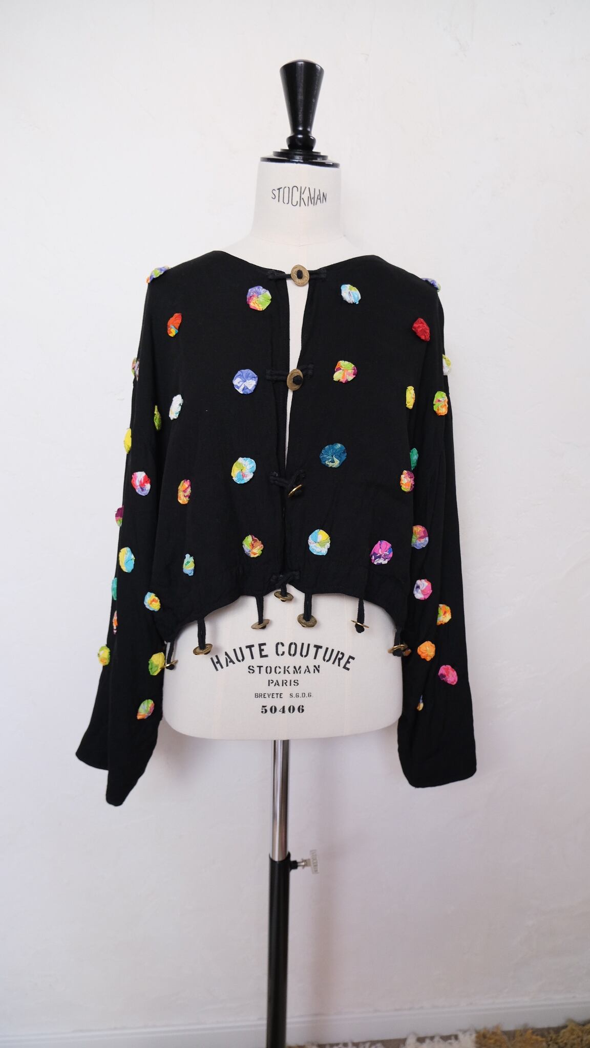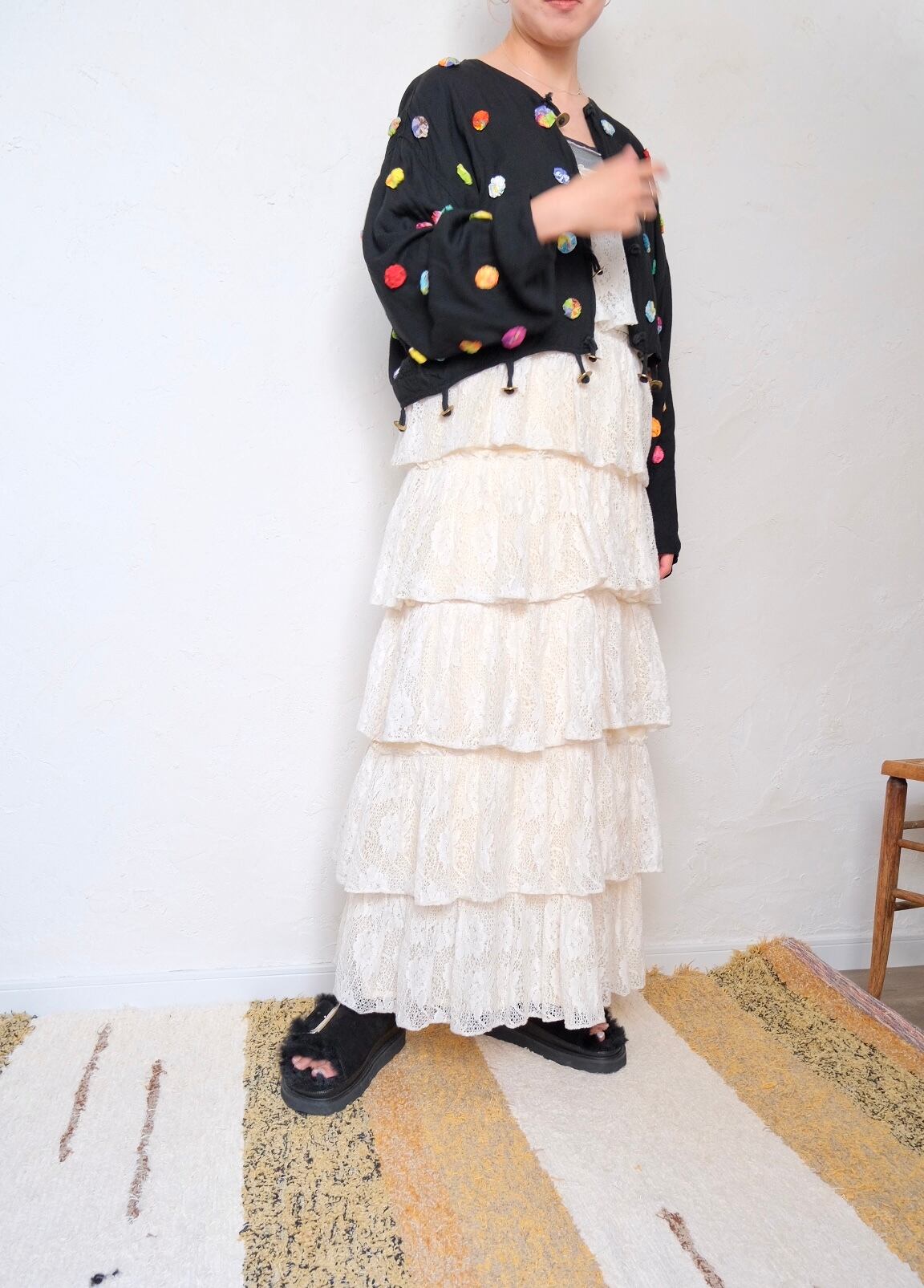 ボタンや裾のゆれる飾りに、コインが使われていて、個性的です。