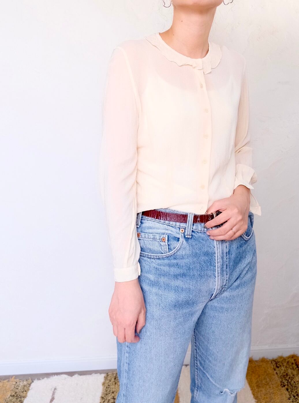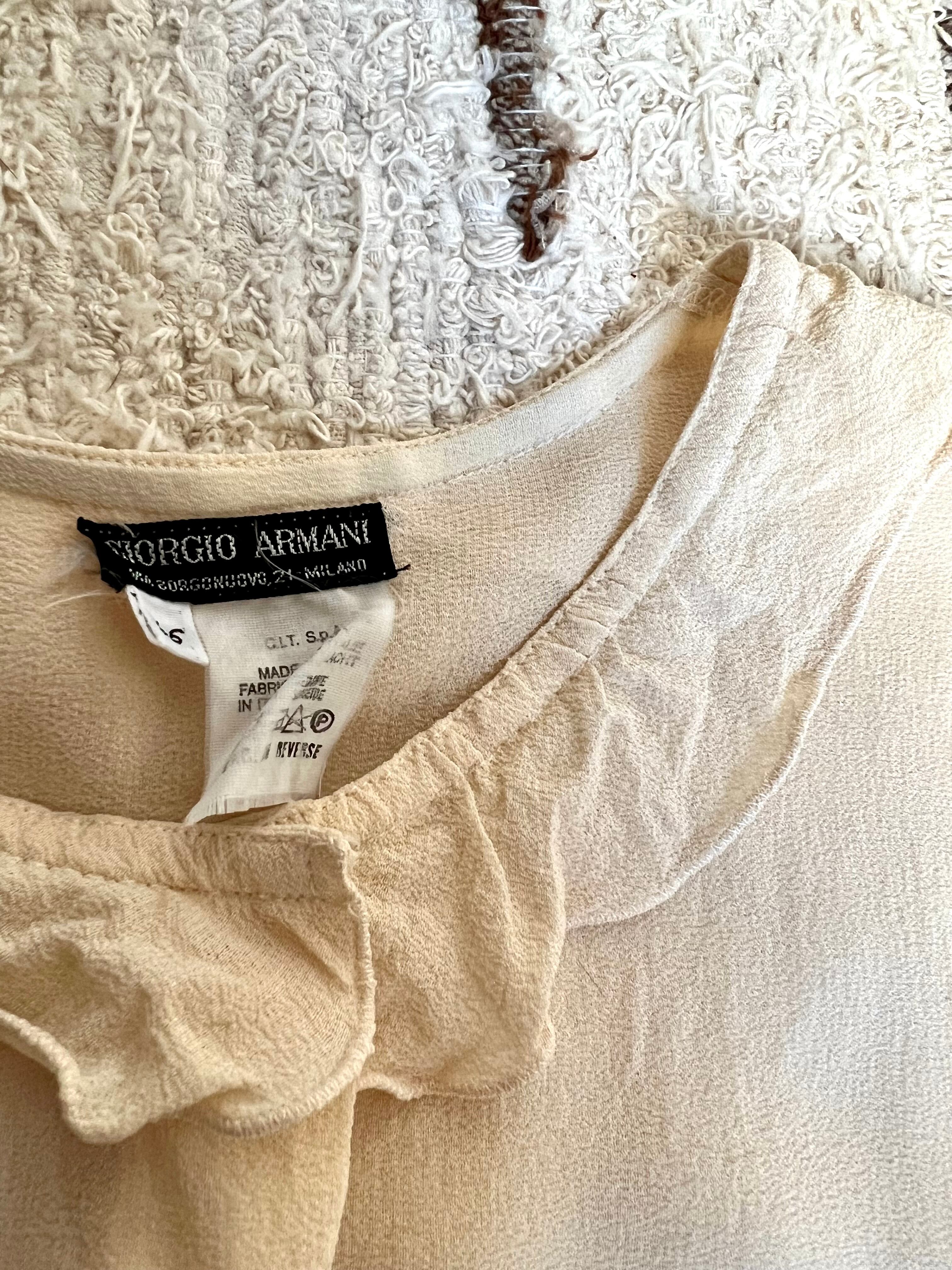 80年代のGIORGIO ARMANIの小さなフリルカラーのシルクシャツ。