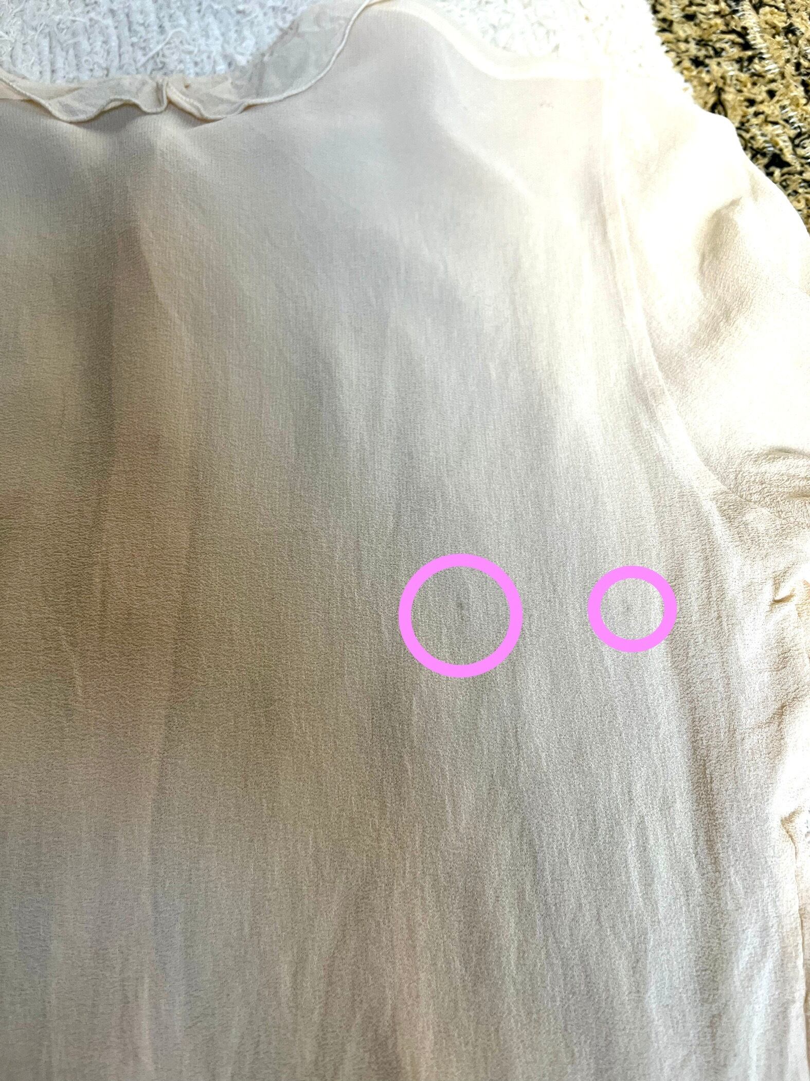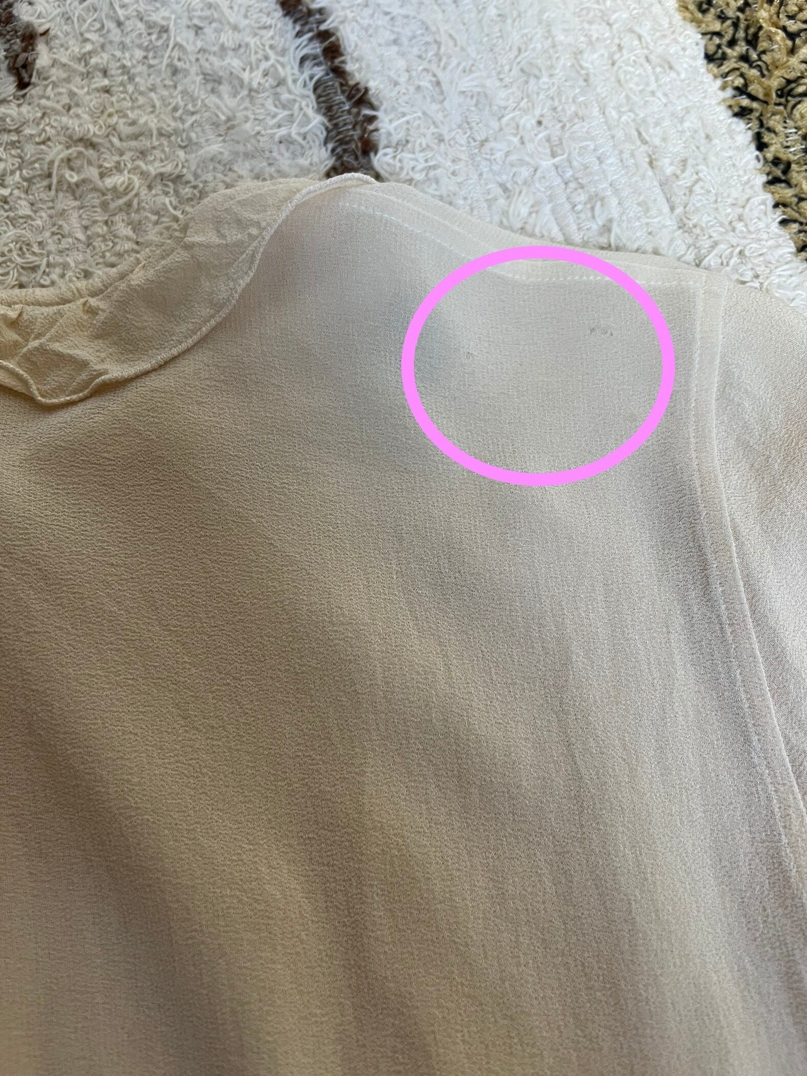 特筆するダメージとしては数箇所、小さな傷の様に生地が薄くなっている箇所がございます。着るとあまり目立ちませんがお写真でご確認お願いします。