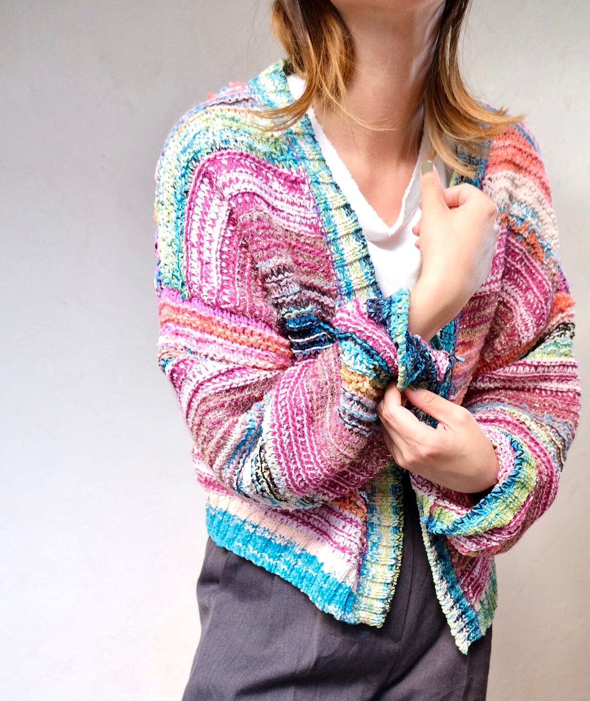 ざっくりと編まれていて、それぞれの毛糸の素材感の表現がしっかり出ていてとても可愛いです。