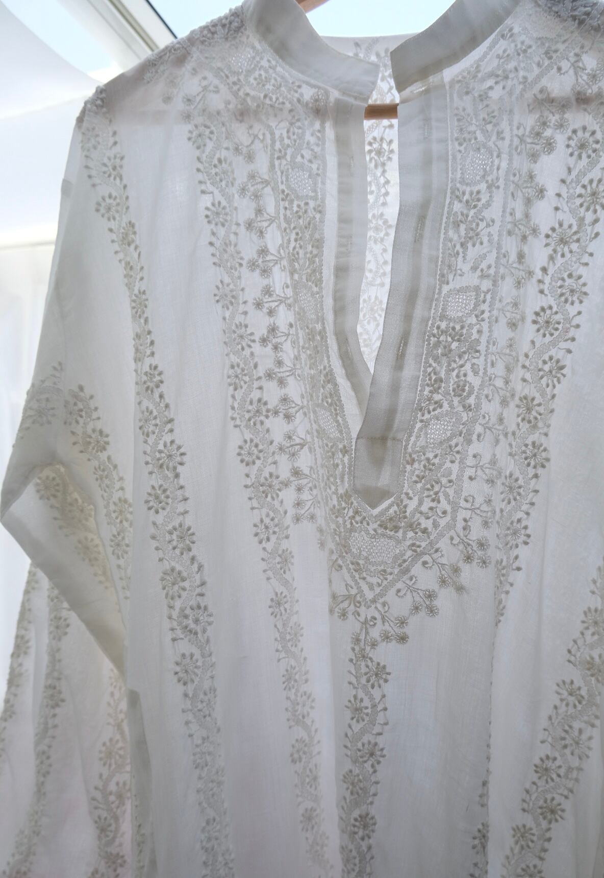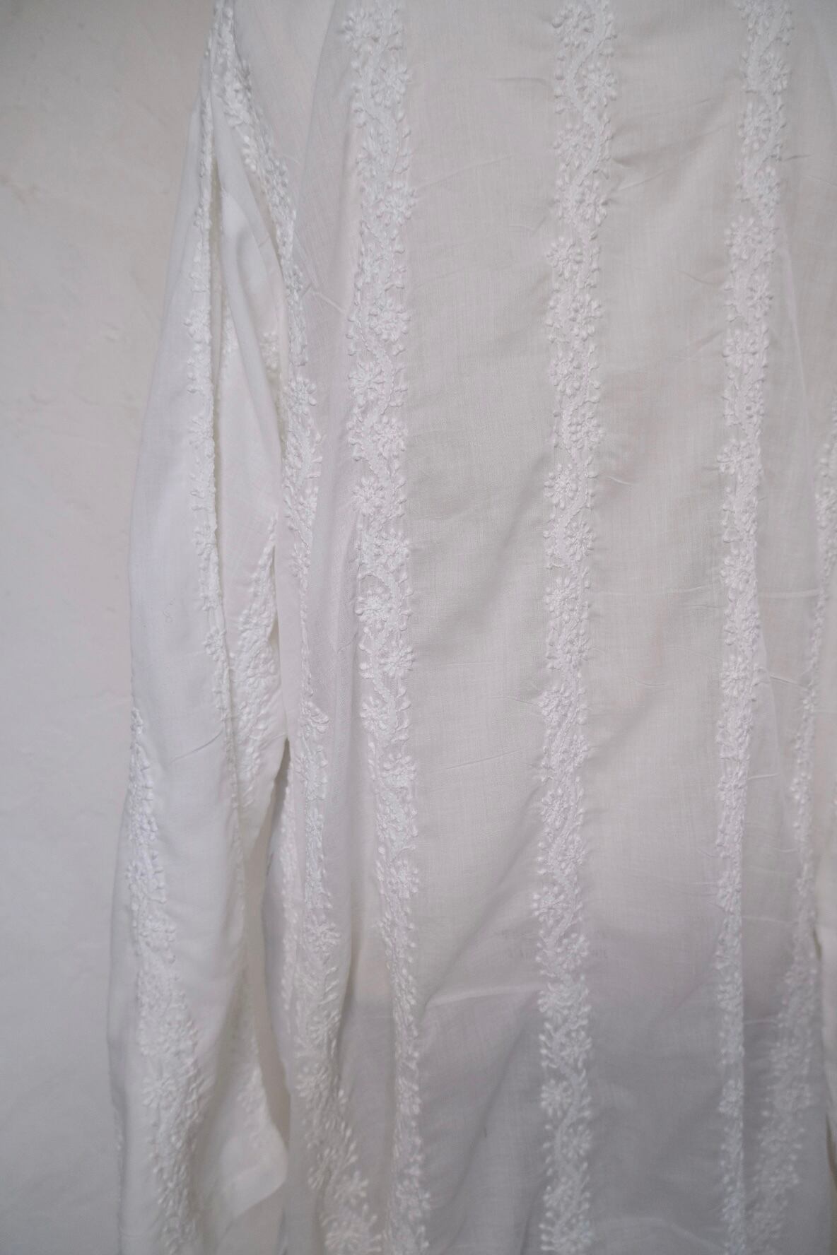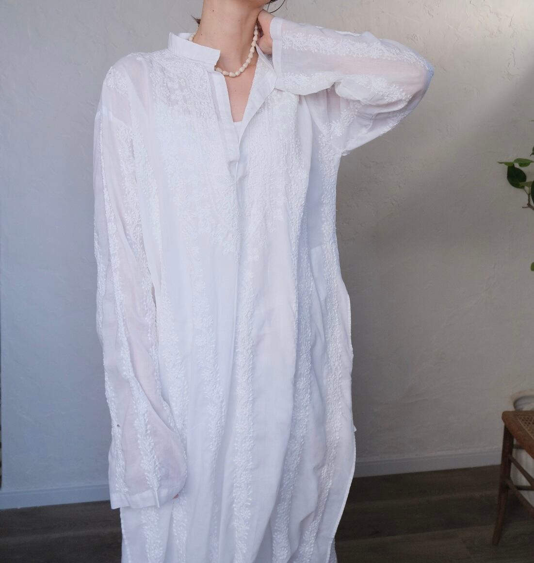 透け感があるのでペチコートを着て頂くか、スカートやパンツのレイヤードを楽しんでいただけるかと思います。