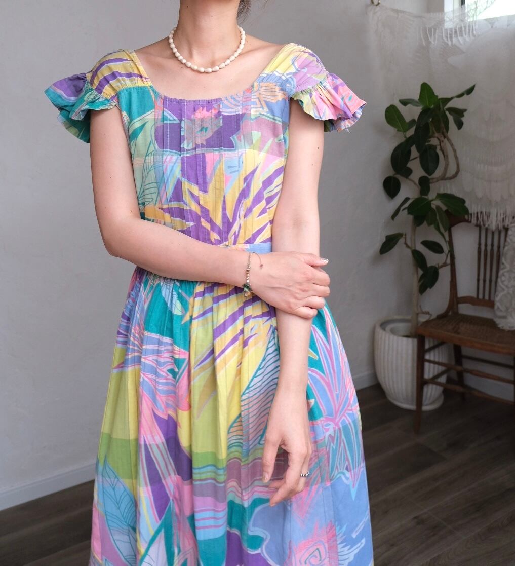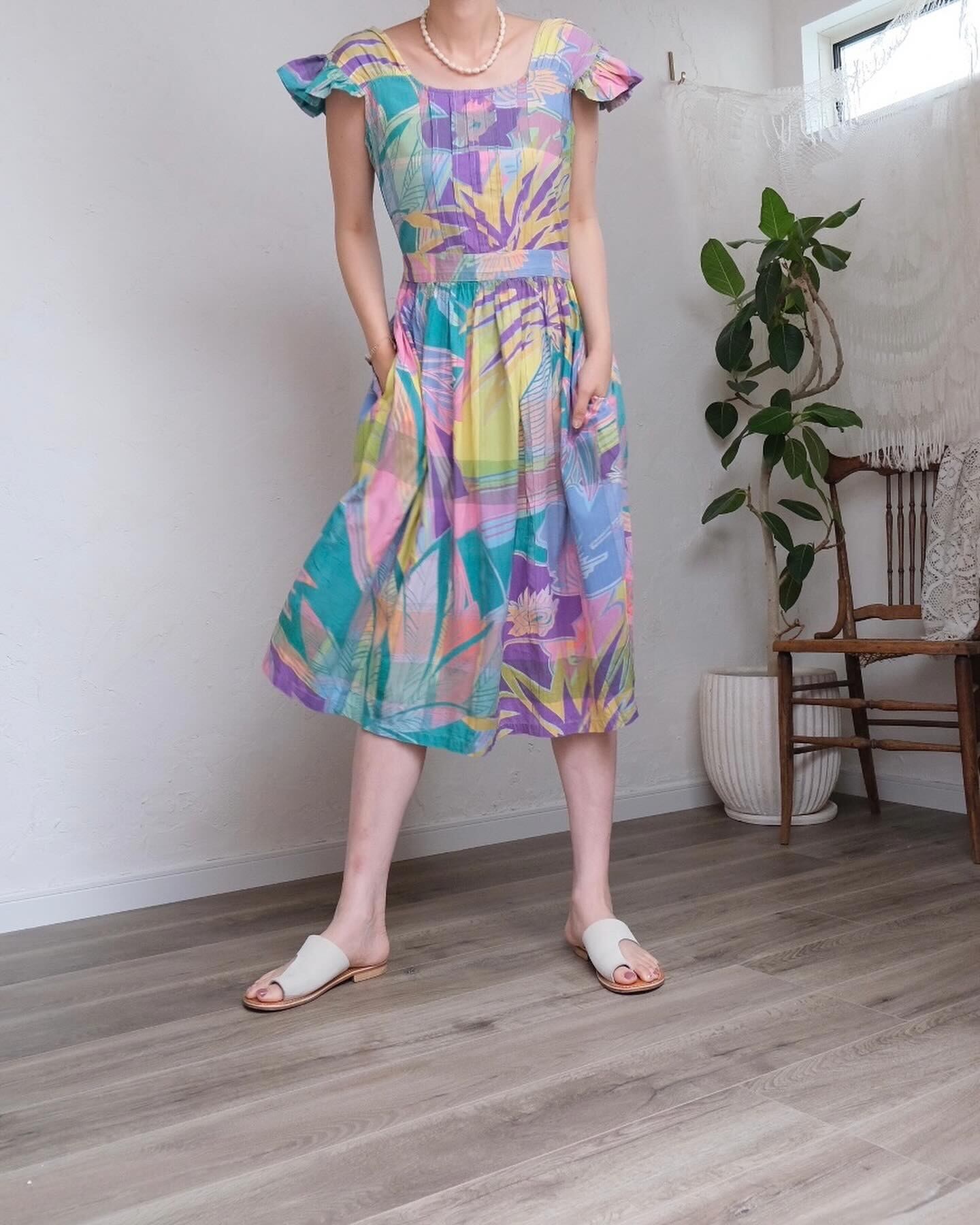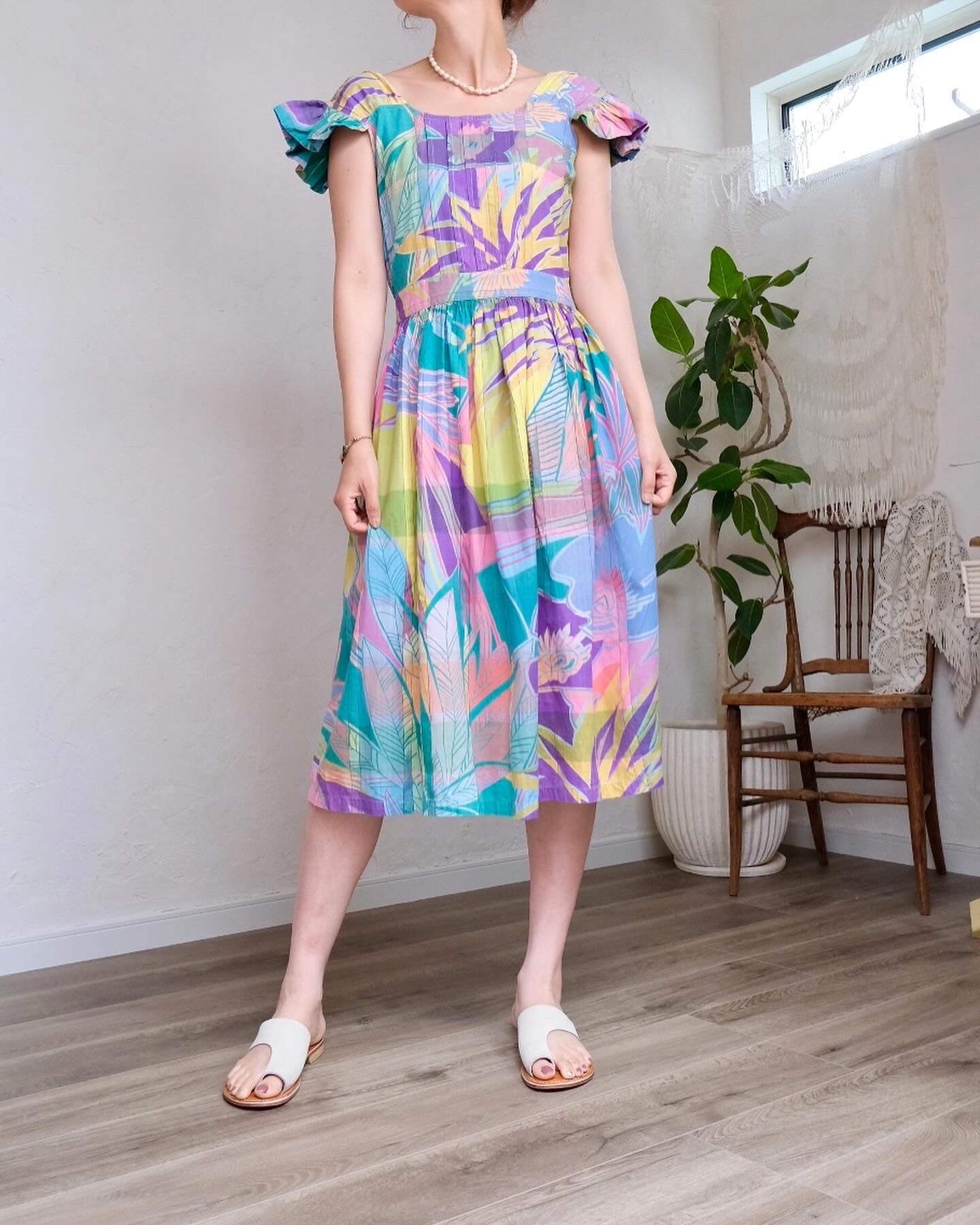柔らかいトーンのカラフルなチェックやボタニカルの柄がとても可愛いワンピース。