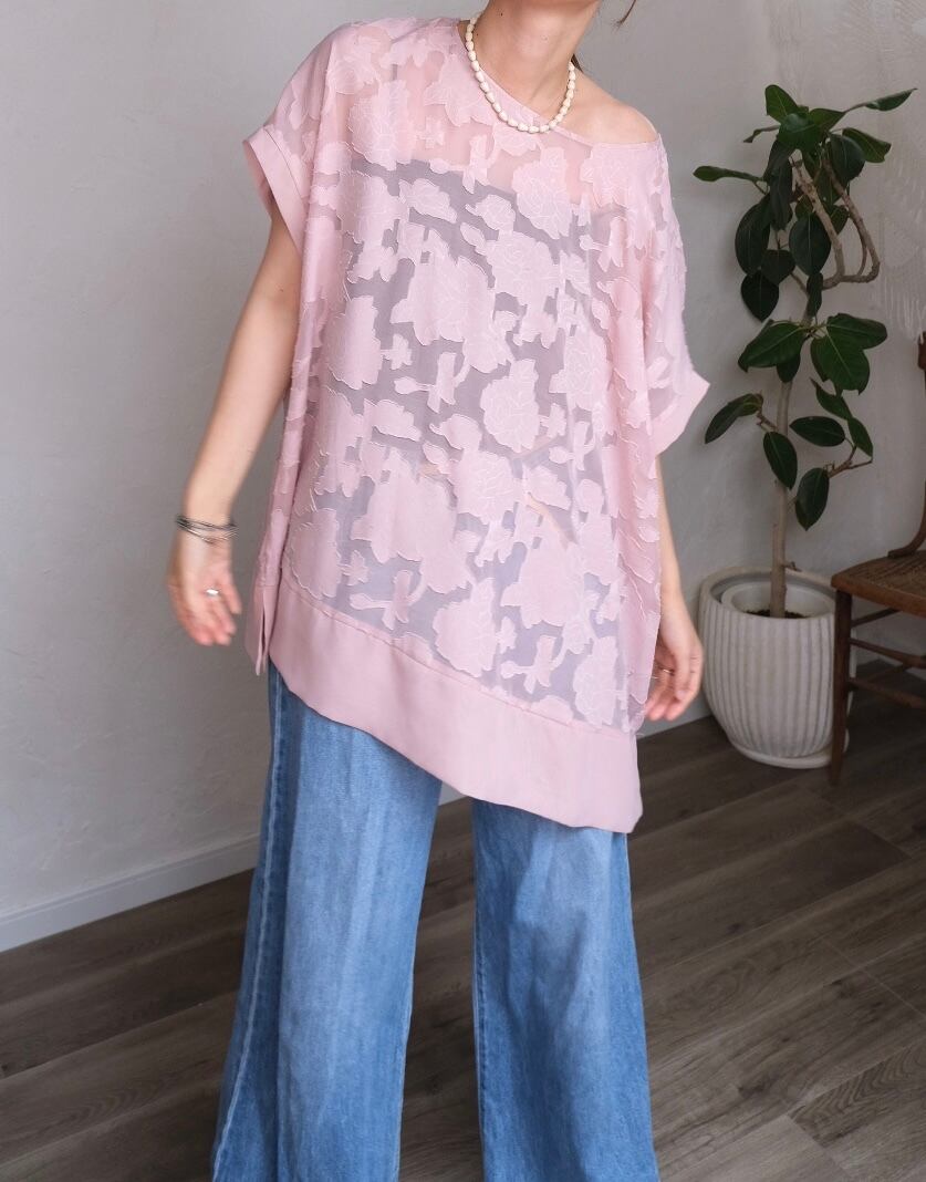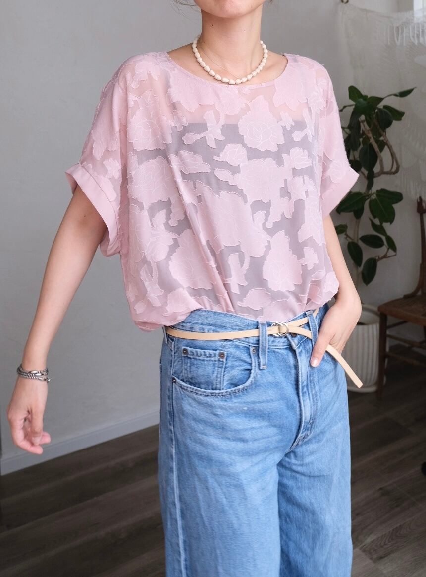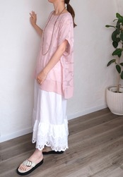 特筆するダメージとしてはフロント右裾あたりに薄い汚れ、花のジャガード部分に細かな毛玉のようなものがございます。