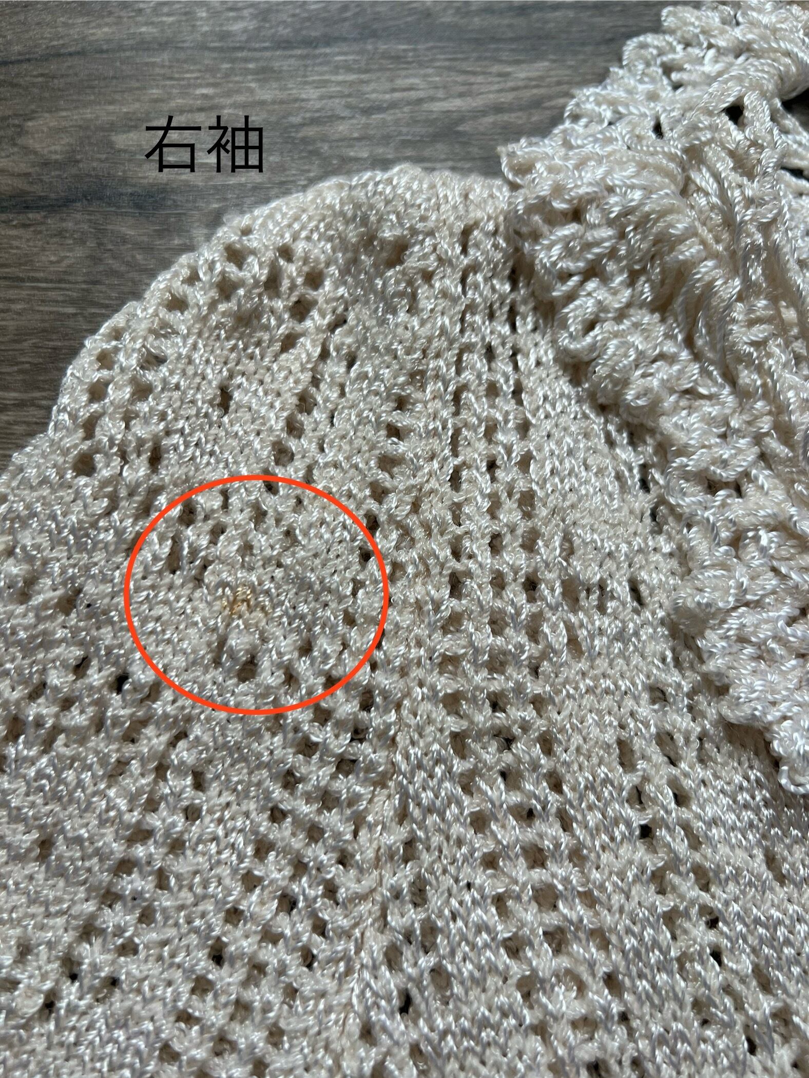 特筆するダメージとしては、右袖あたりに茶色の小さなシミがございます。