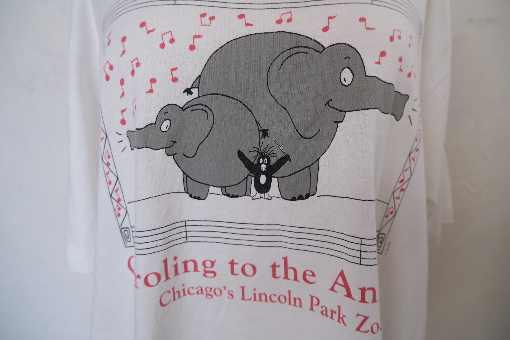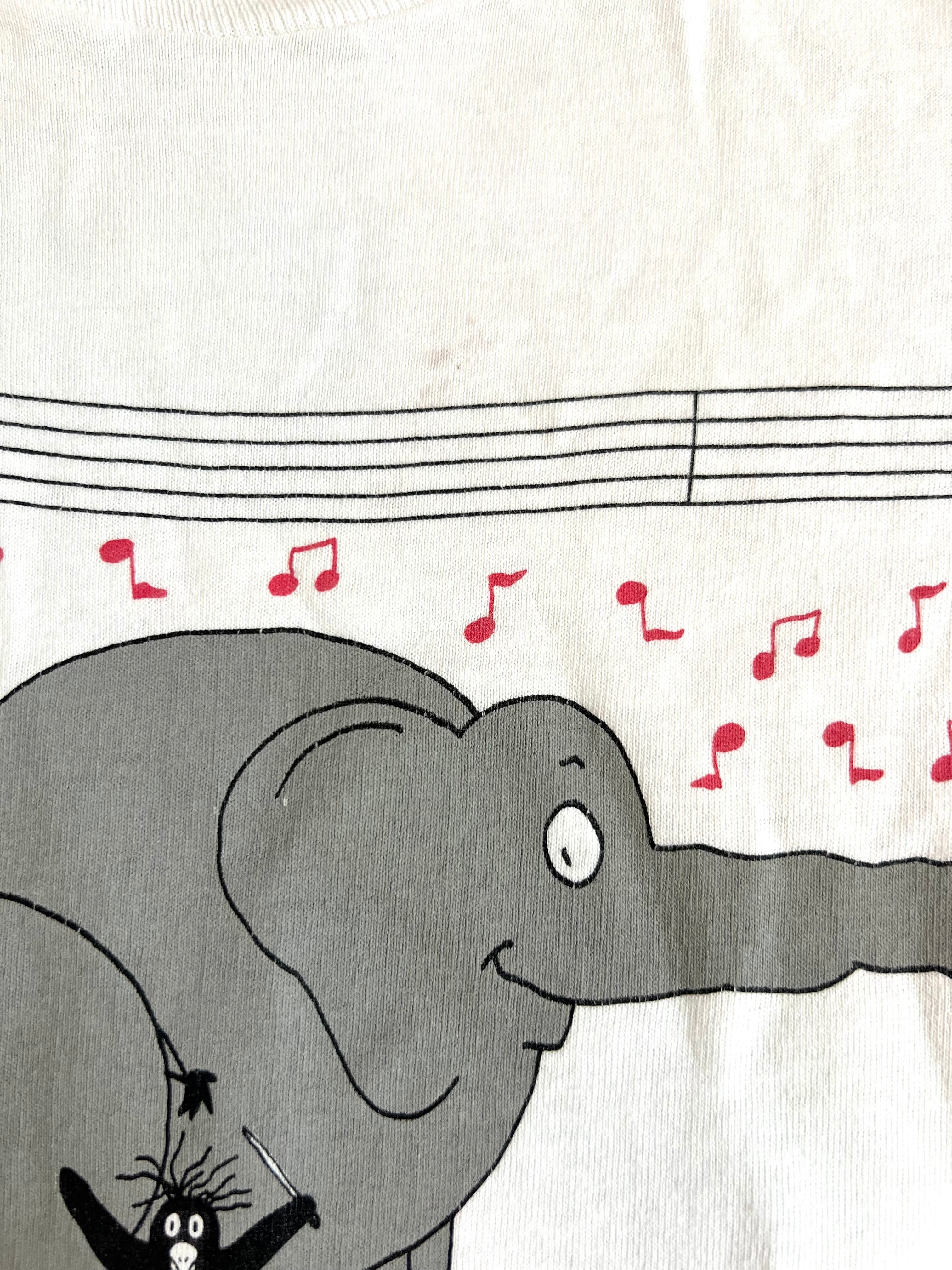 何とも愛らしい象とペンギンが音楽会を開いている様なイラスト。