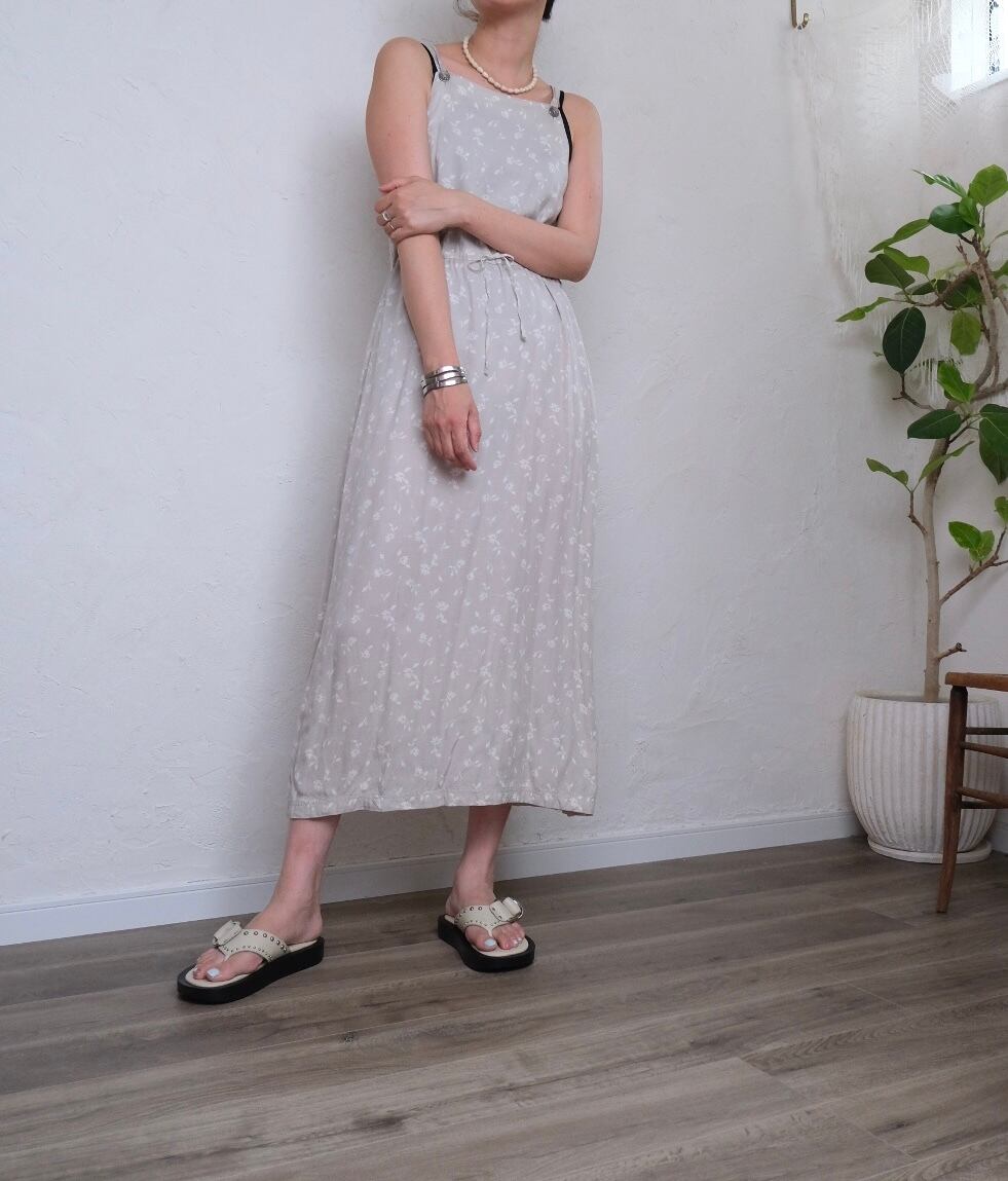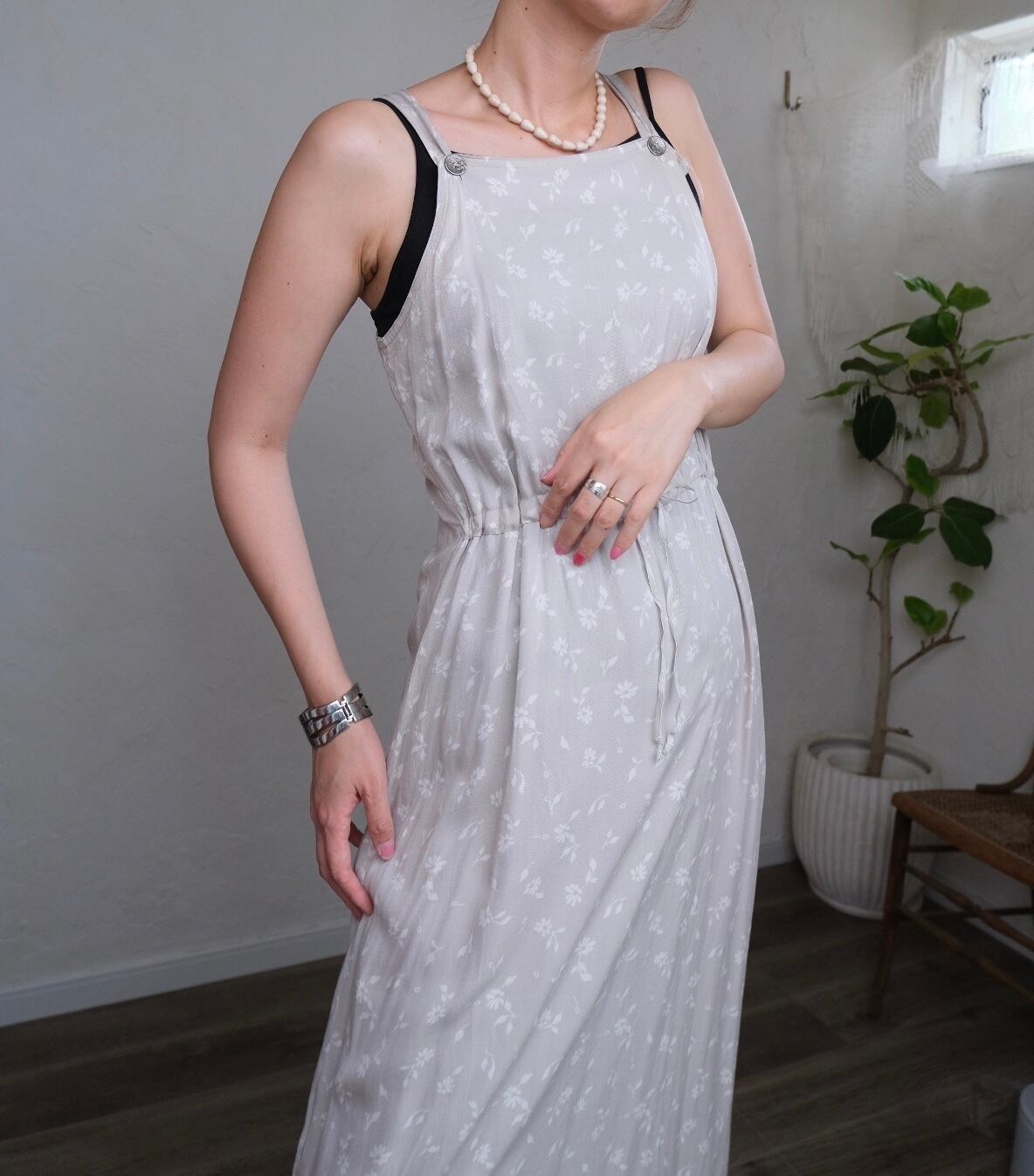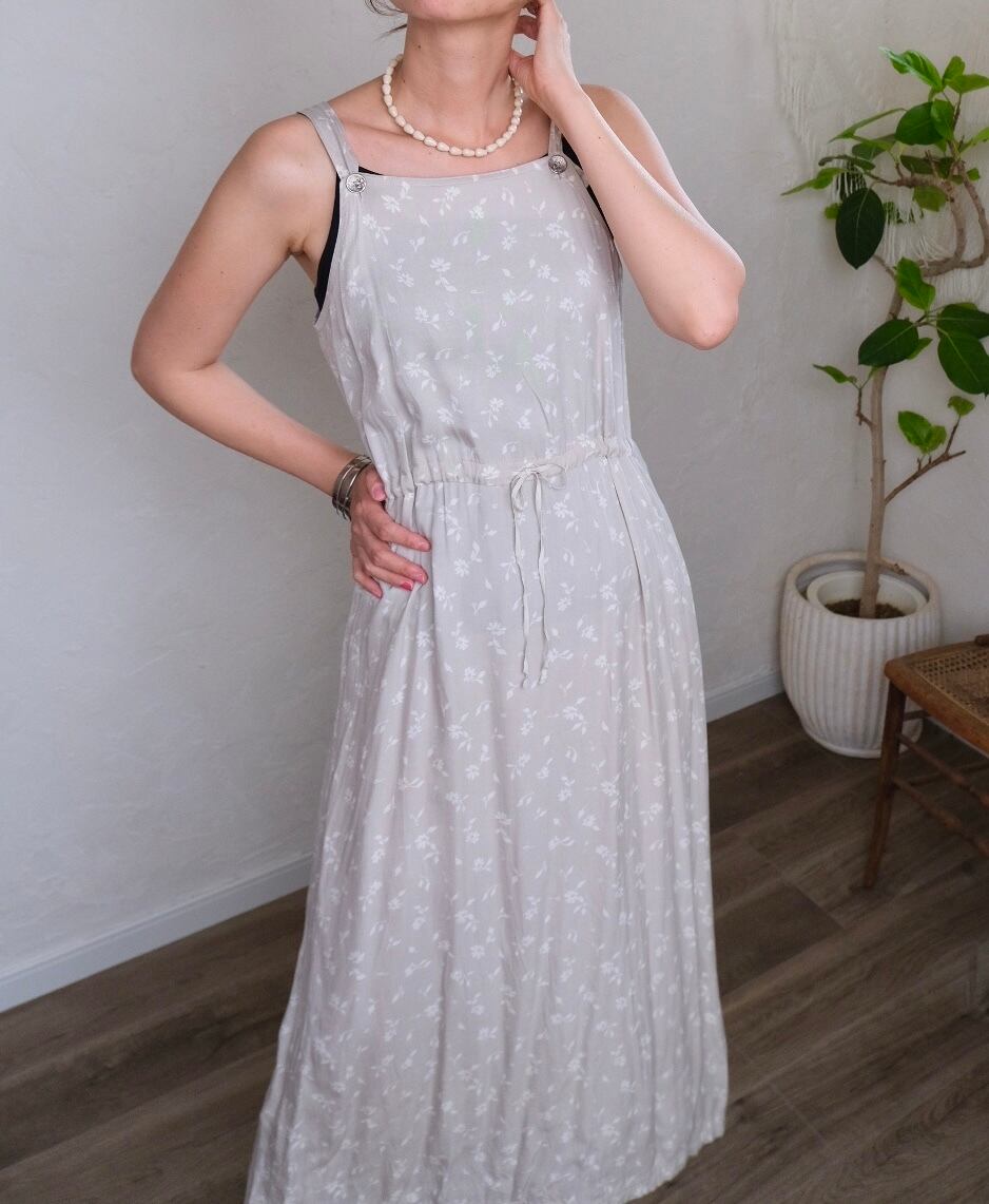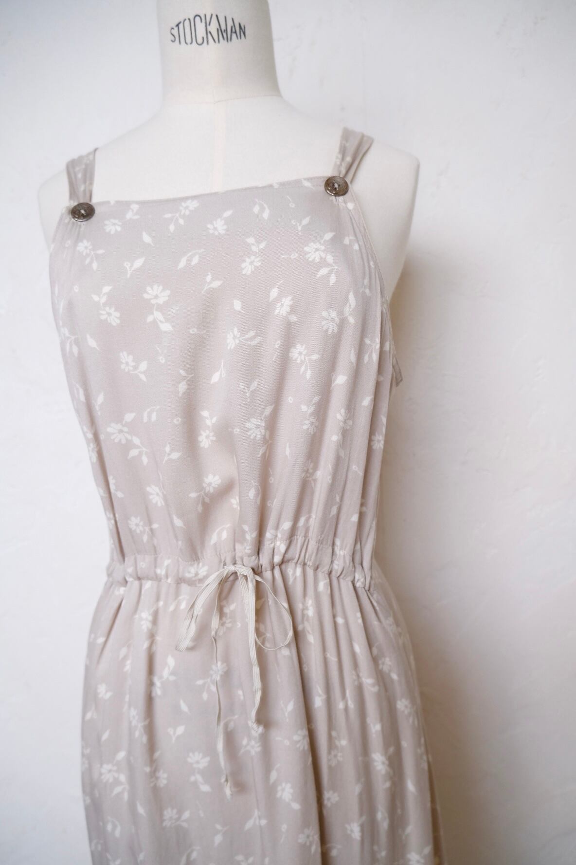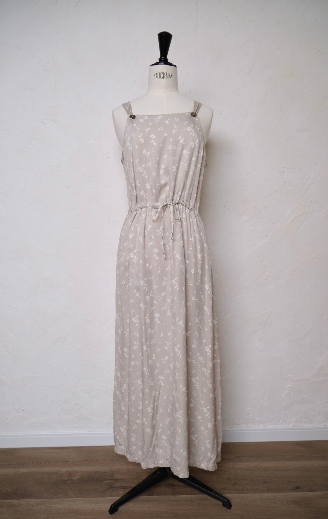 グレージュの様な柔らかなトープカラーのジャンバースカート。