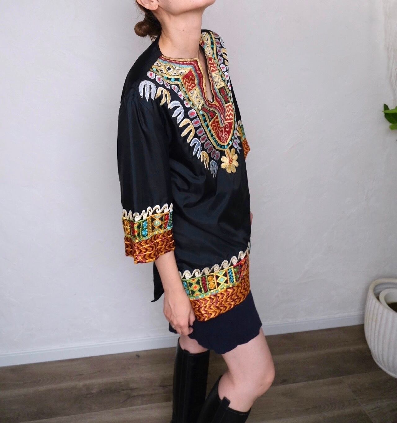 パッと華やかな刺繍が目を引くスペシャルなvintage embroidery blouse。