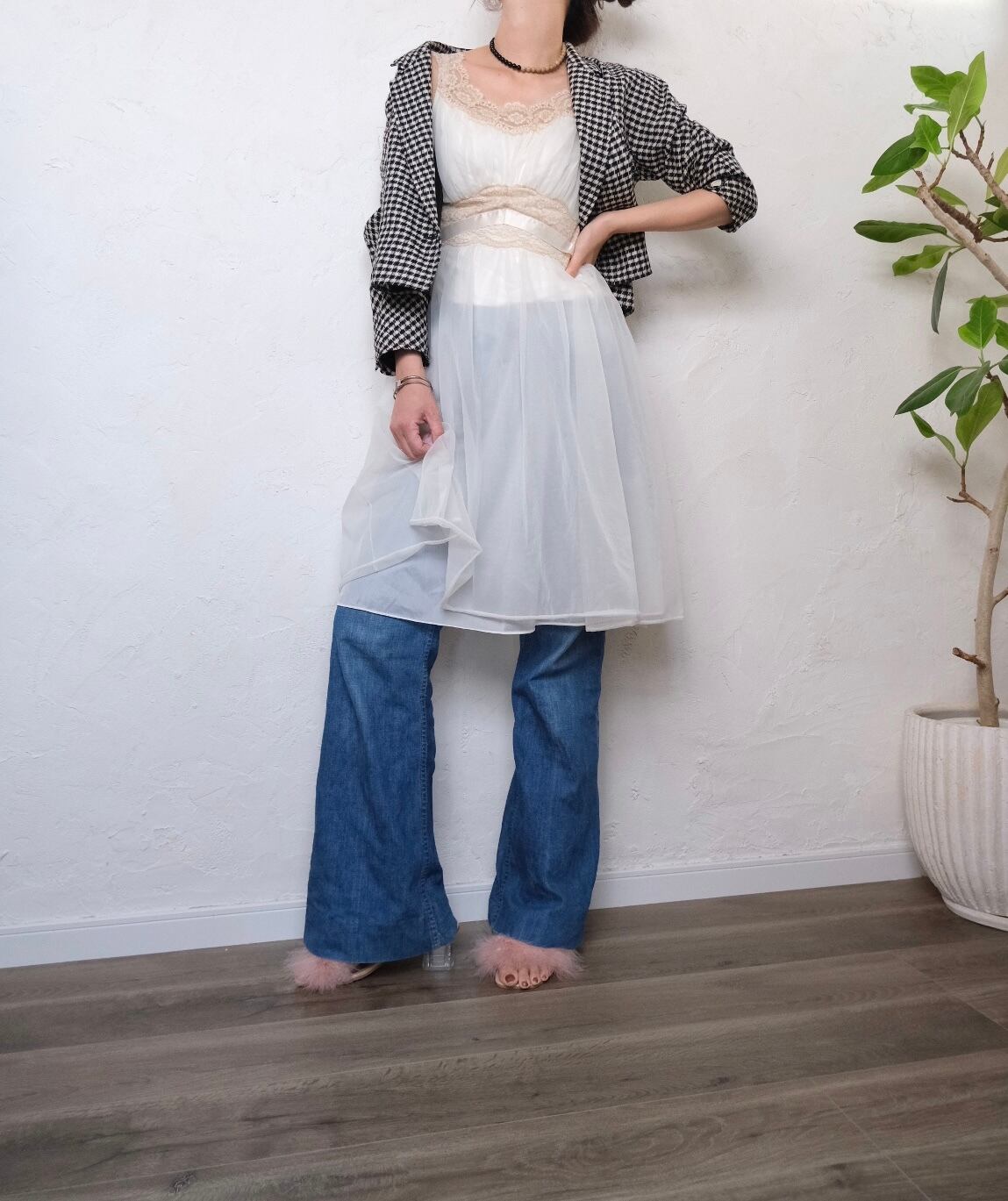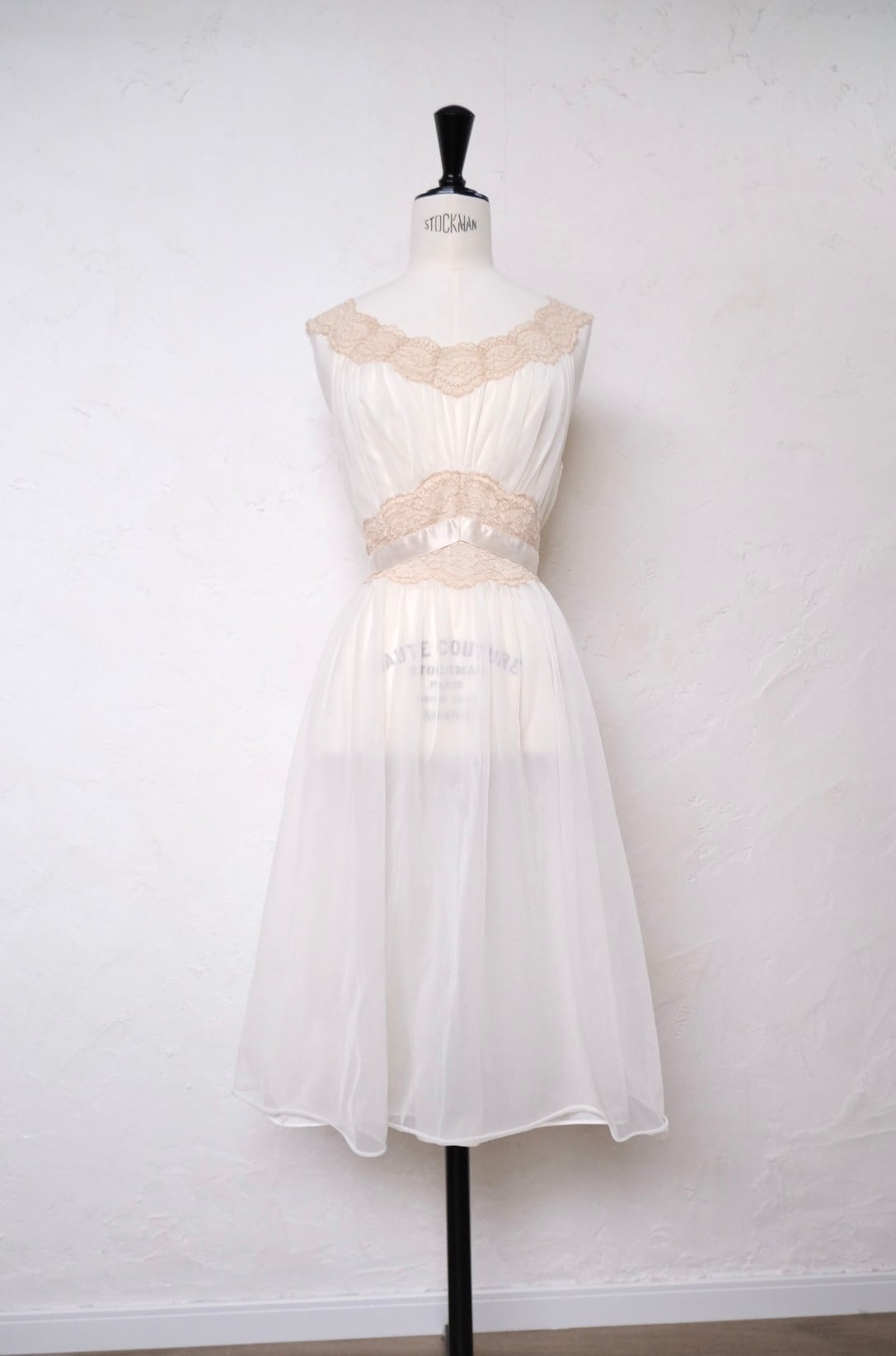 胸元のレースやドレープデザインが素敵な60'sのランジェリードレス。