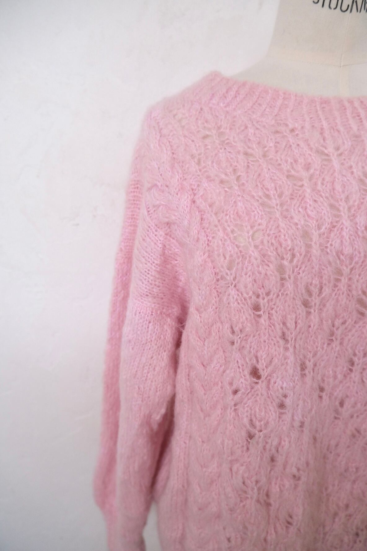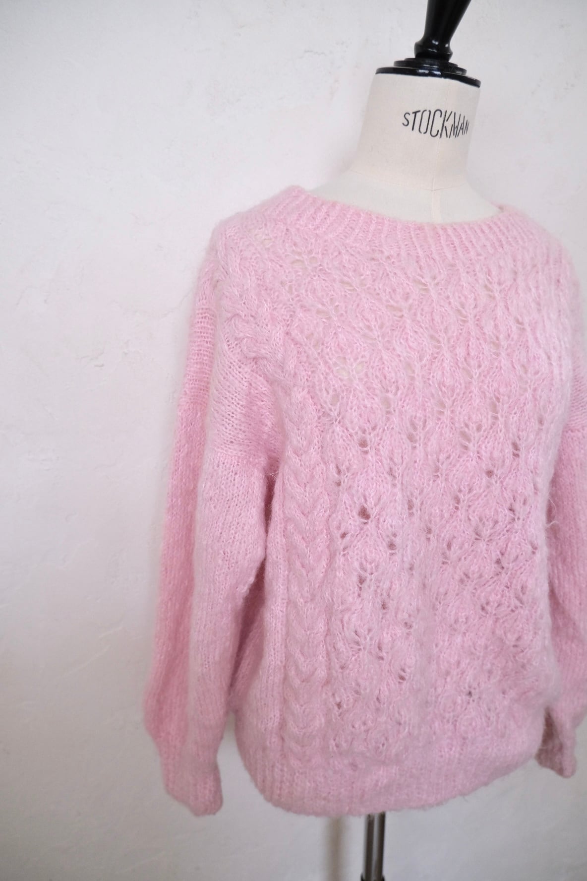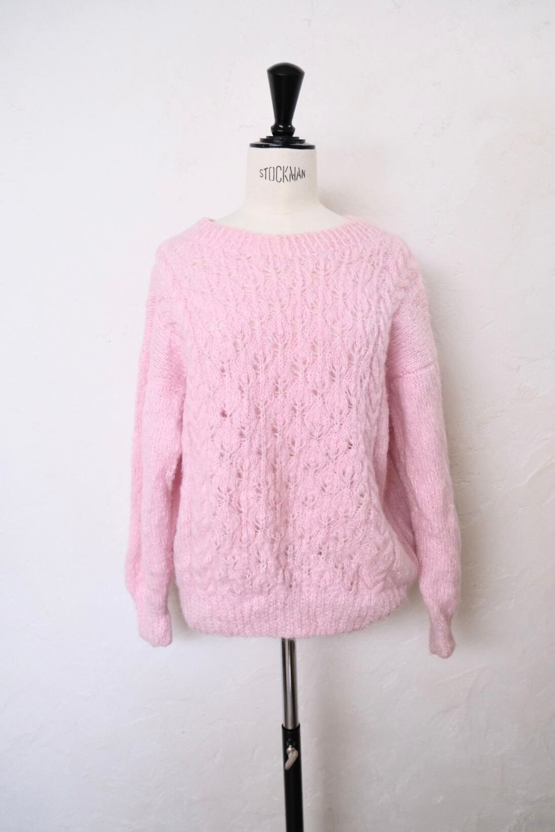柔らかなピンクが可愛い模様編みのモヘアニット。