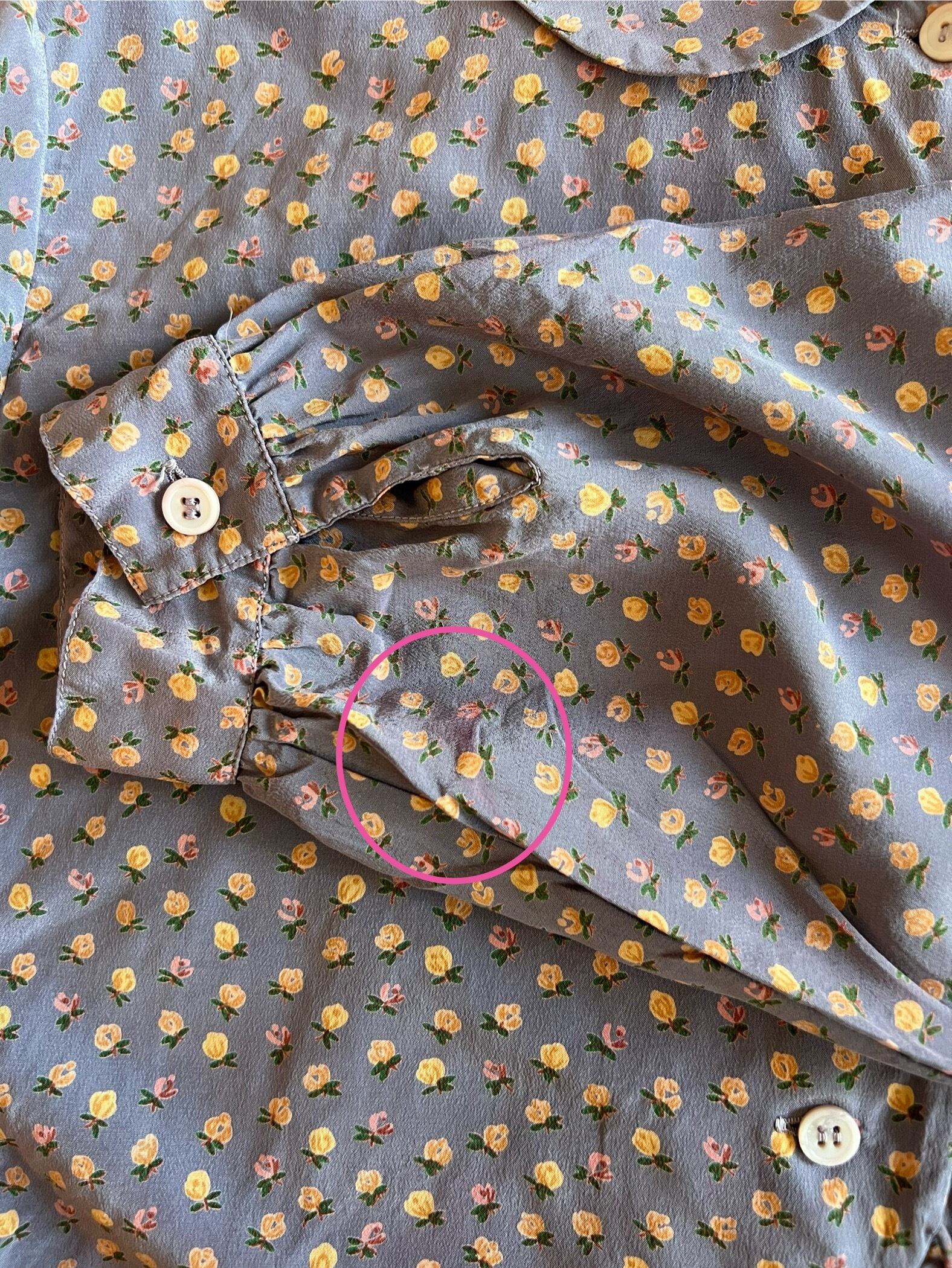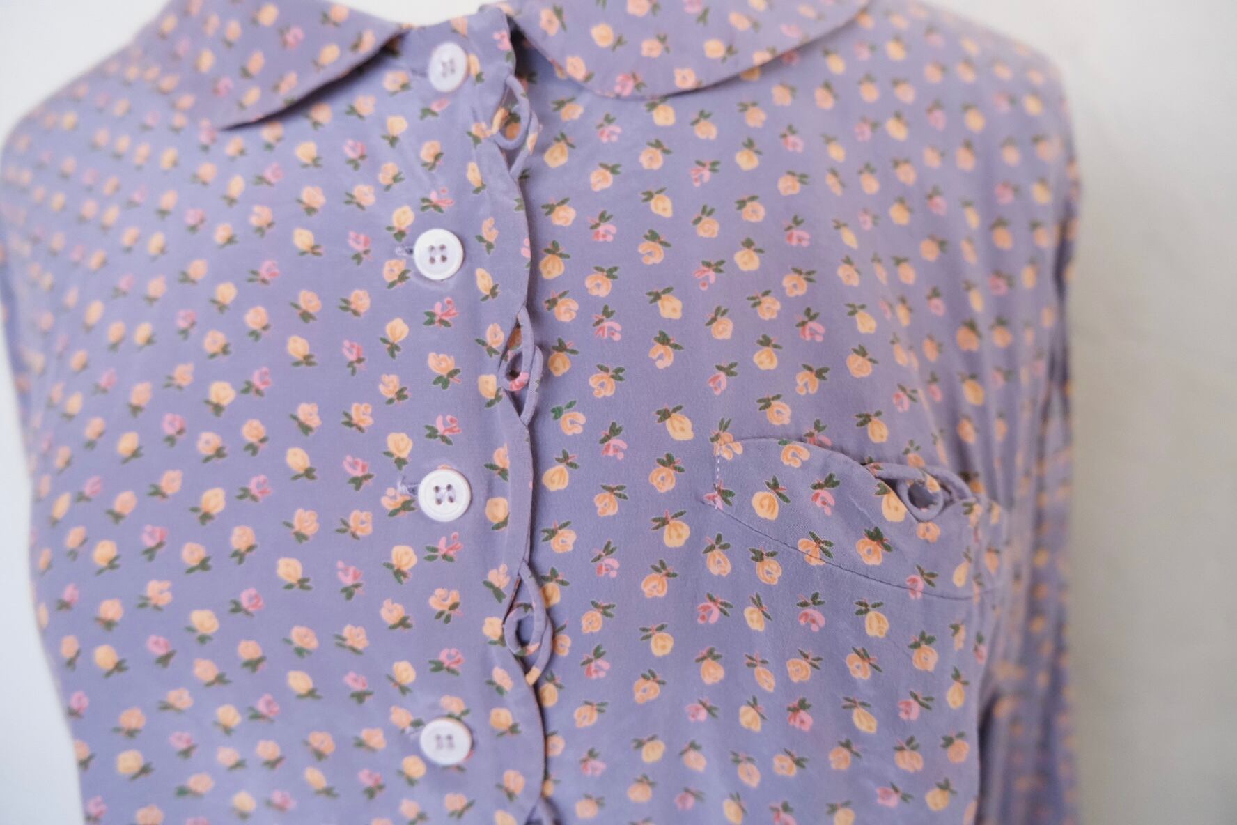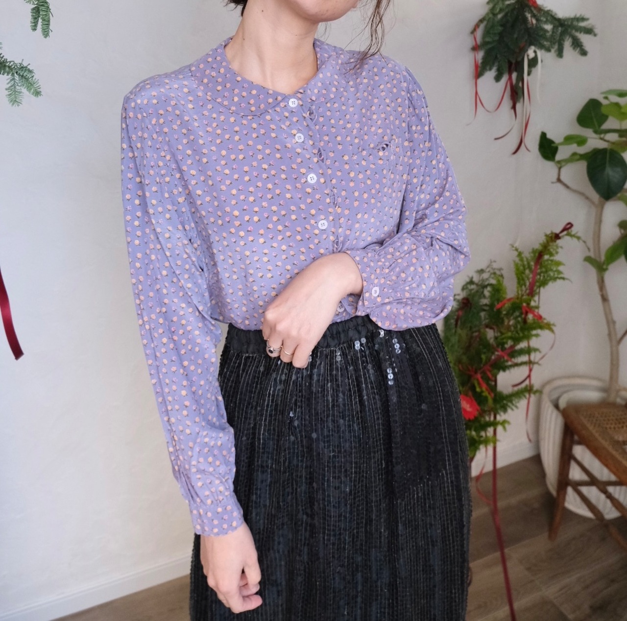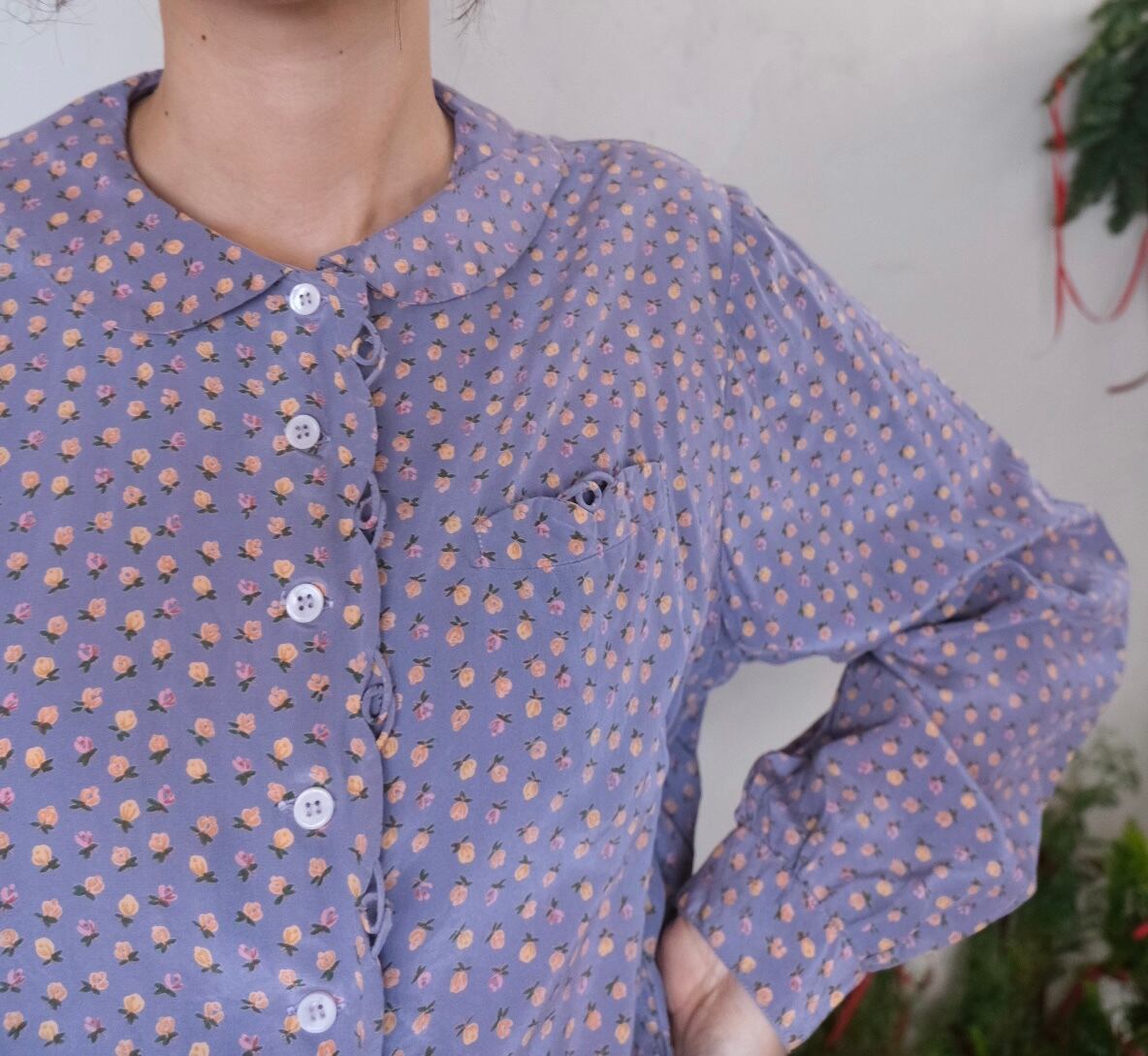 控えめな小花柄や小さな襟はフェミニンさがありつつも、シルクの風合いの良さが大人で華奢な雰囲気♡