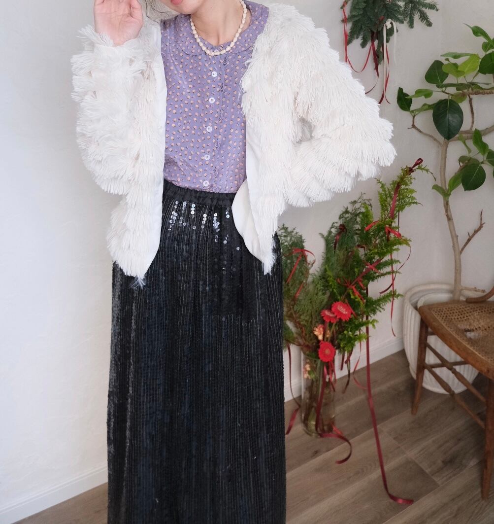 黒と合わせると少し甘さも抜け、クールな印象に✨