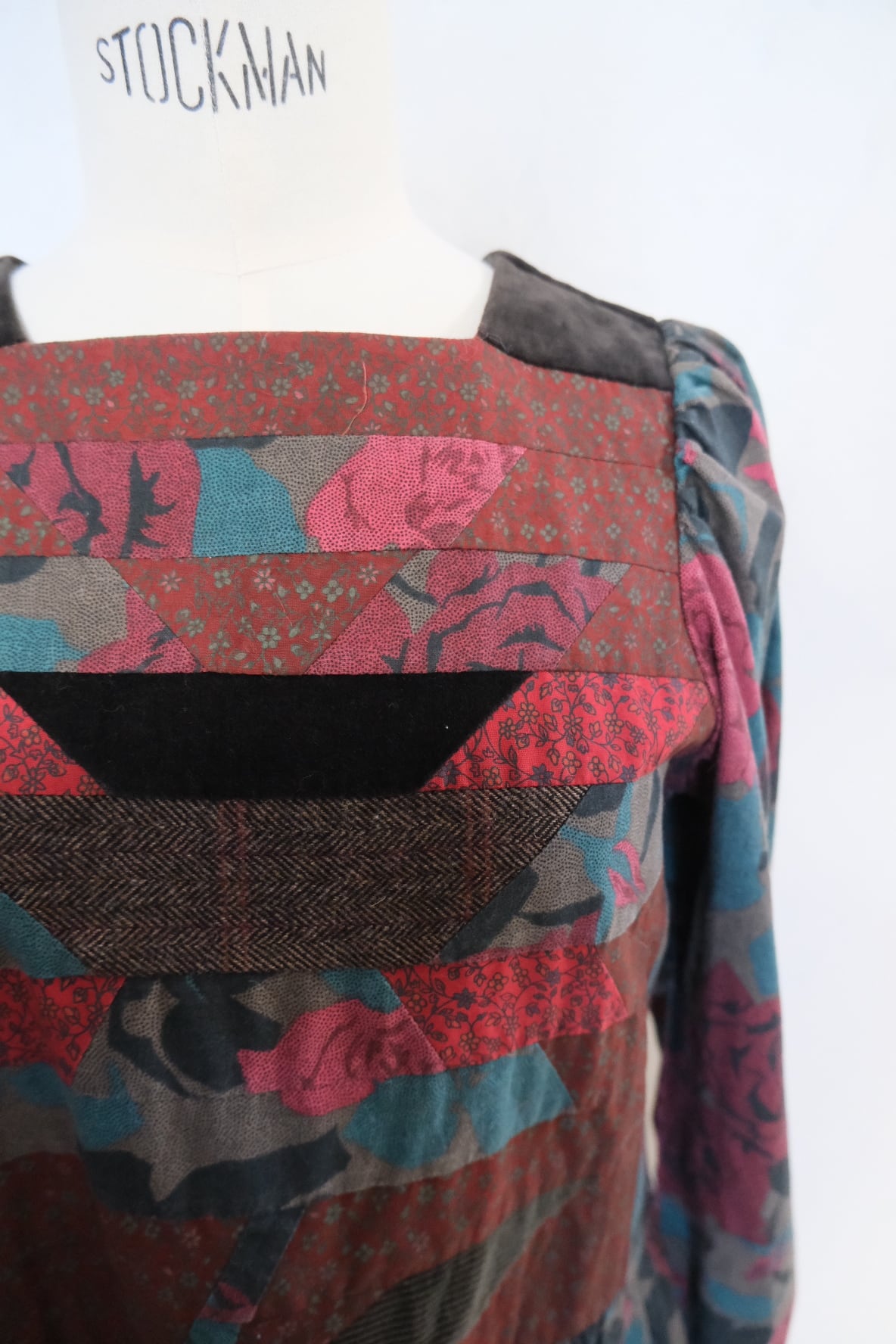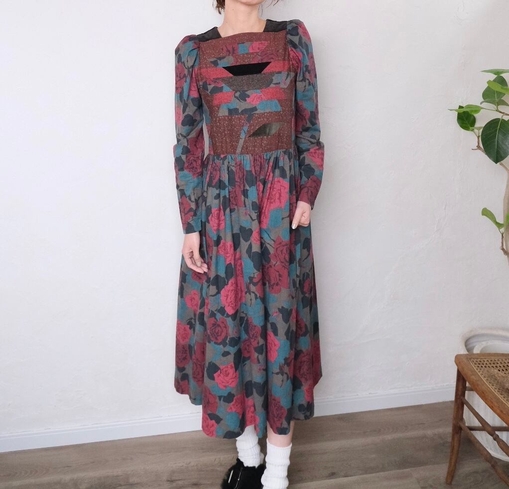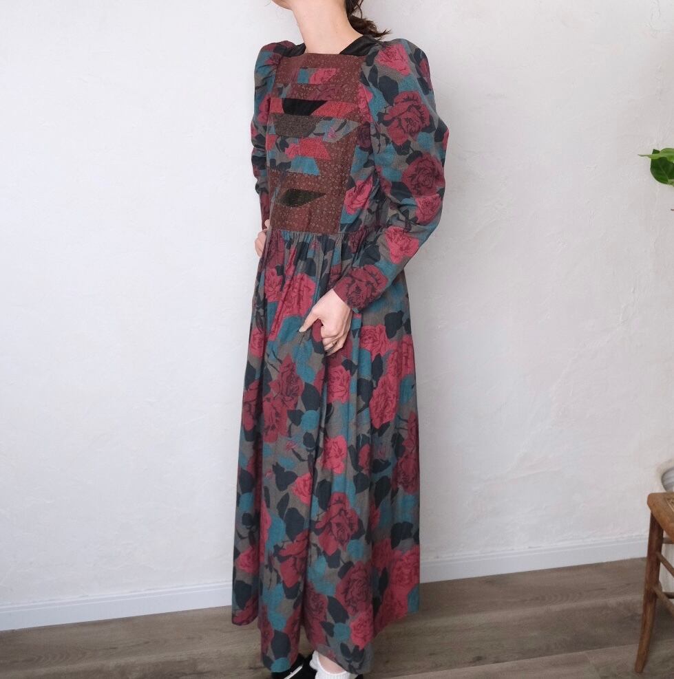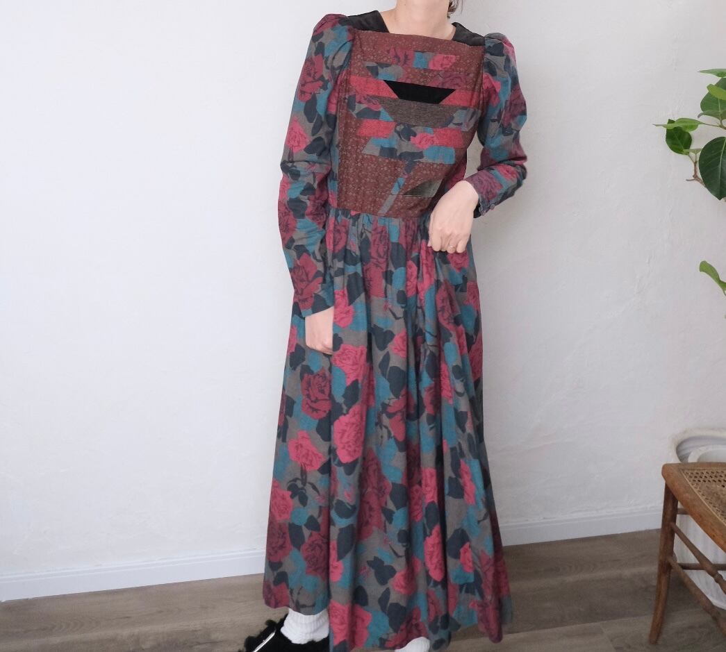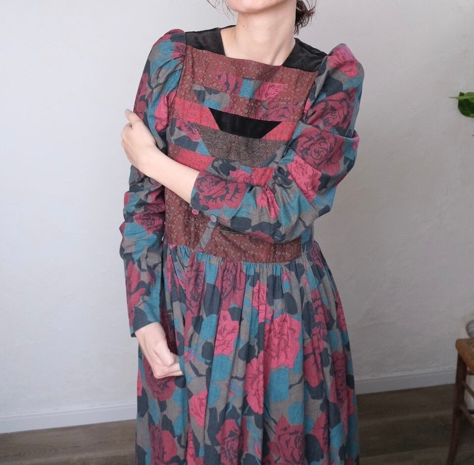 ツィードやコーデュロイなども入ったpatchworkが素敵なvintageドレス。